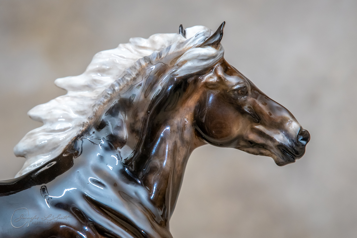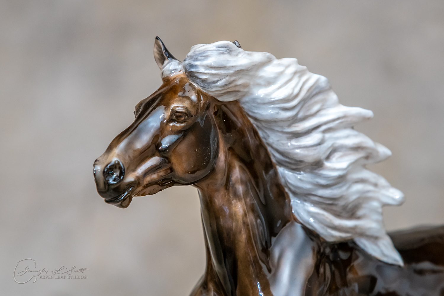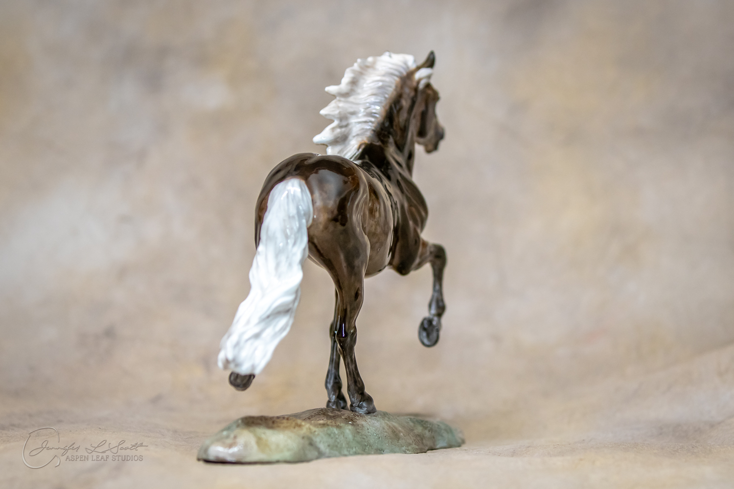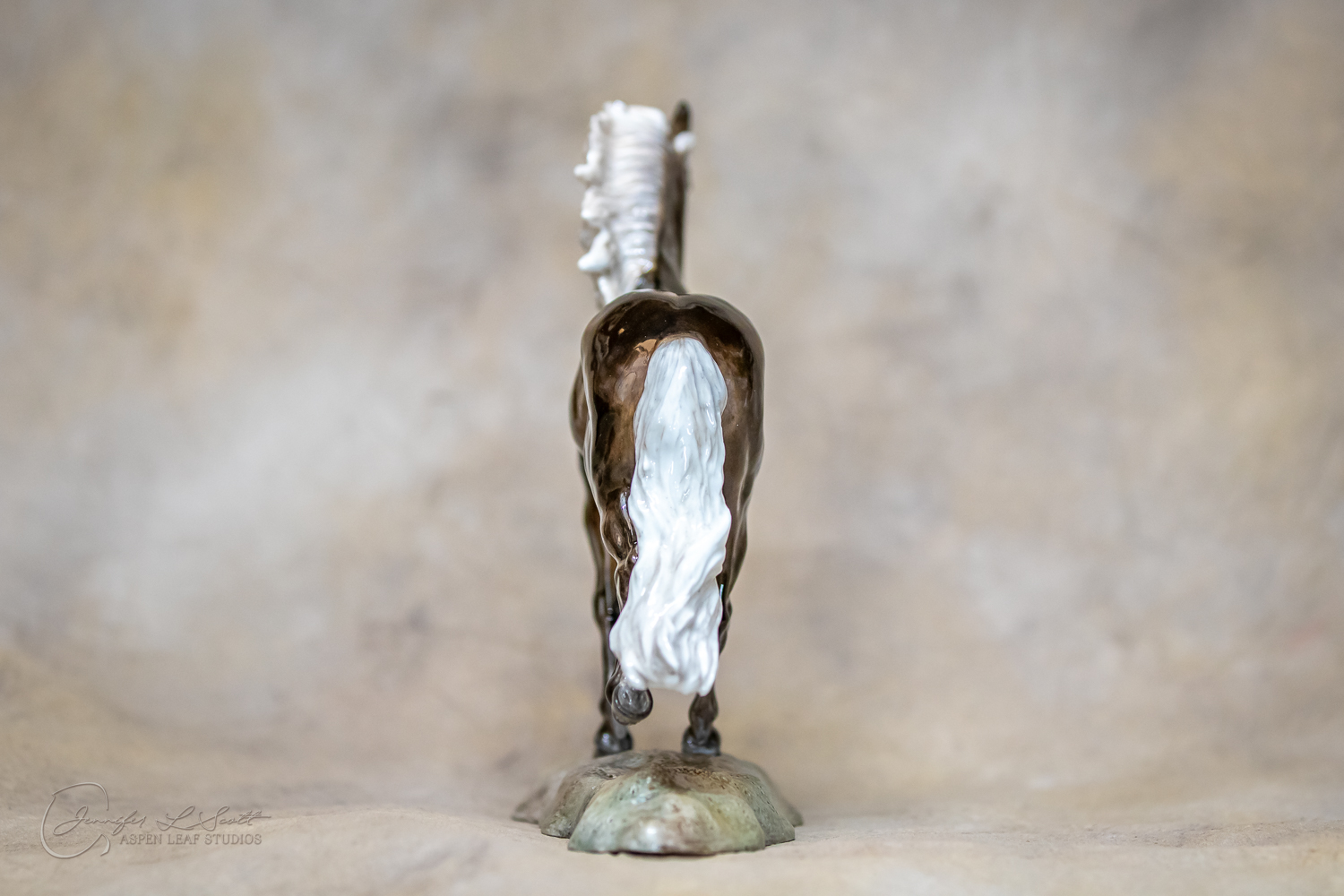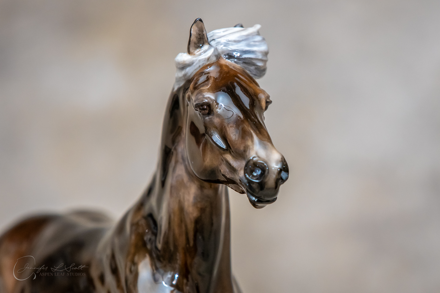 Classic Scale "Bjalla" bone china sculpted by Brigitte Eberl and produced by Horsing around. Glossy finish, overglazed black silver dapple in 2019.