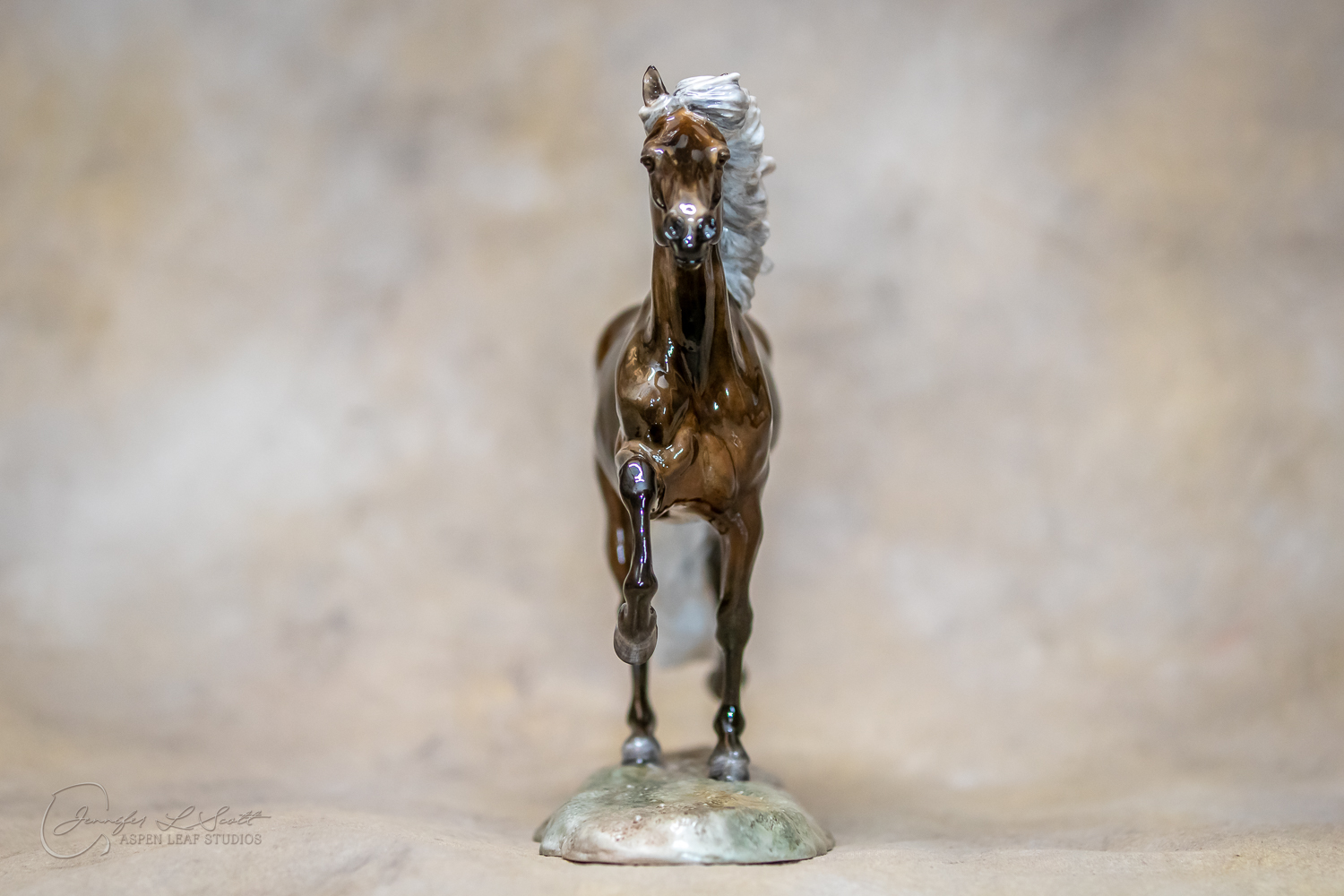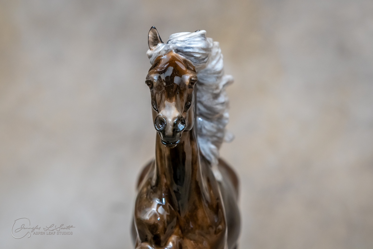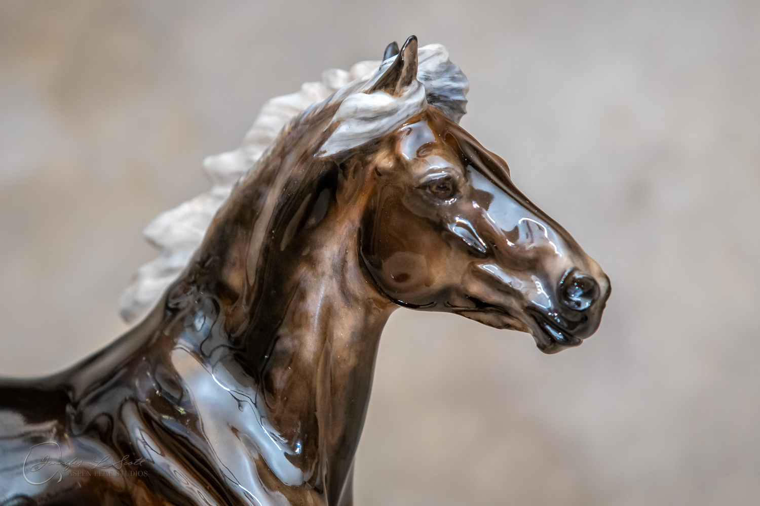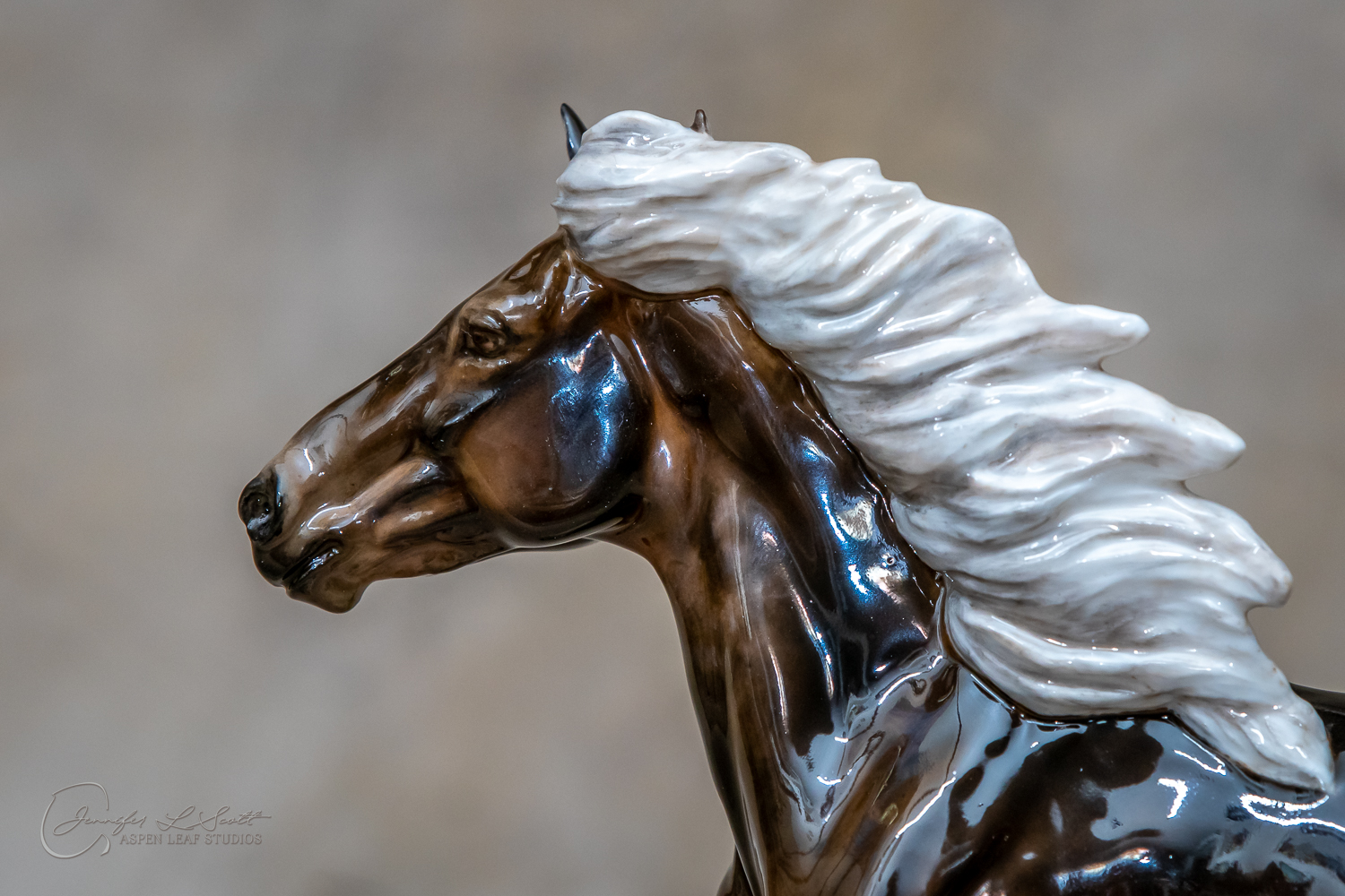 Classic Scale "Bjalla" bone china sculpted by Brigitte Eberl and produced by Horsing around. Glossy finish, overglazed black silver dapple in 2019.