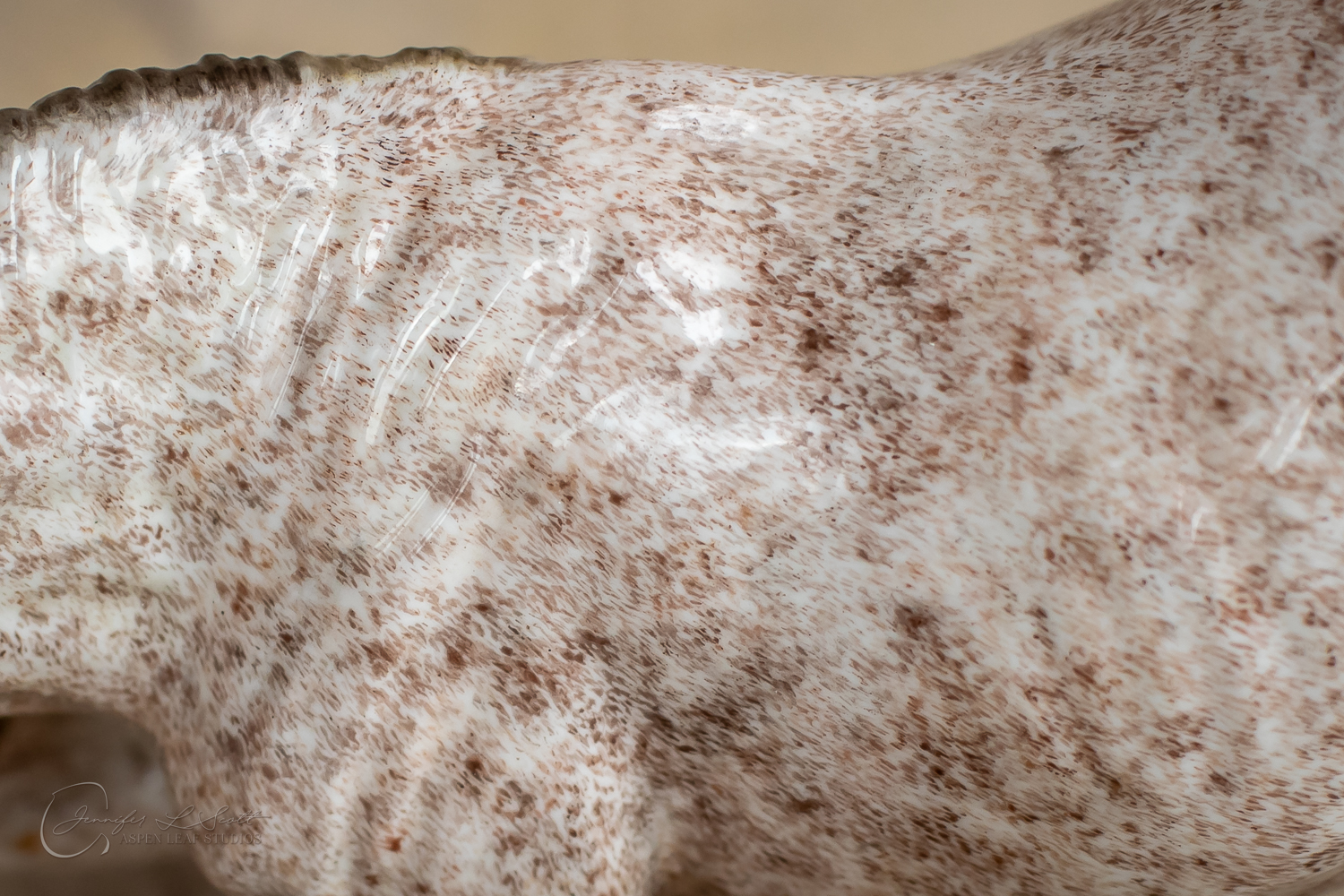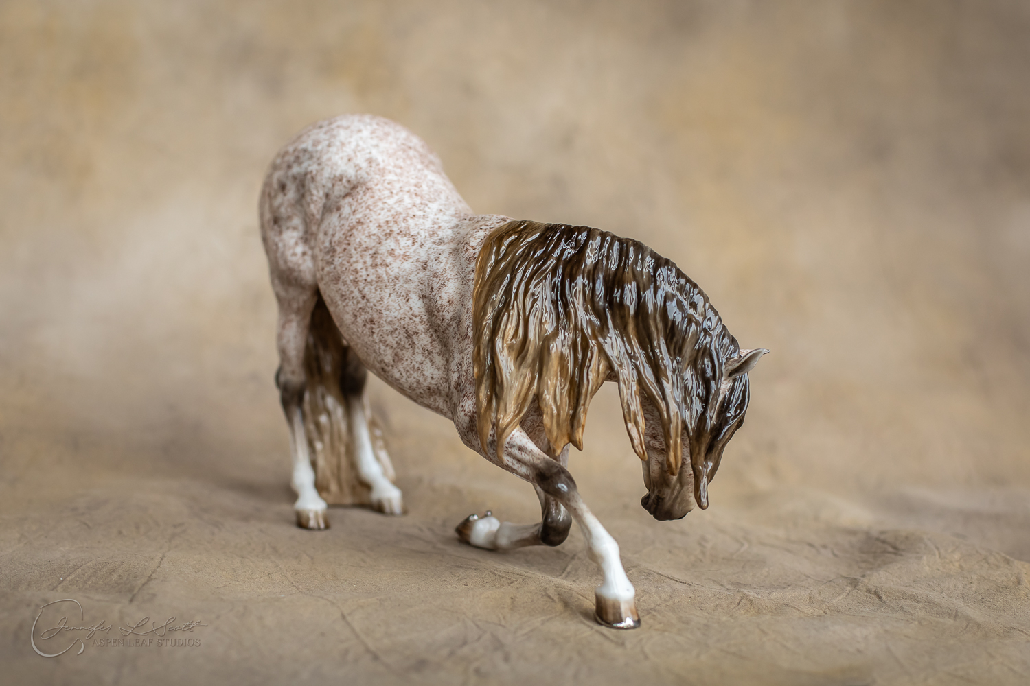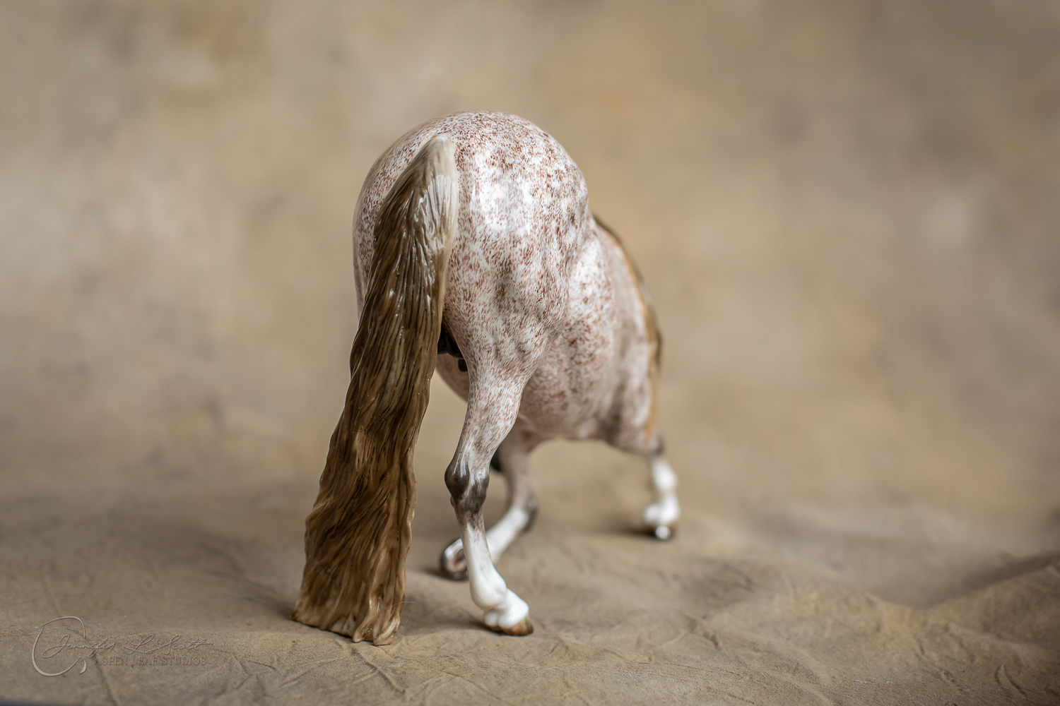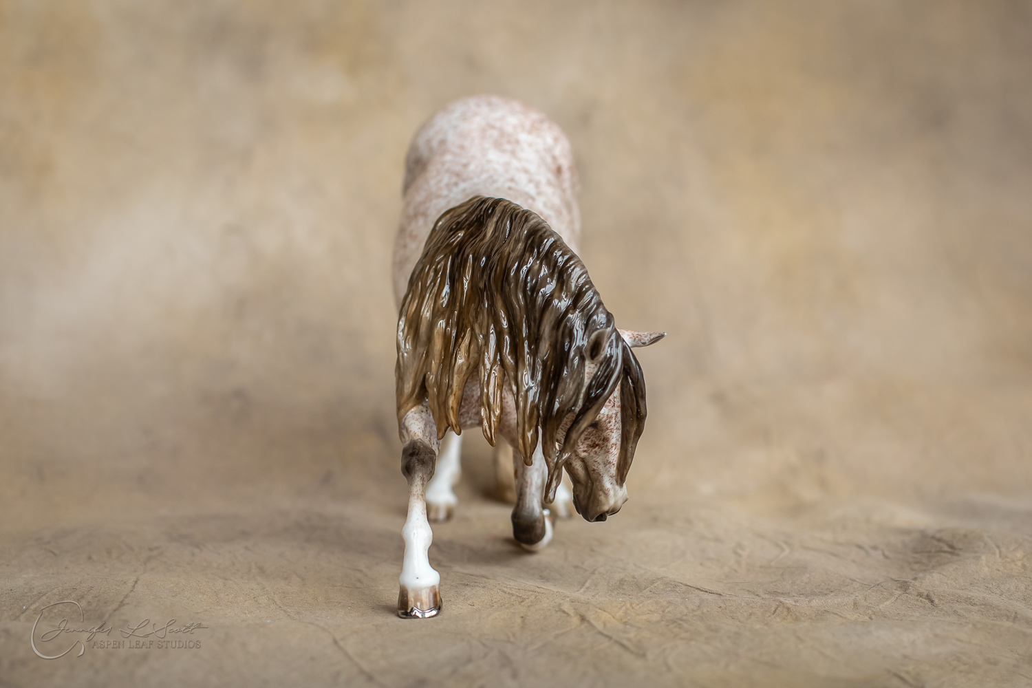 Traditional Scale "Vincenzo" bone china sculpted by Brigitte Eberl and produced by Horsing around. Glossy finish, overglazed extensive fleabitten gray in 2024.