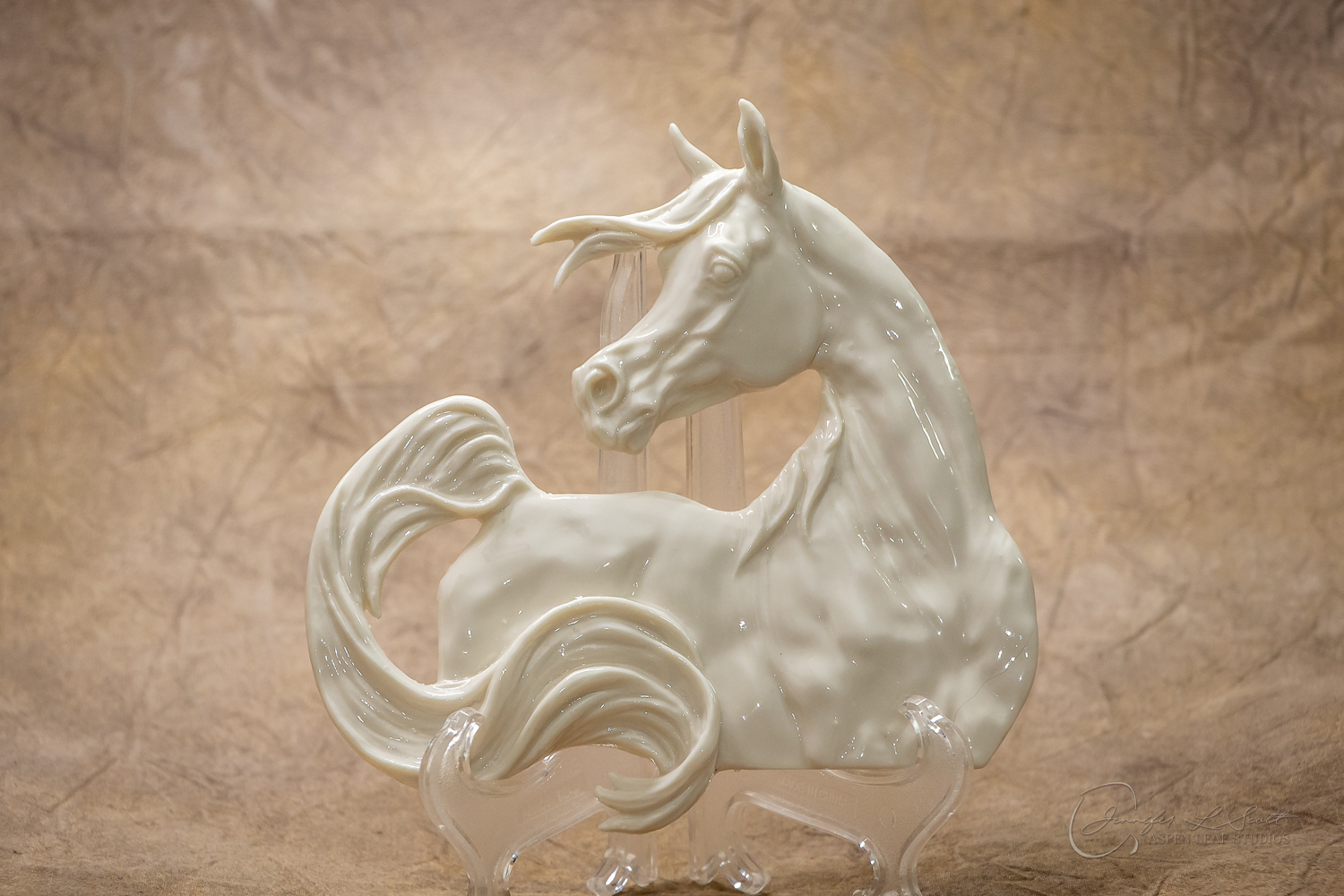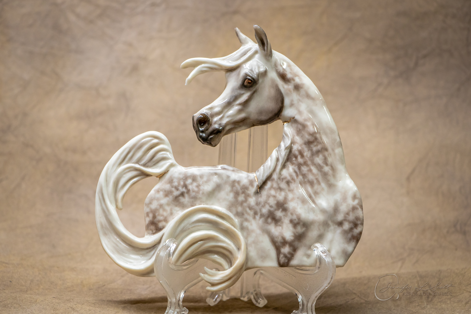 Khairunissa, sculpted by Kylee Parks of Studio Thornrose, is a lovely example of an Arab mare. I loved the delicacy and femininity of this piece as well as the vitality of it. She also looked like she would be a good fit for the porcelain medium, so I approached Kylee for the rights.