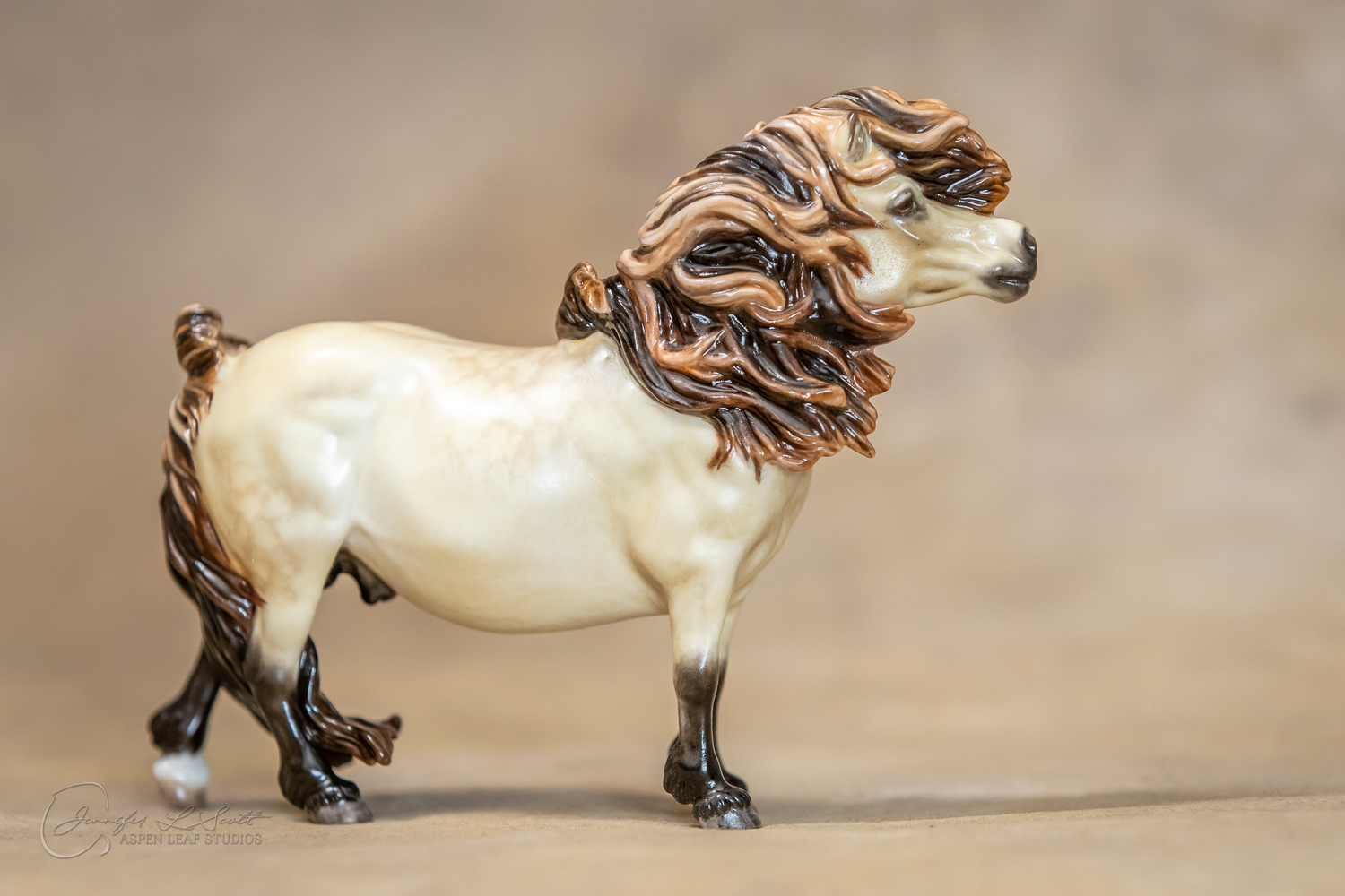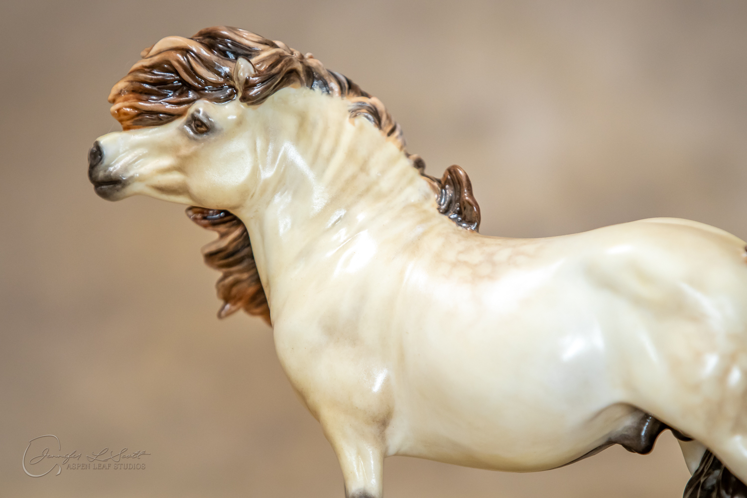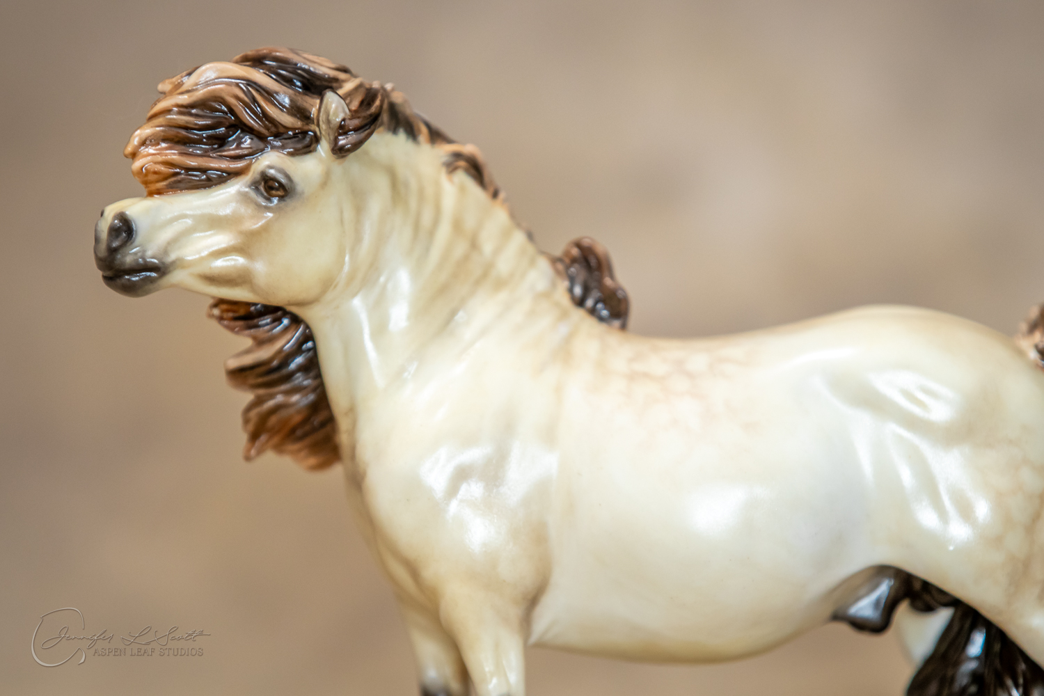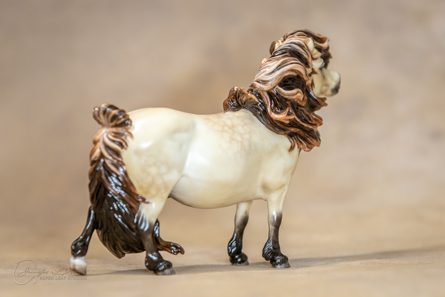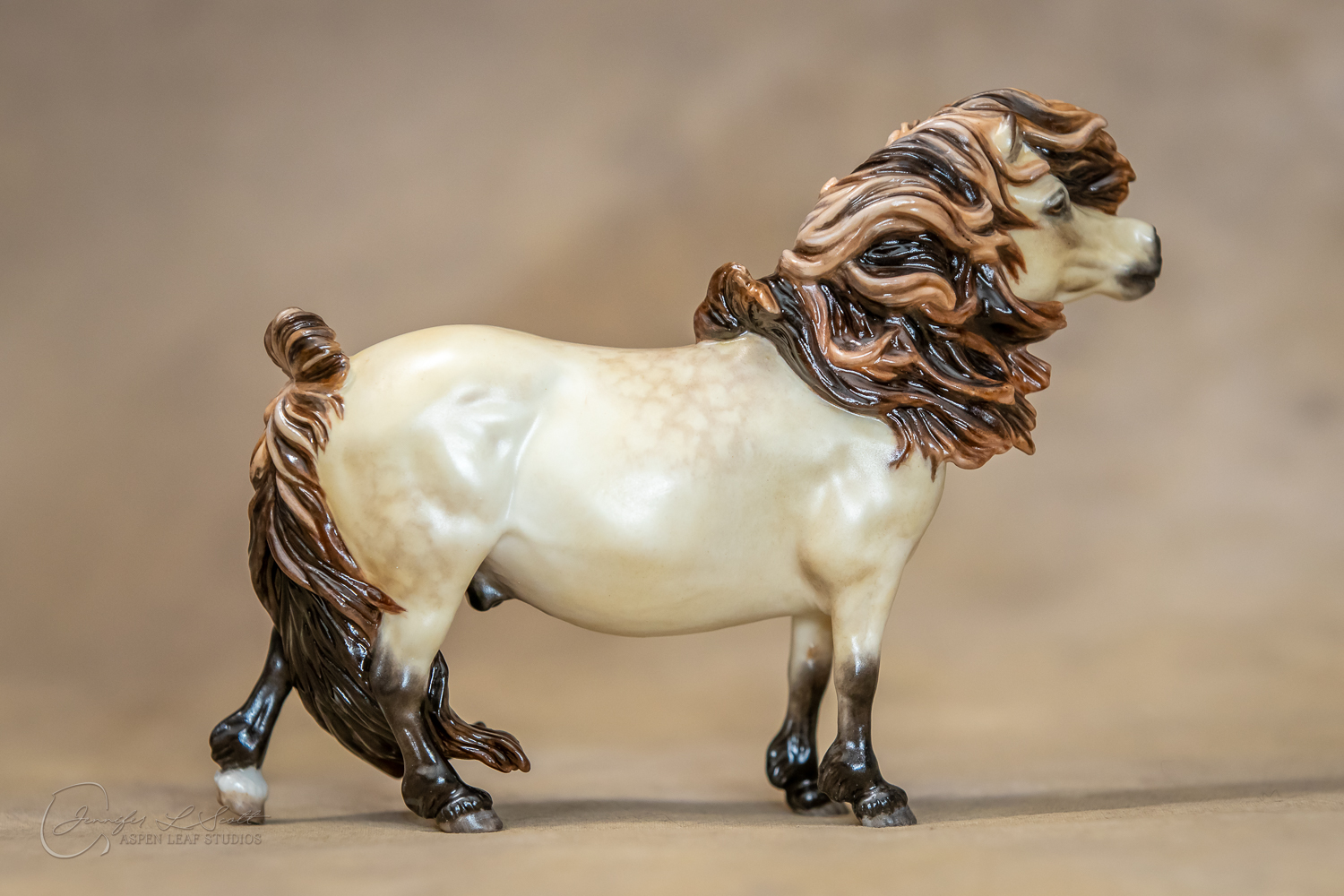 Bone China Tadpole custom glazed in satin finish to a dappled frosty buttermilk buckskin in overglazes. Finished in 2019.