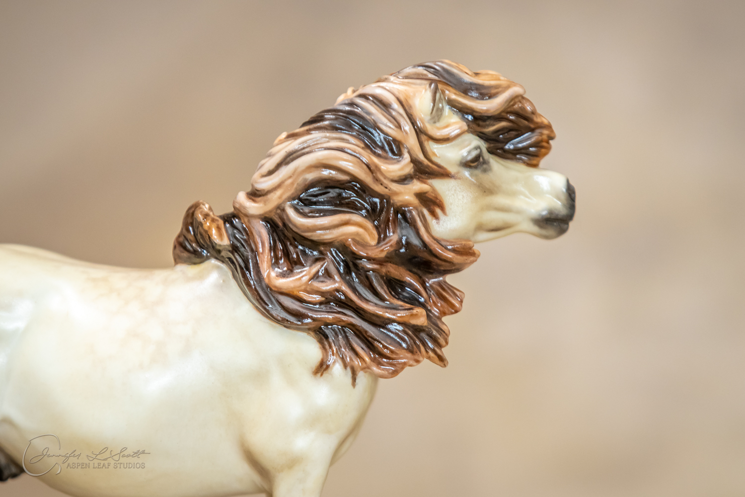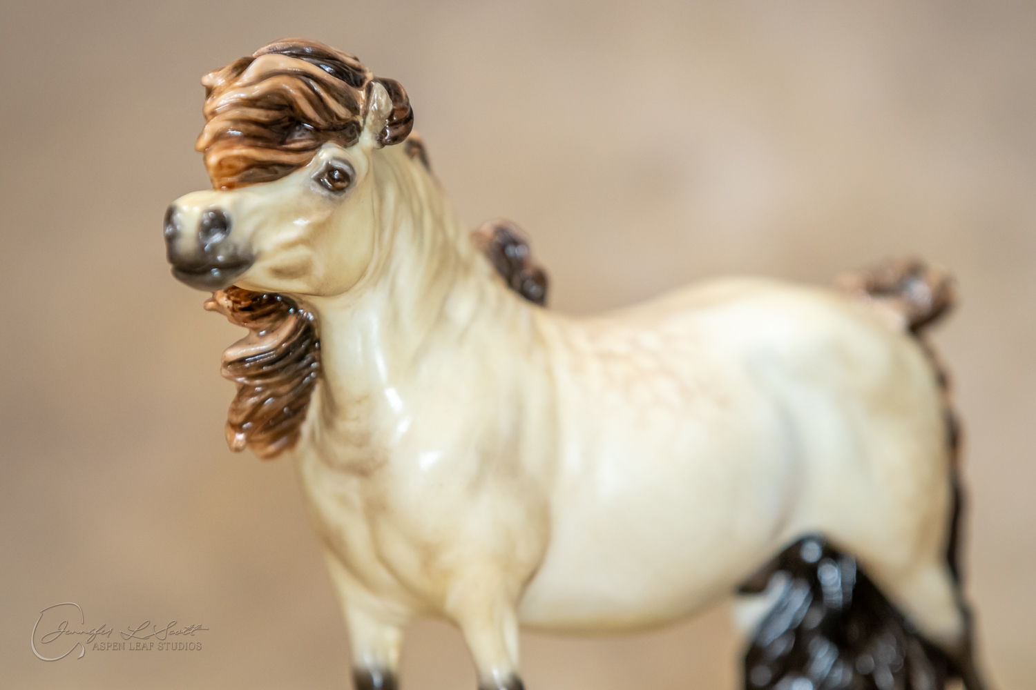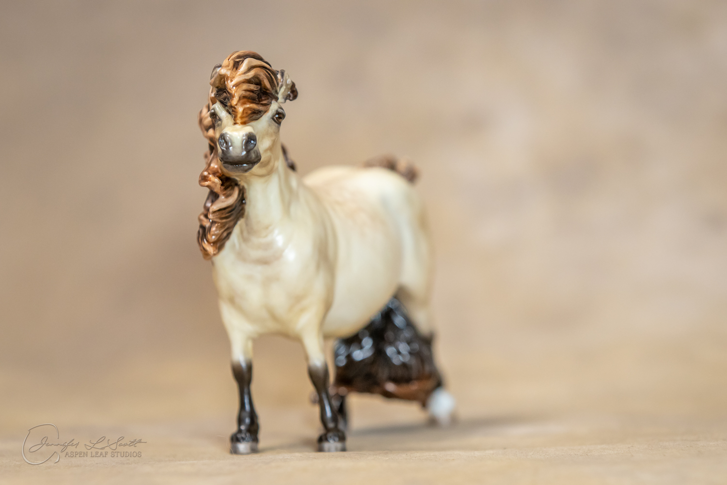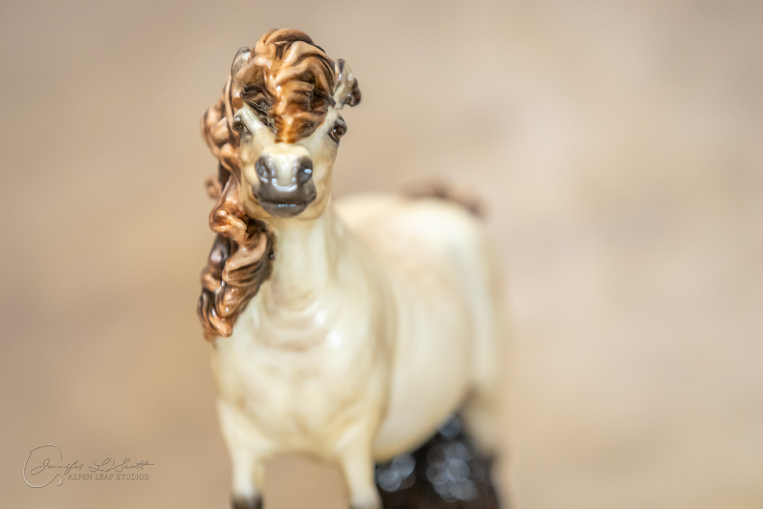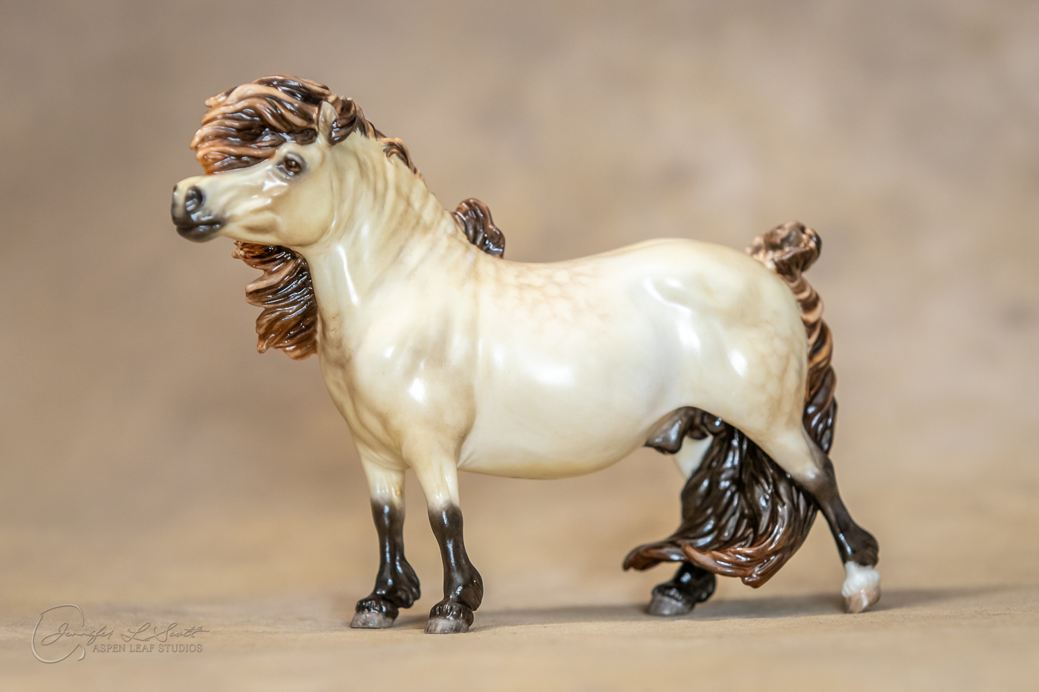 Bone China Tadpole custom glazed in satin finish to a dappled frosty buttermilk buckskin in overglazes. Finished in 2019.