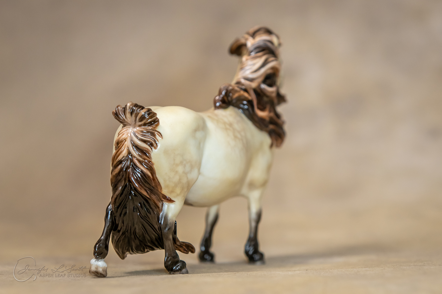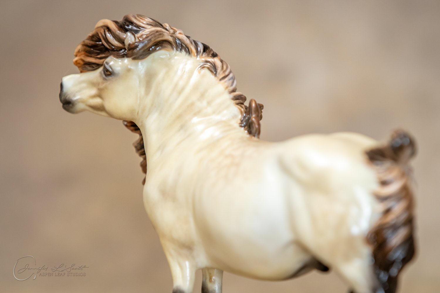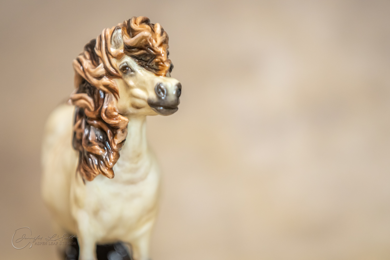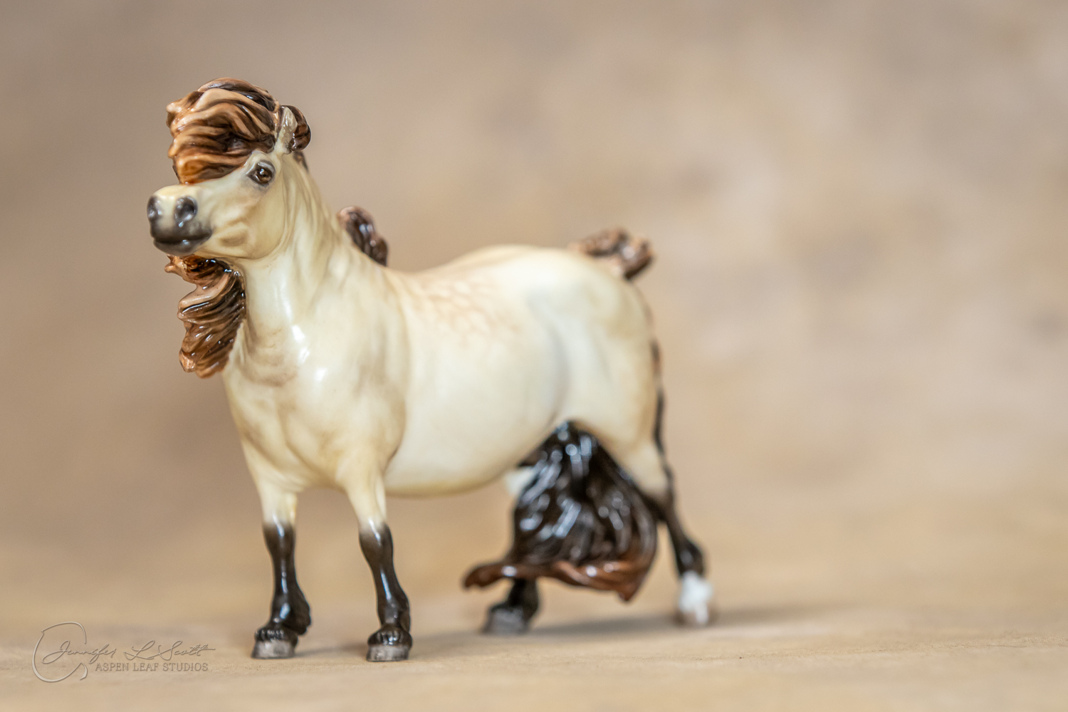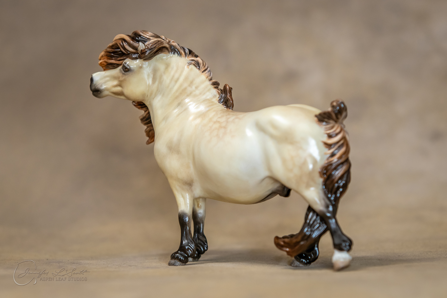 Bone China Tadpole custom glazed in satin finish to a dappled frosty buttermilk buckskin in overglazes. Finished in 2019.