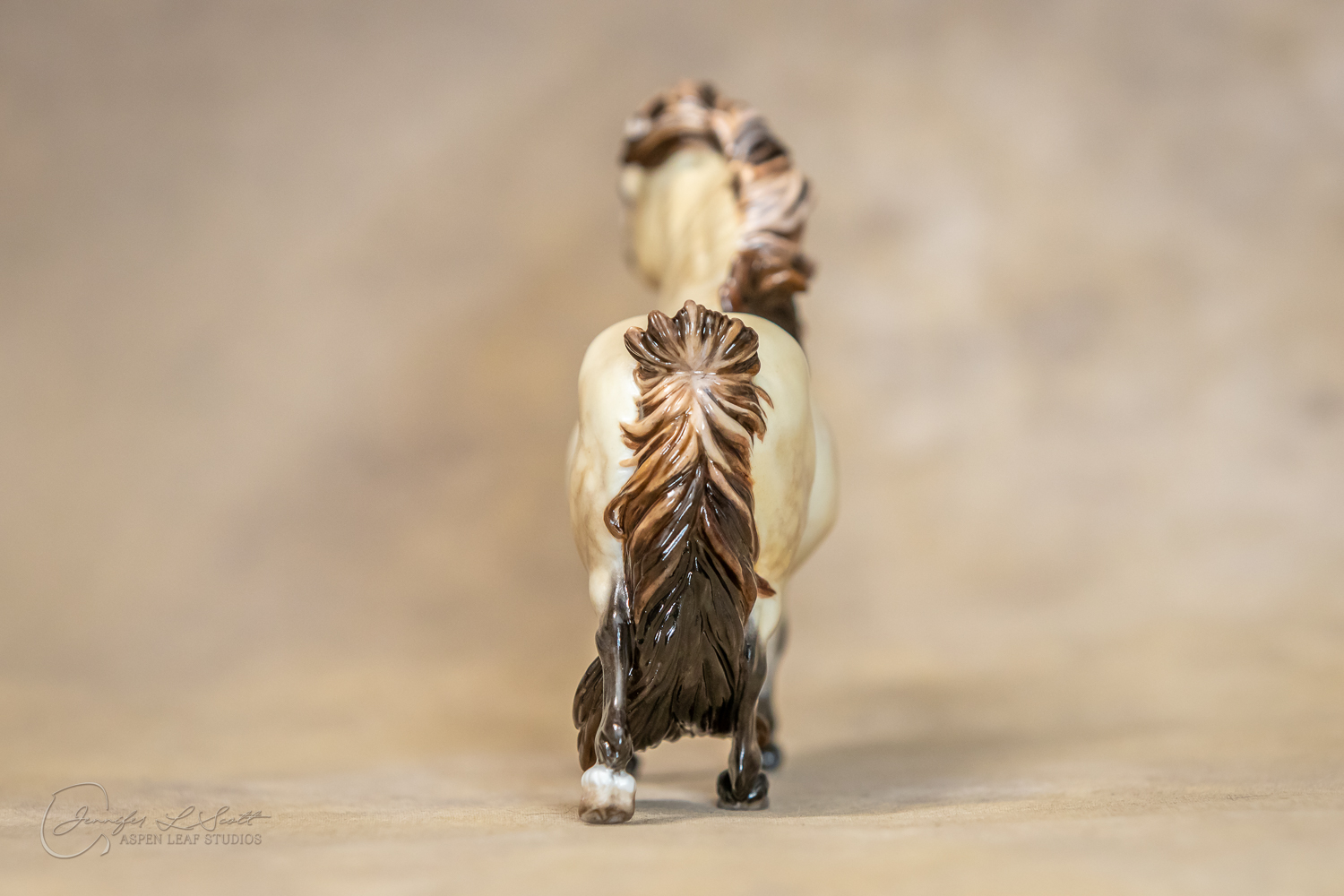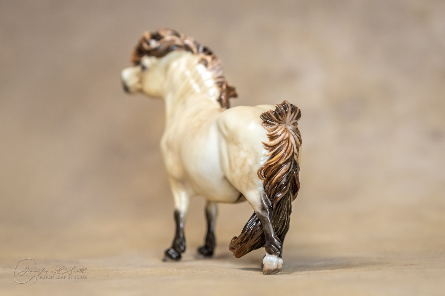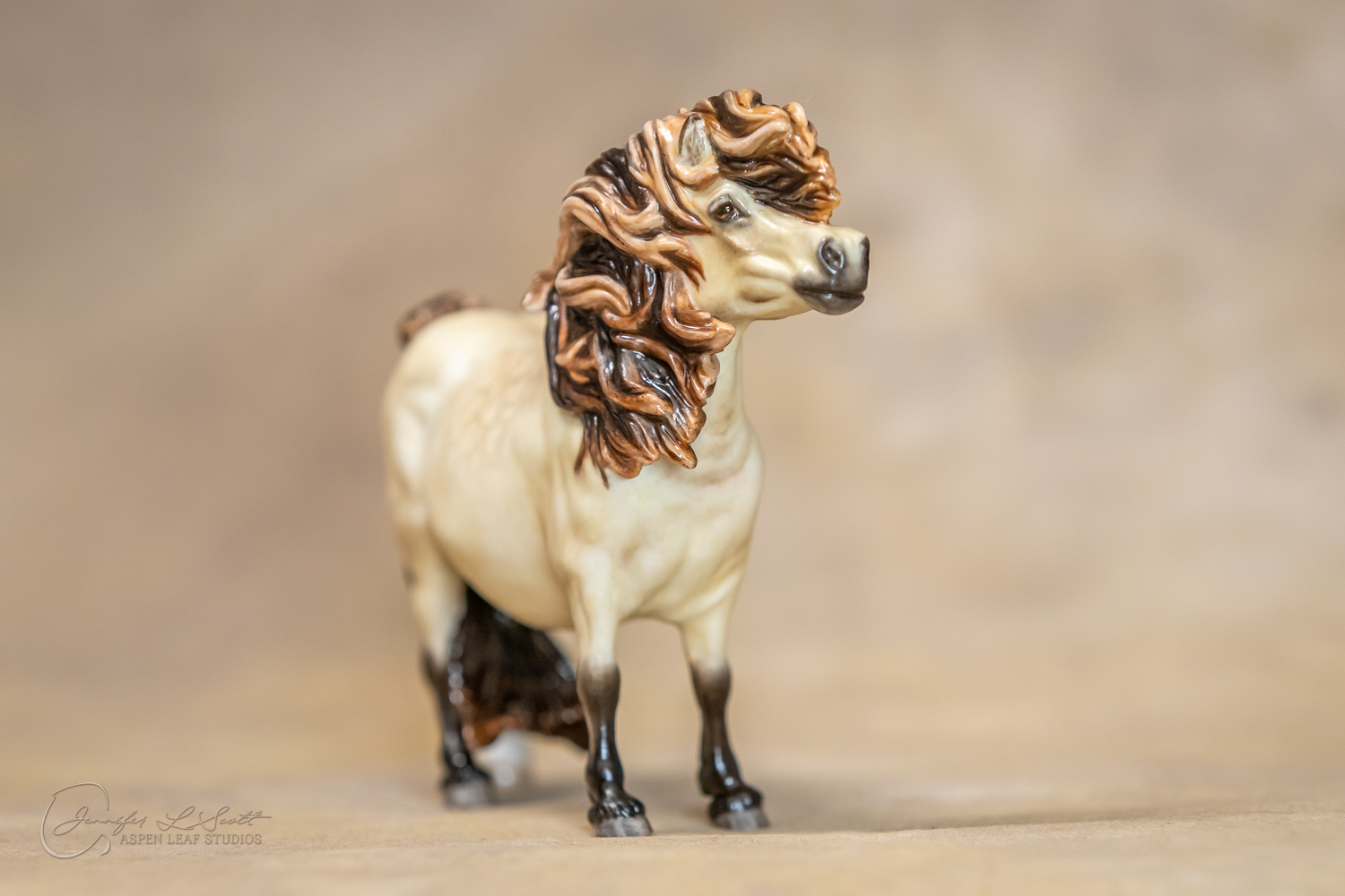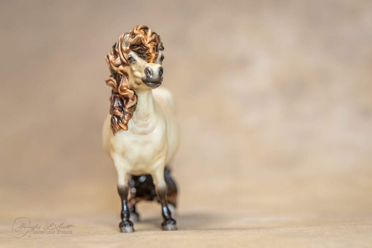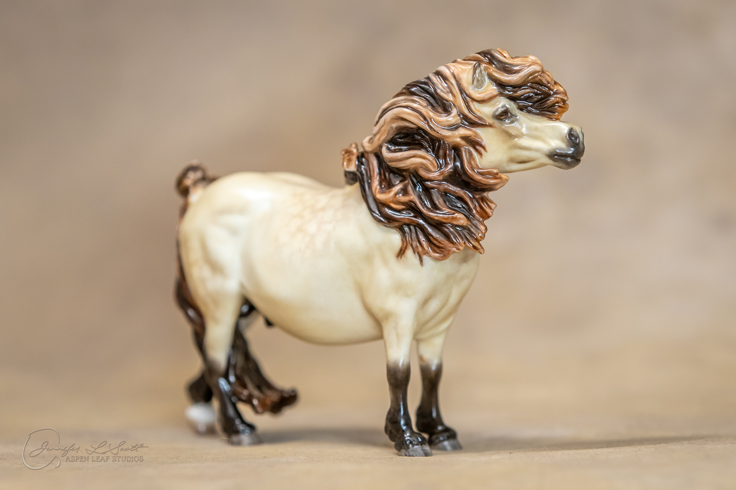 Bone China Tadpole custom glazed in satin finish to a dappled frosty buttermilk buckskin in overglazes. Finished in 2019.