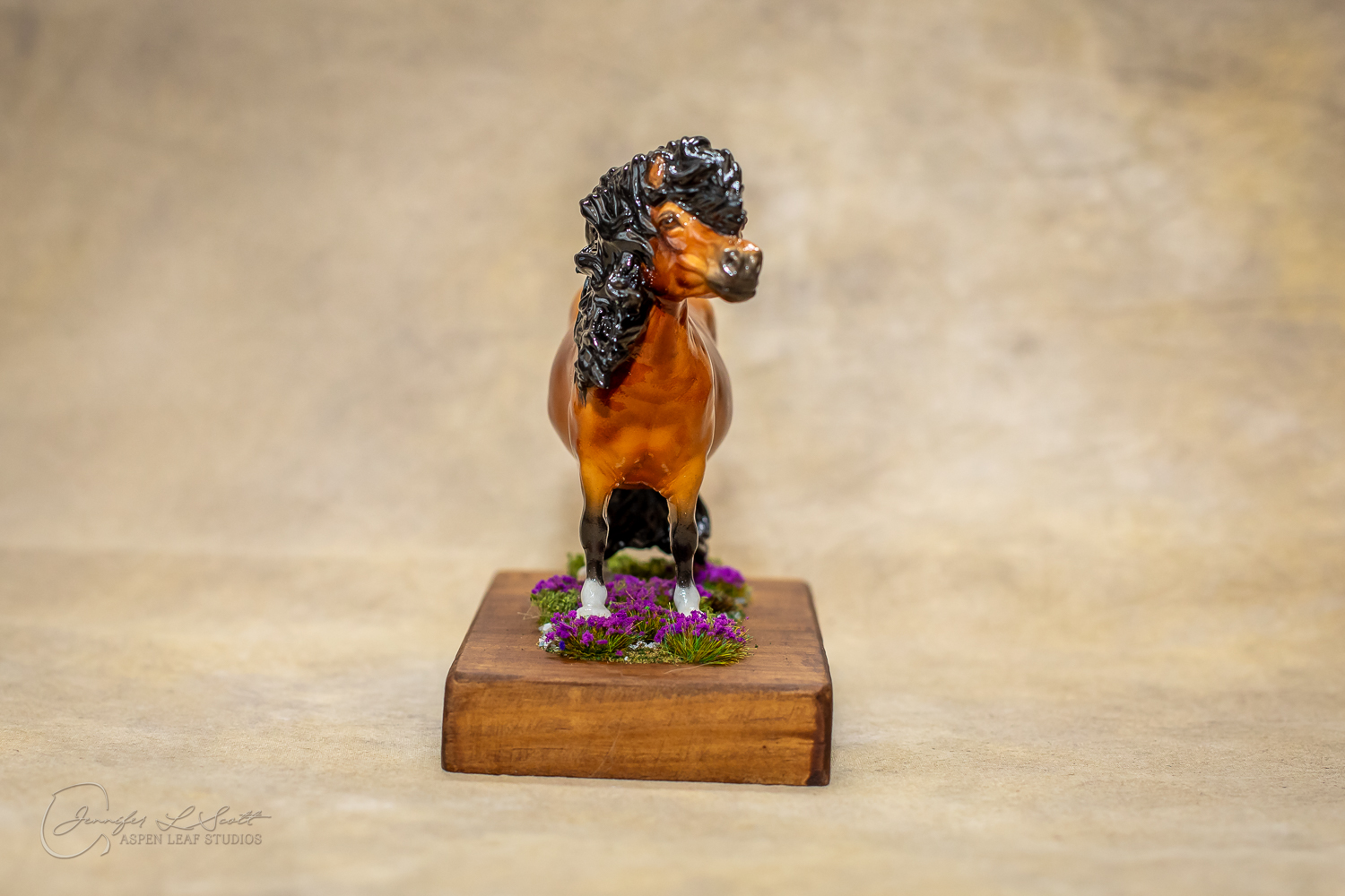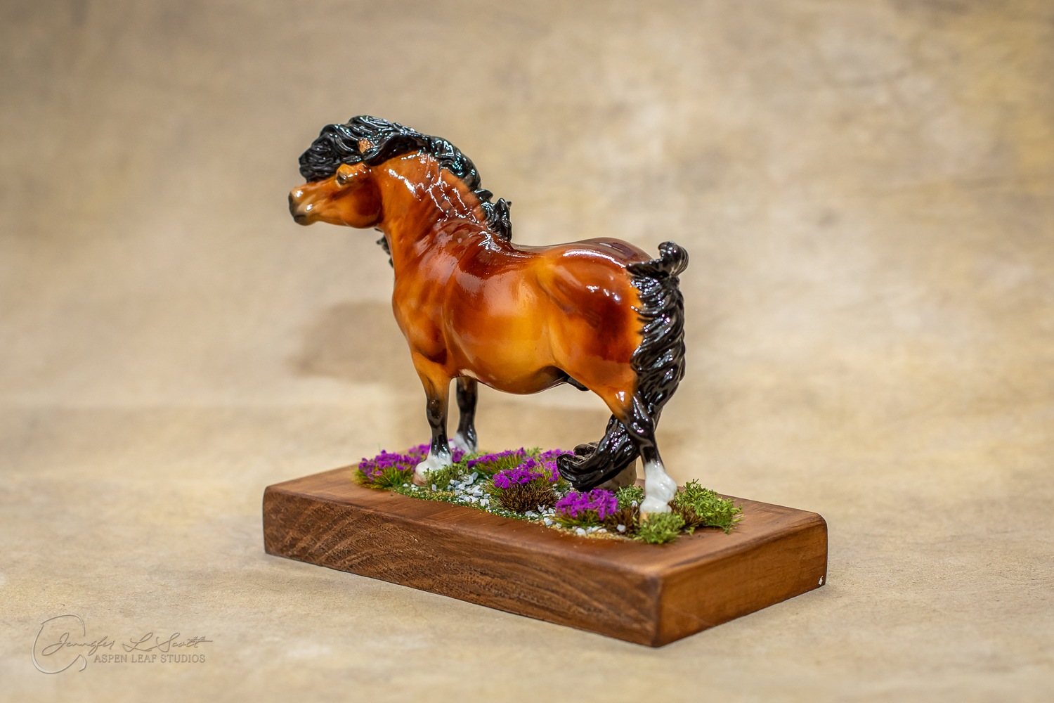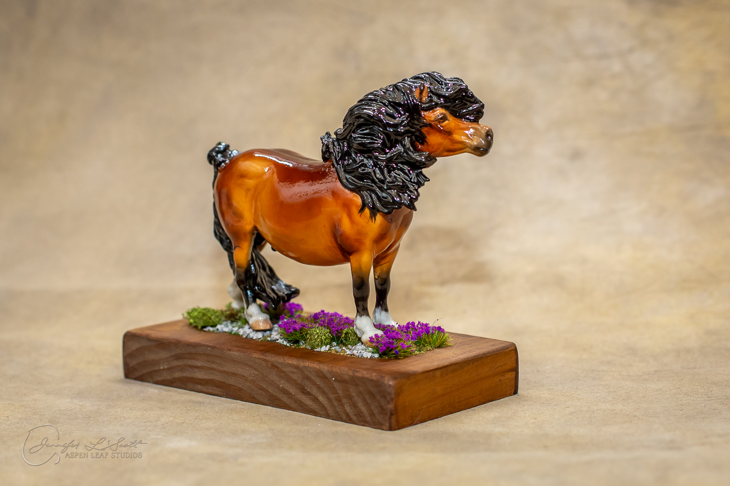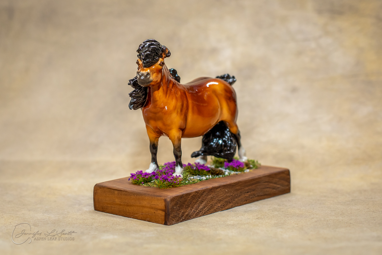 Porcelain Tadpole custom glazed in glossy finish to a bright bay in overlgazes with a custom wood diorama-type base. Finished in 2024.