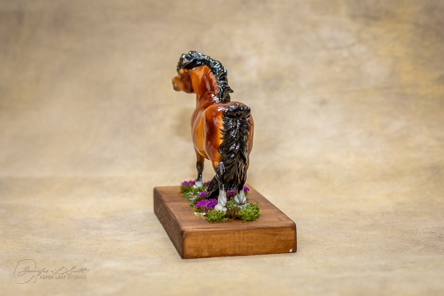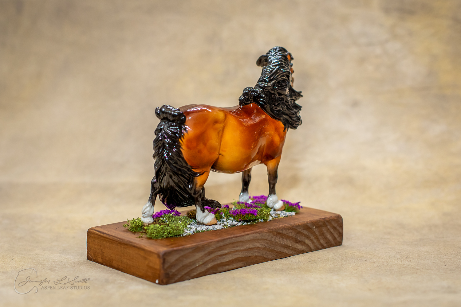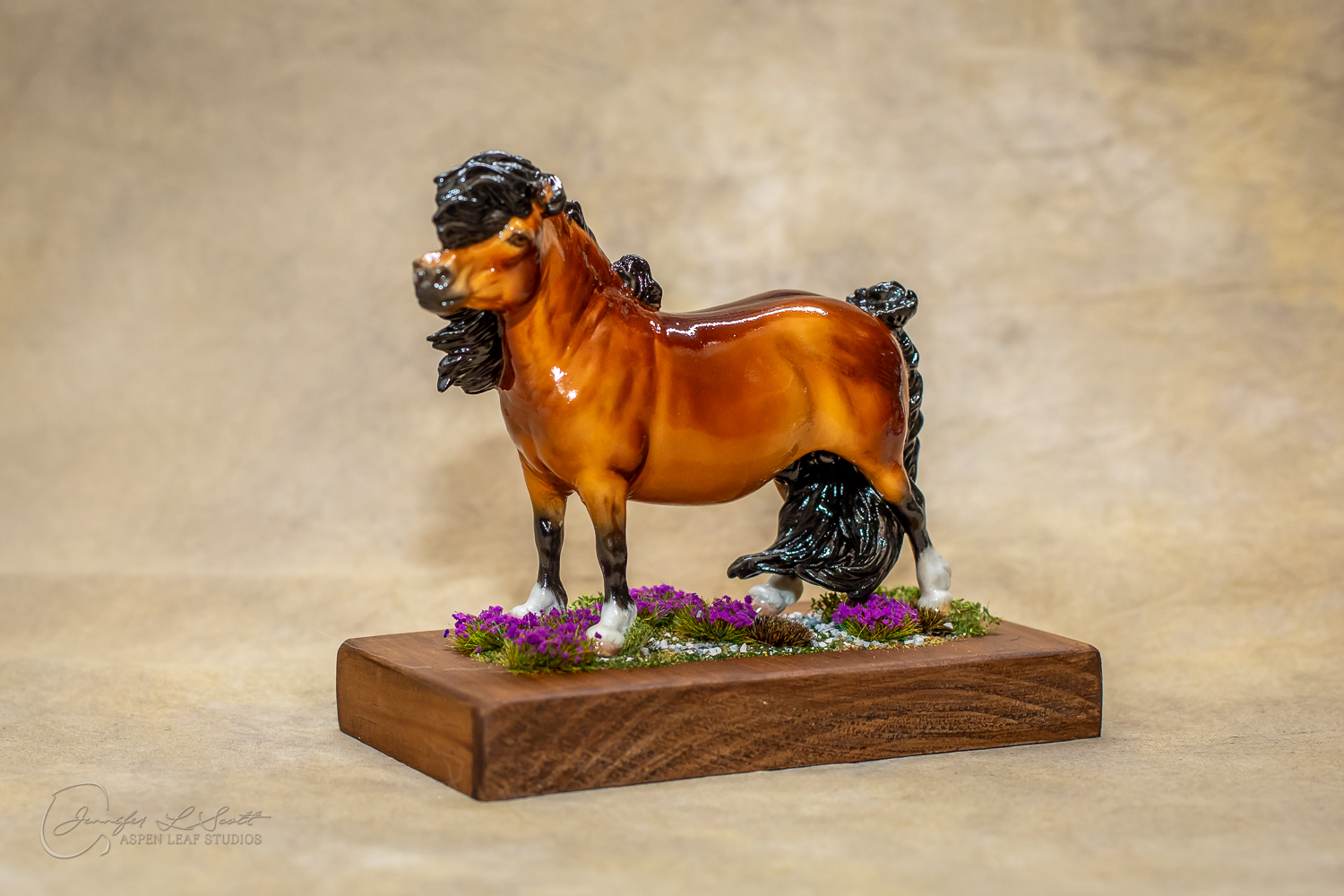 Porcelain Tadpole custom glazed in glossy finish to a bright bay in overlgazes with a custom wood diorama-type base. Finished in 2024.