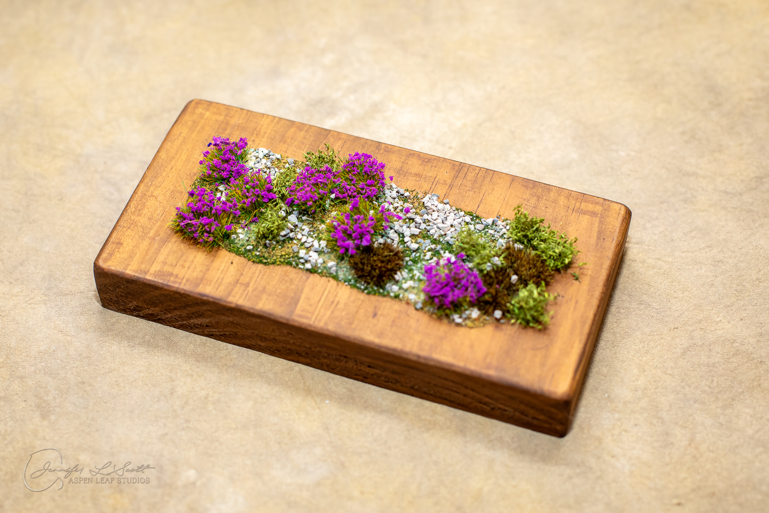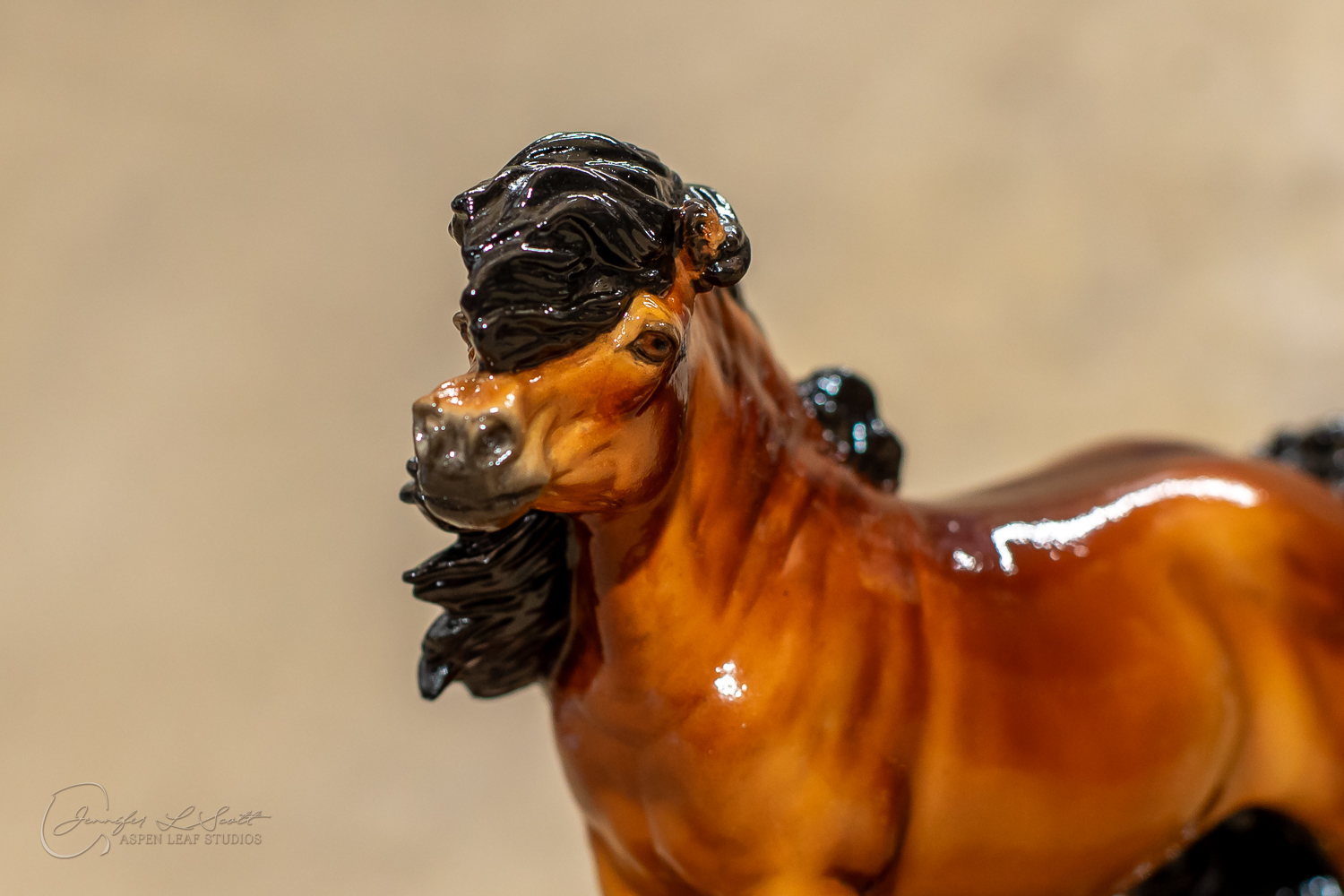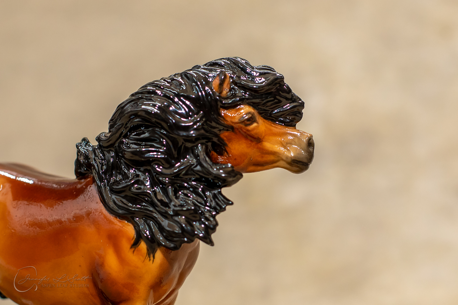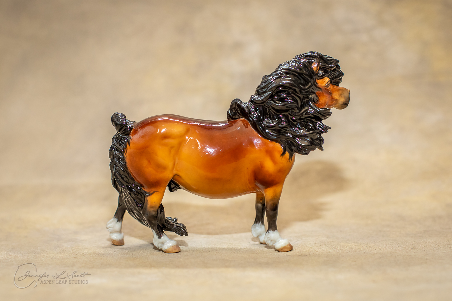 Porcelain Tadpole custom glazed in glossy finish to a bright bay in overlgazes with a custom wood diorama-type base. Finished in 2024.