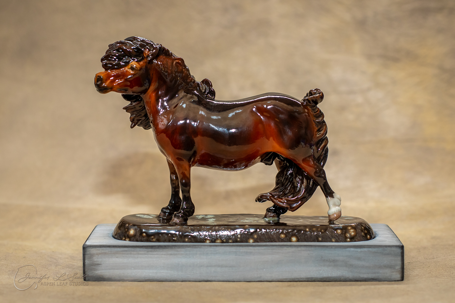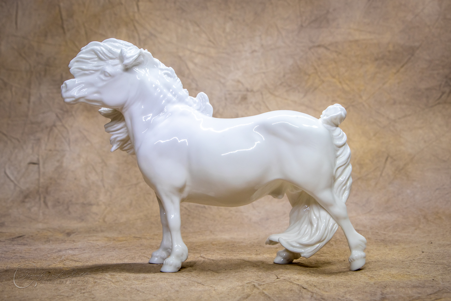 With the exception of four bone china proofs cast by Animal Artistry for me, this piece is destined for porcelain casting in house. In addition to the free-standing sculpture, the regular edition porcelain pieces will also have a base option for an elevated finished look. Bisques are not offered for this piece. Though guest glazers may show up in the edition at some point, all glazework on the edition is by me.