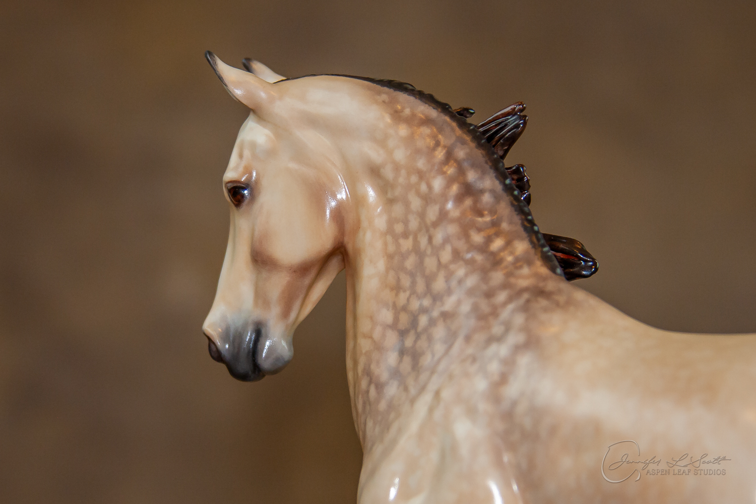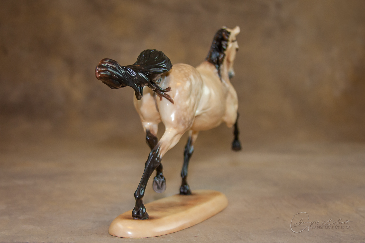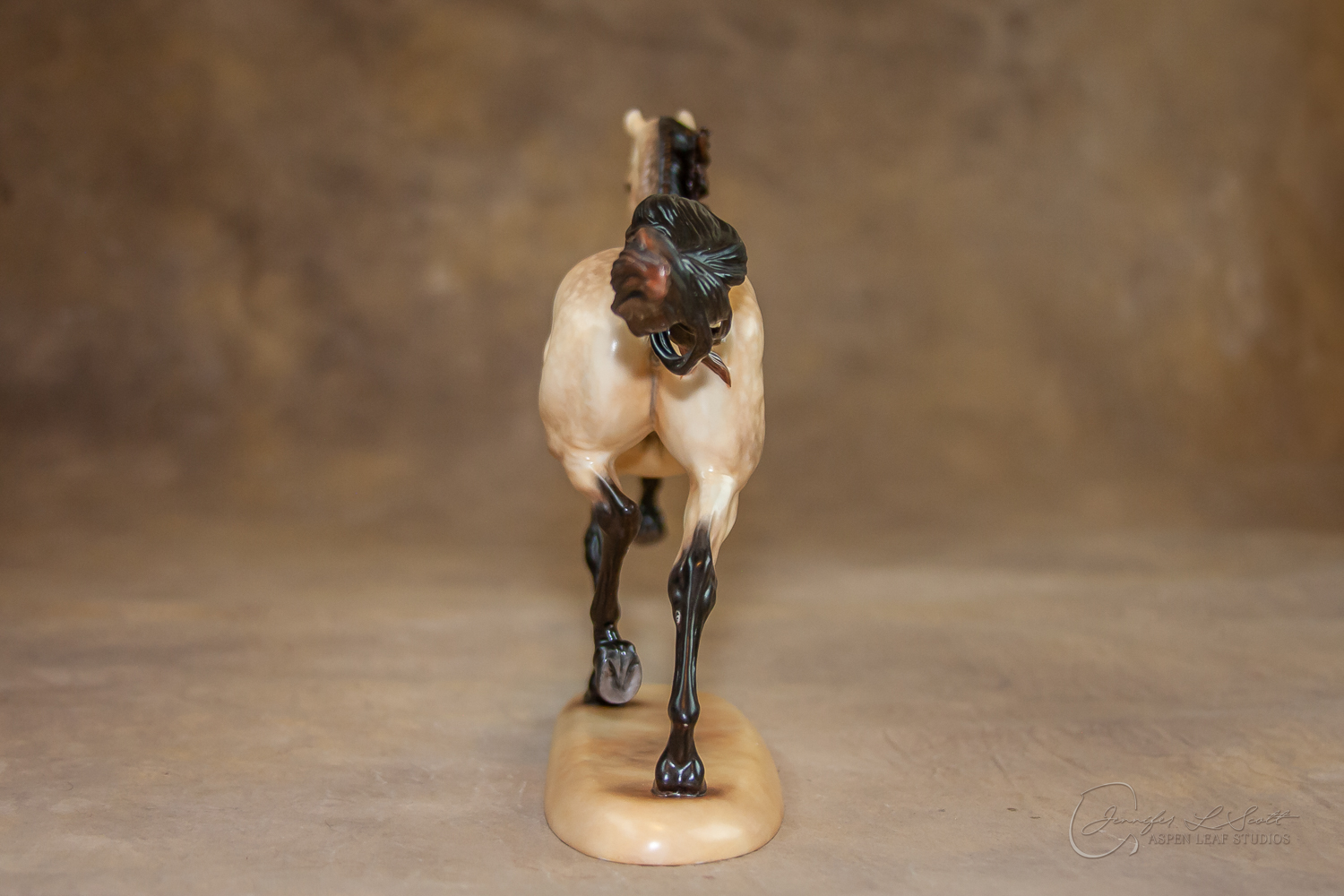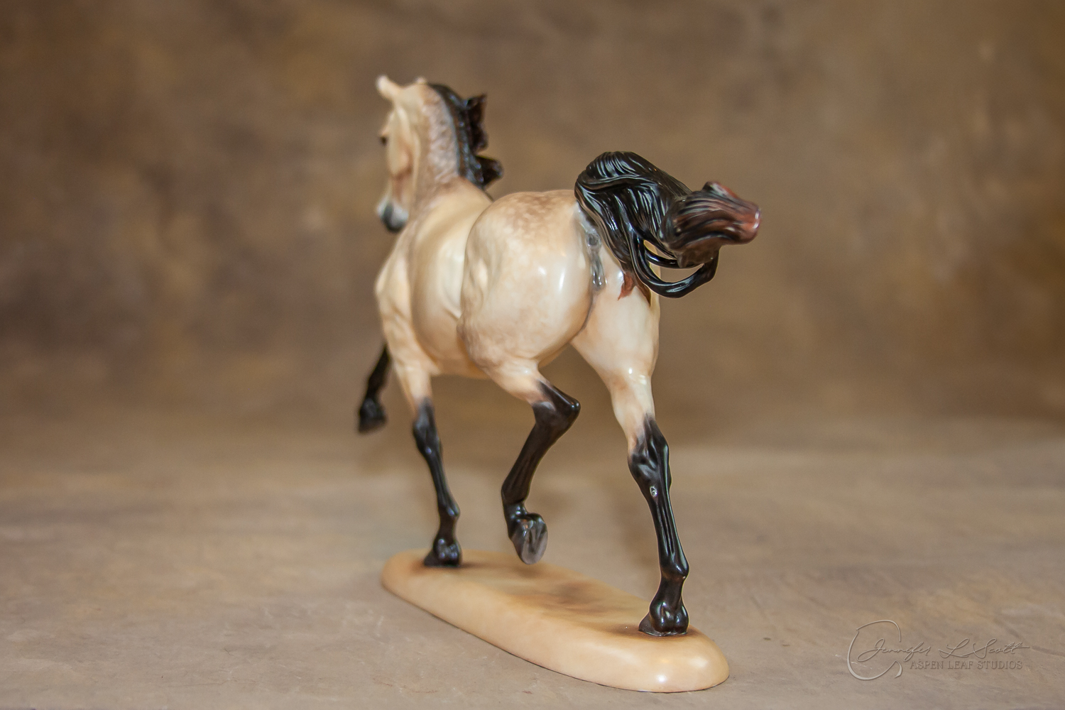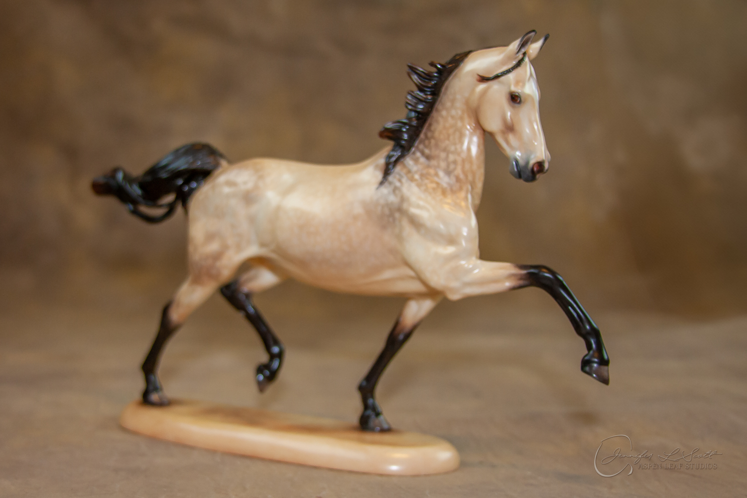 Satin finish, overglazed dappled sooty buttermilk buckskin.