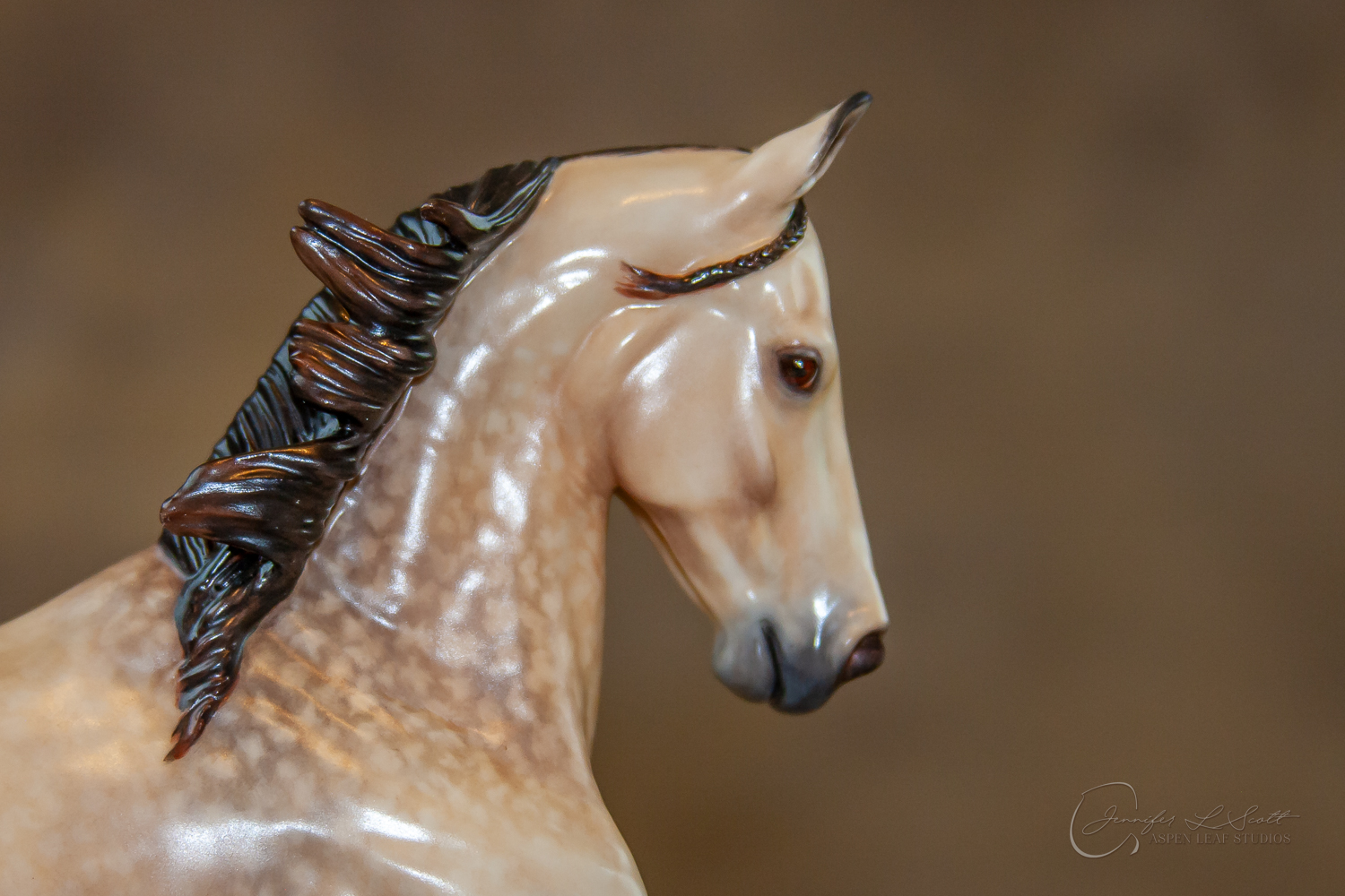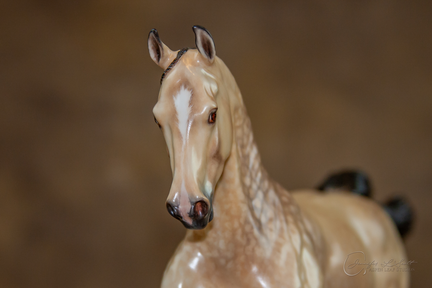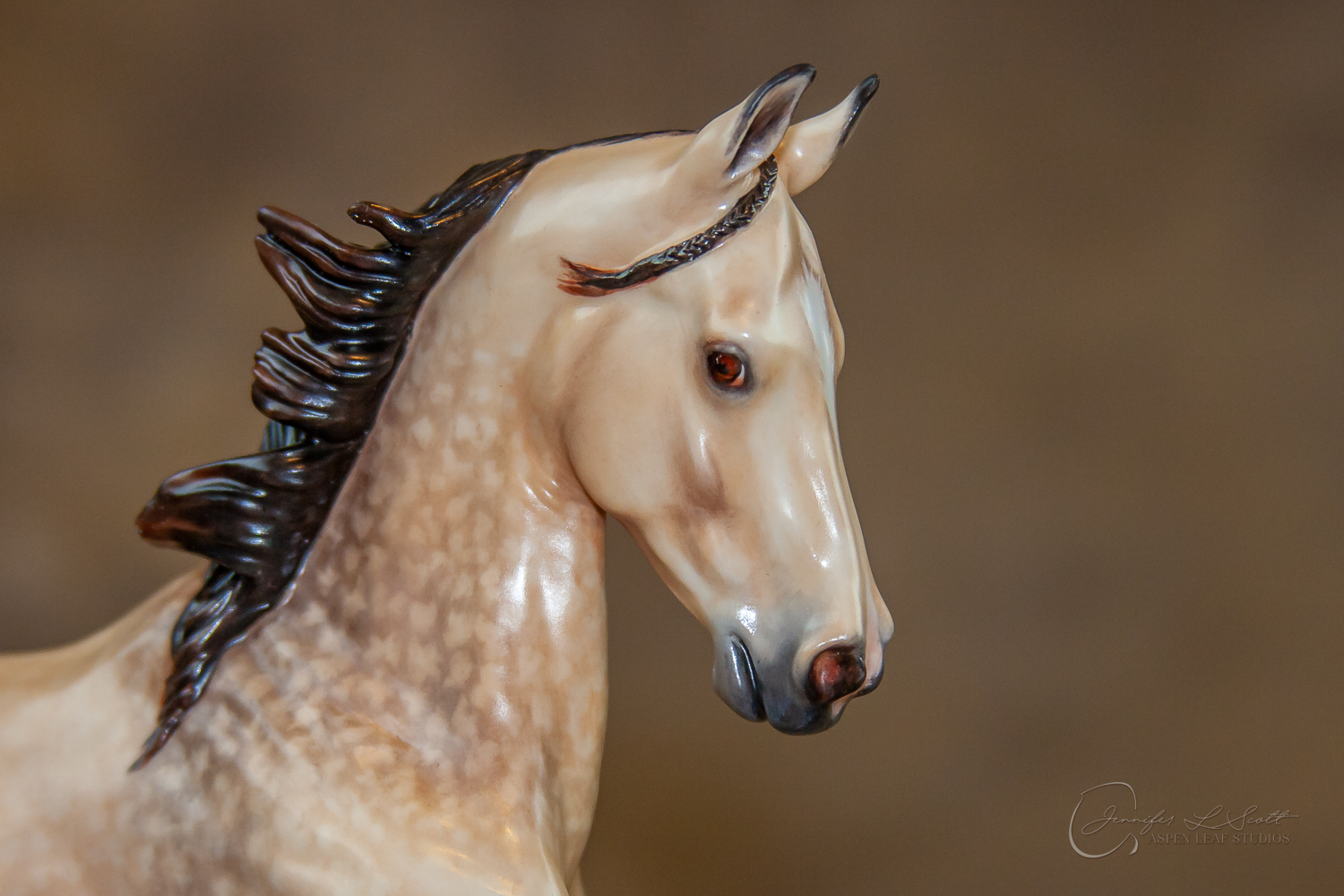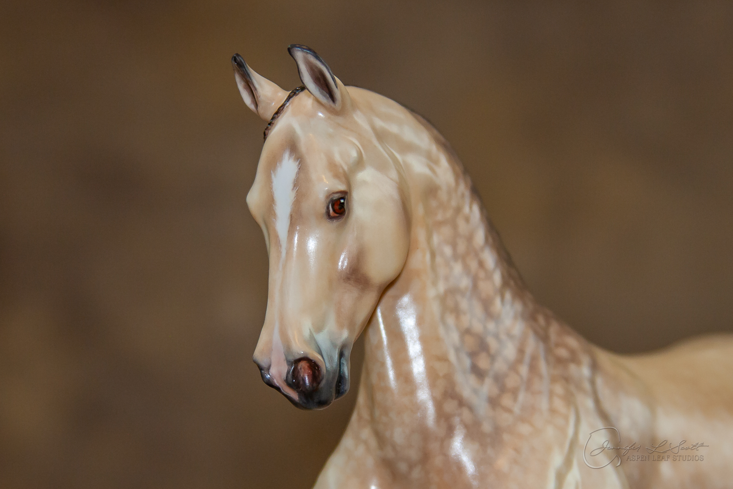 Satin finish, overglazed dappled sooty buttermilk buckskin.