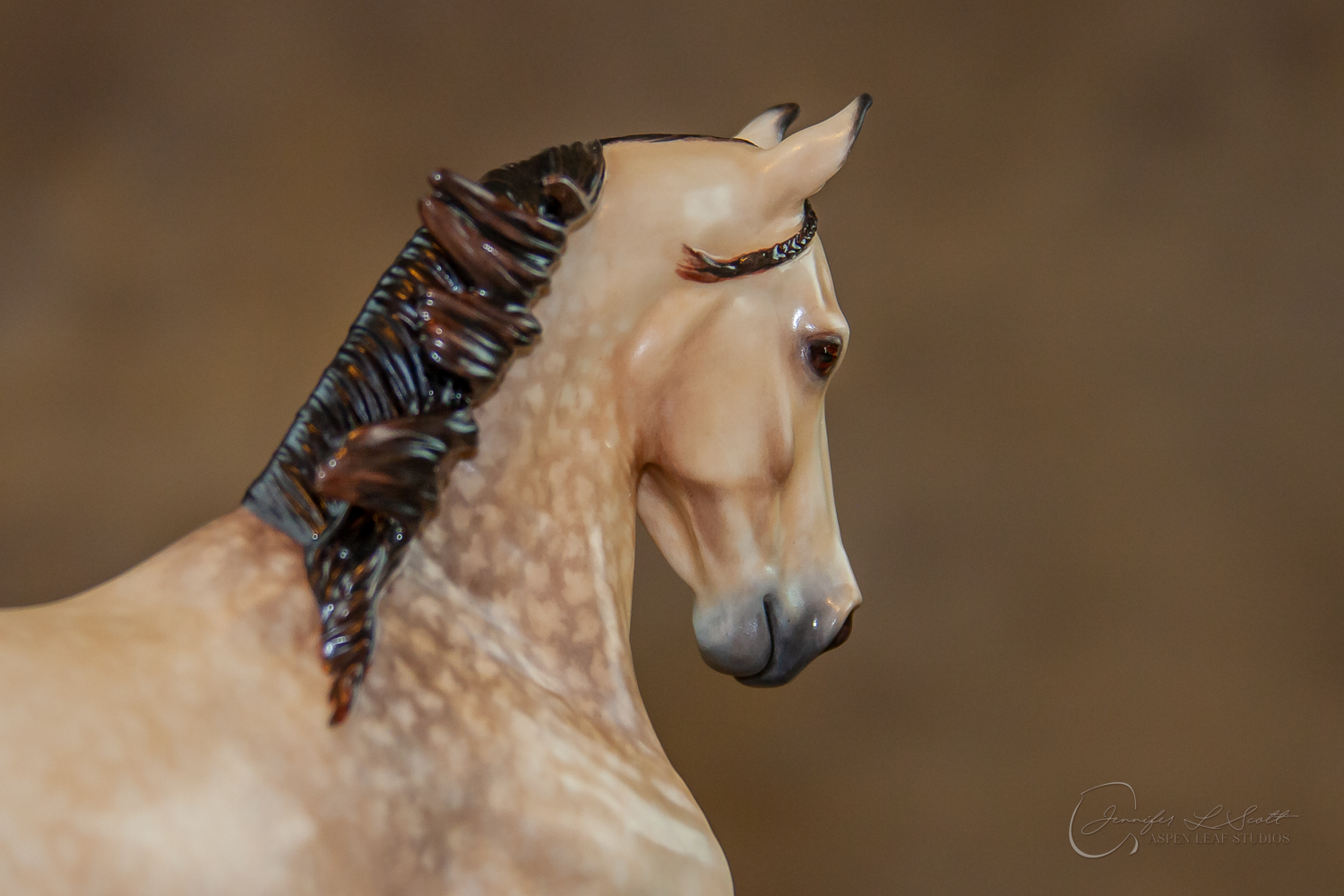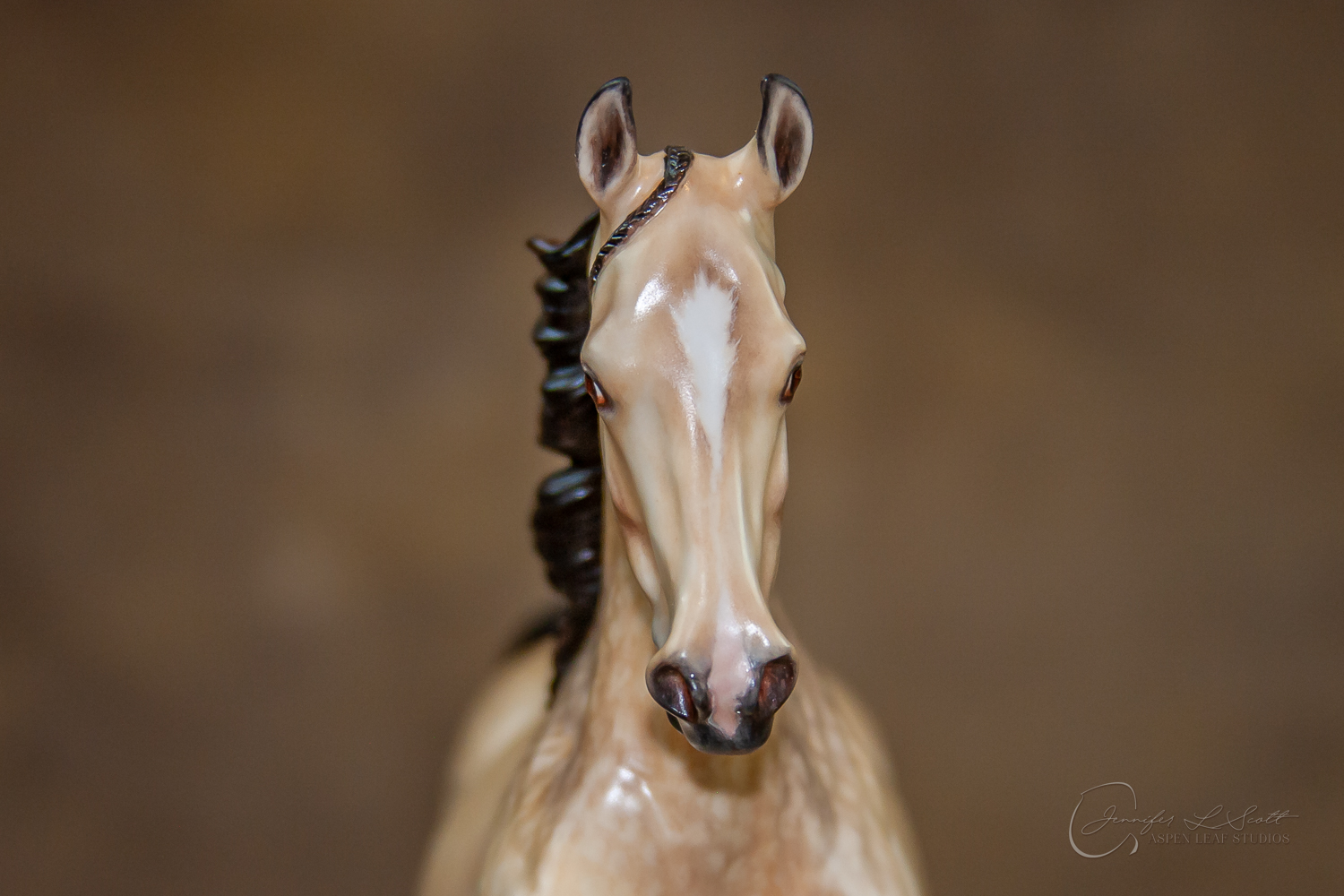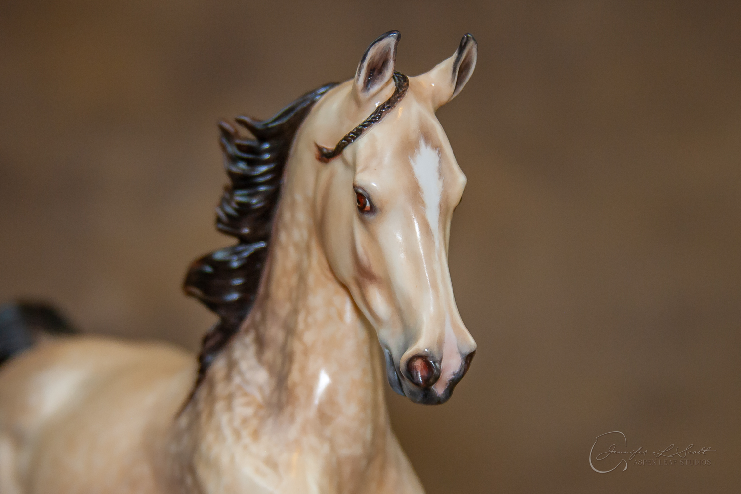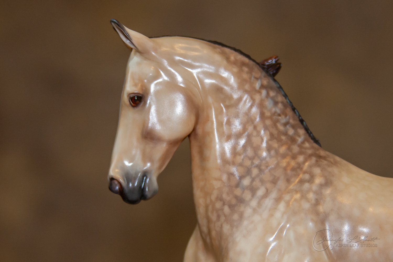 Satin finish, overglazed dappled sooty buttermilk buckskin.