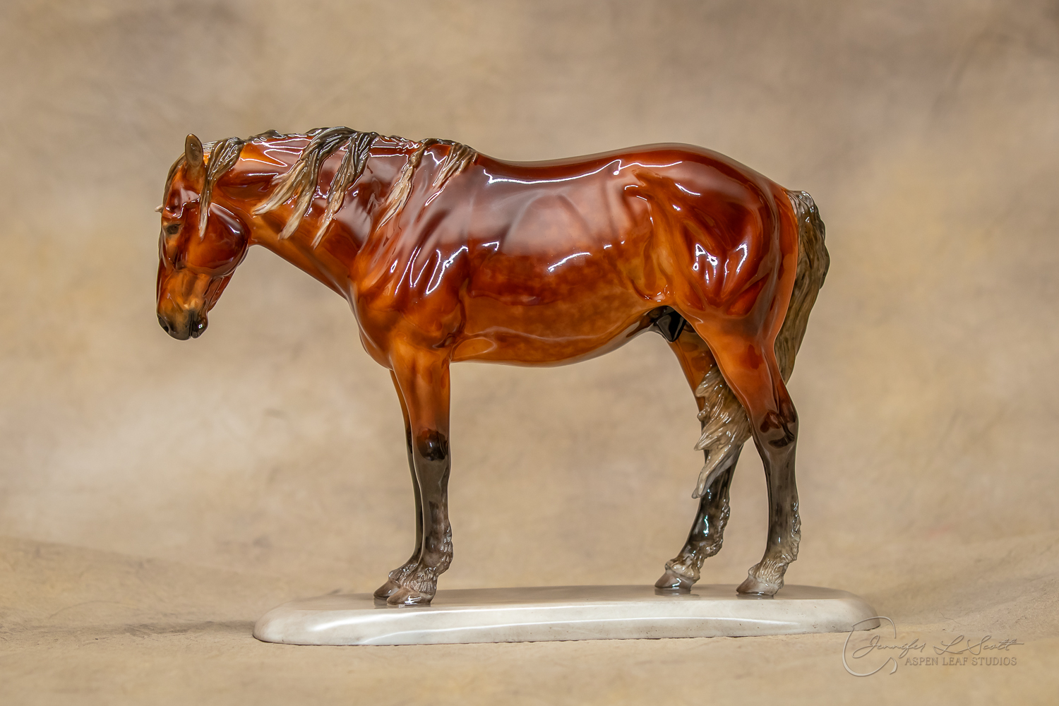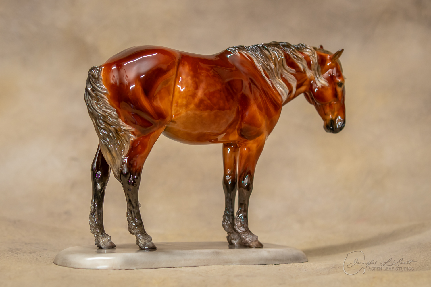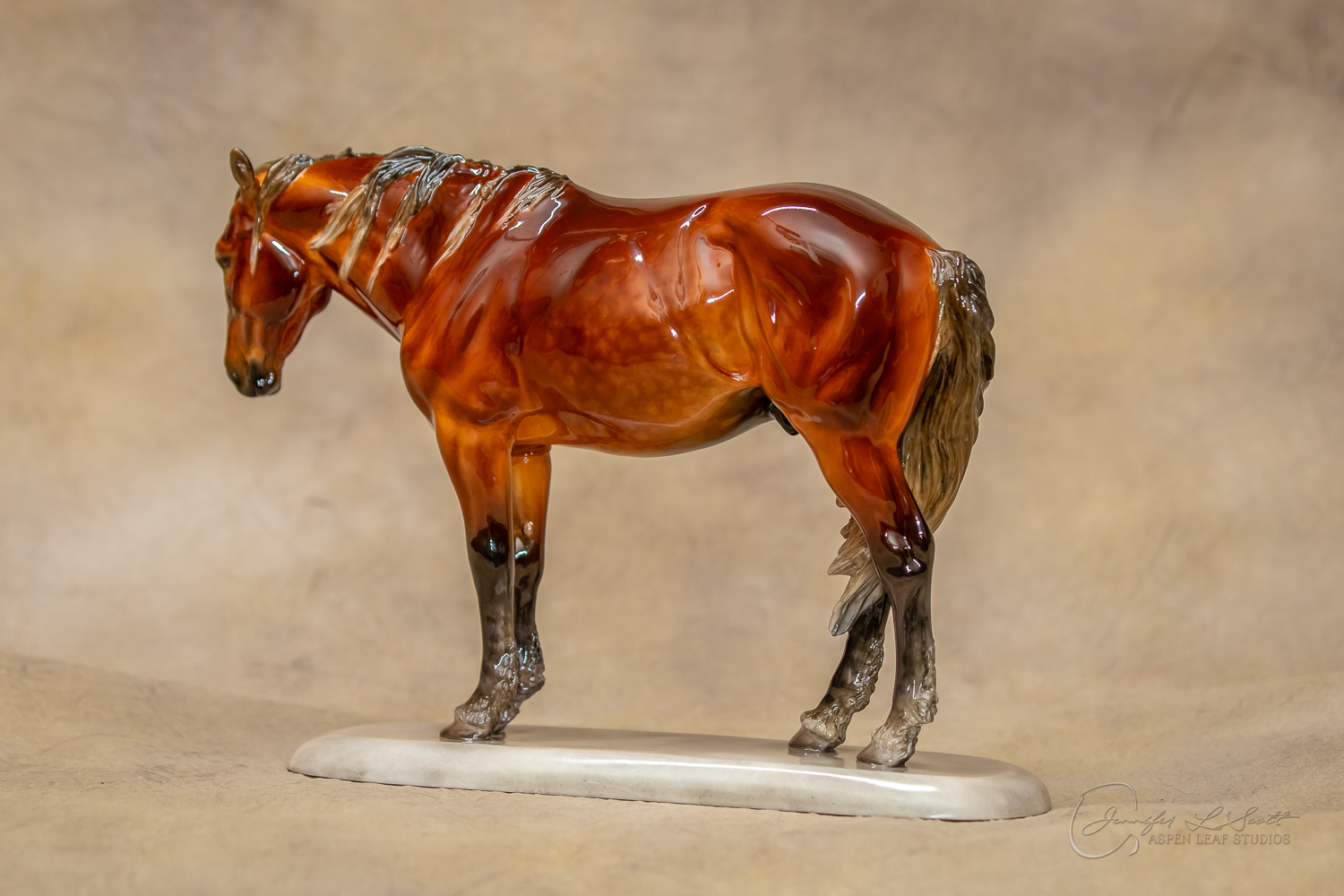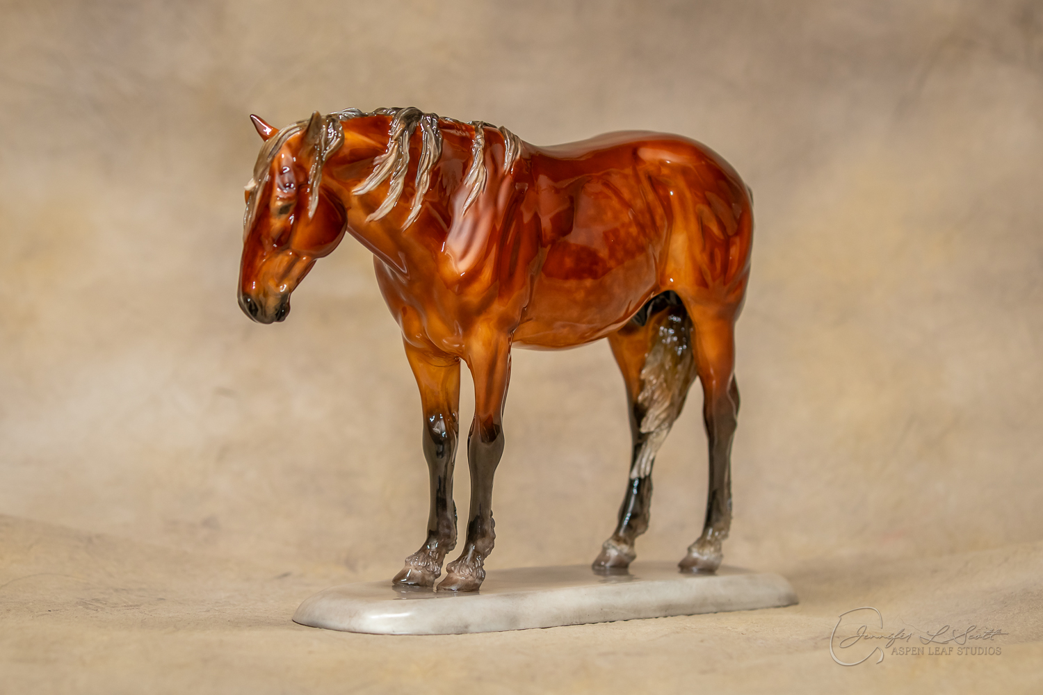 Glossy finish, overglazed dappled silver bay. Finished in 2020.