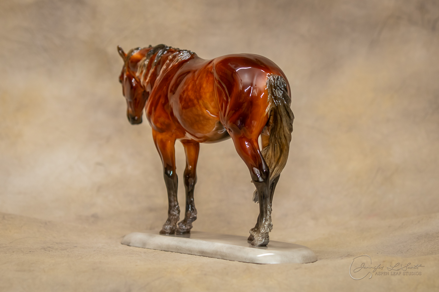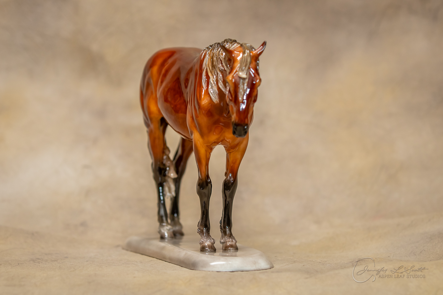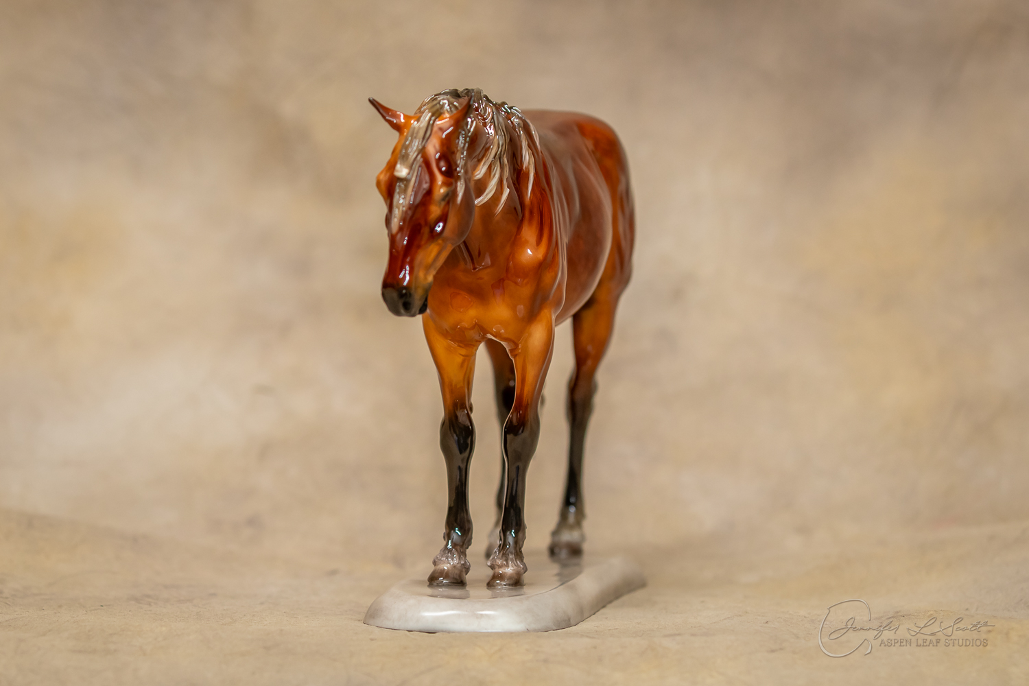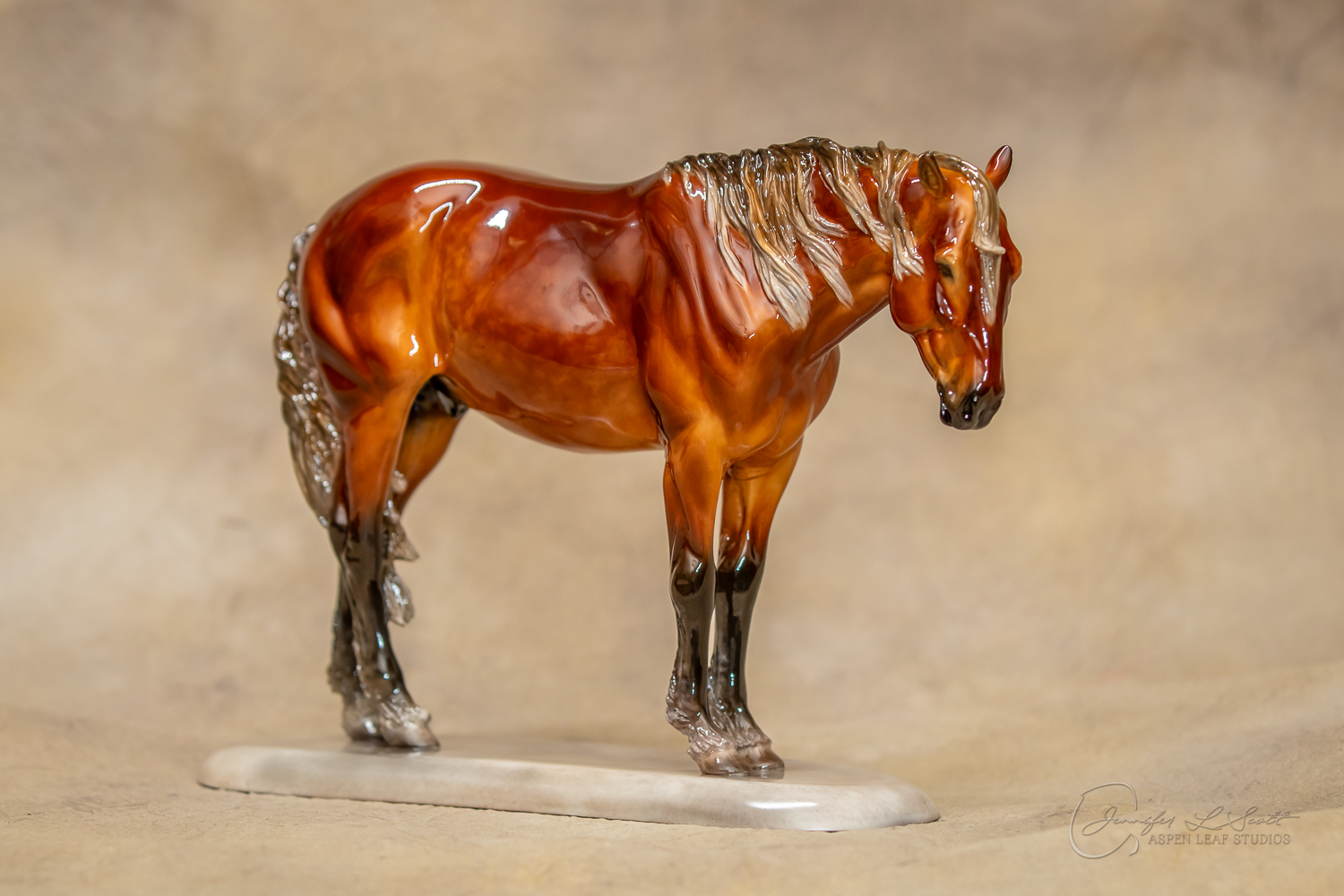 Glossy finish, overglazed dappled silver bay. Finished in 2020.