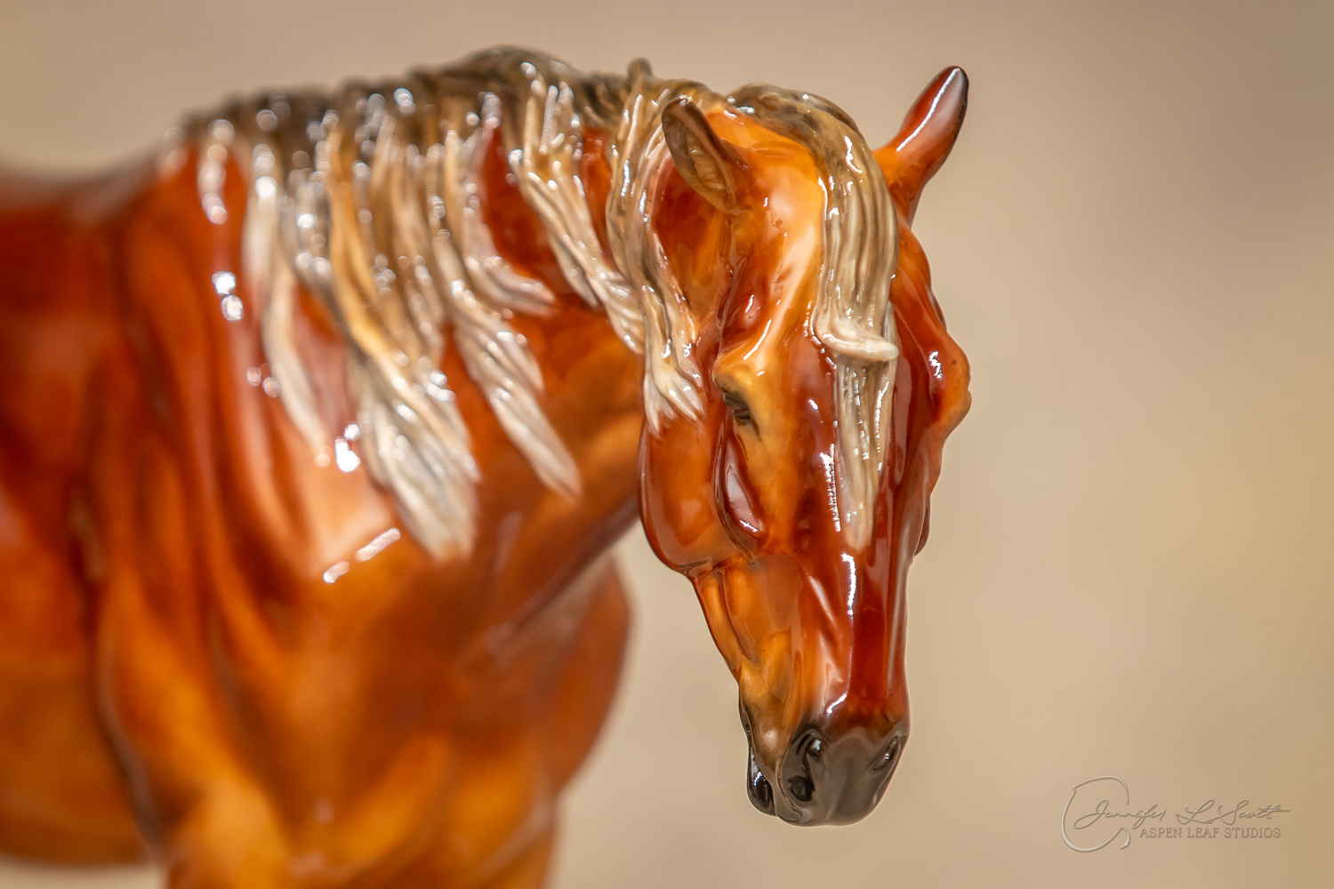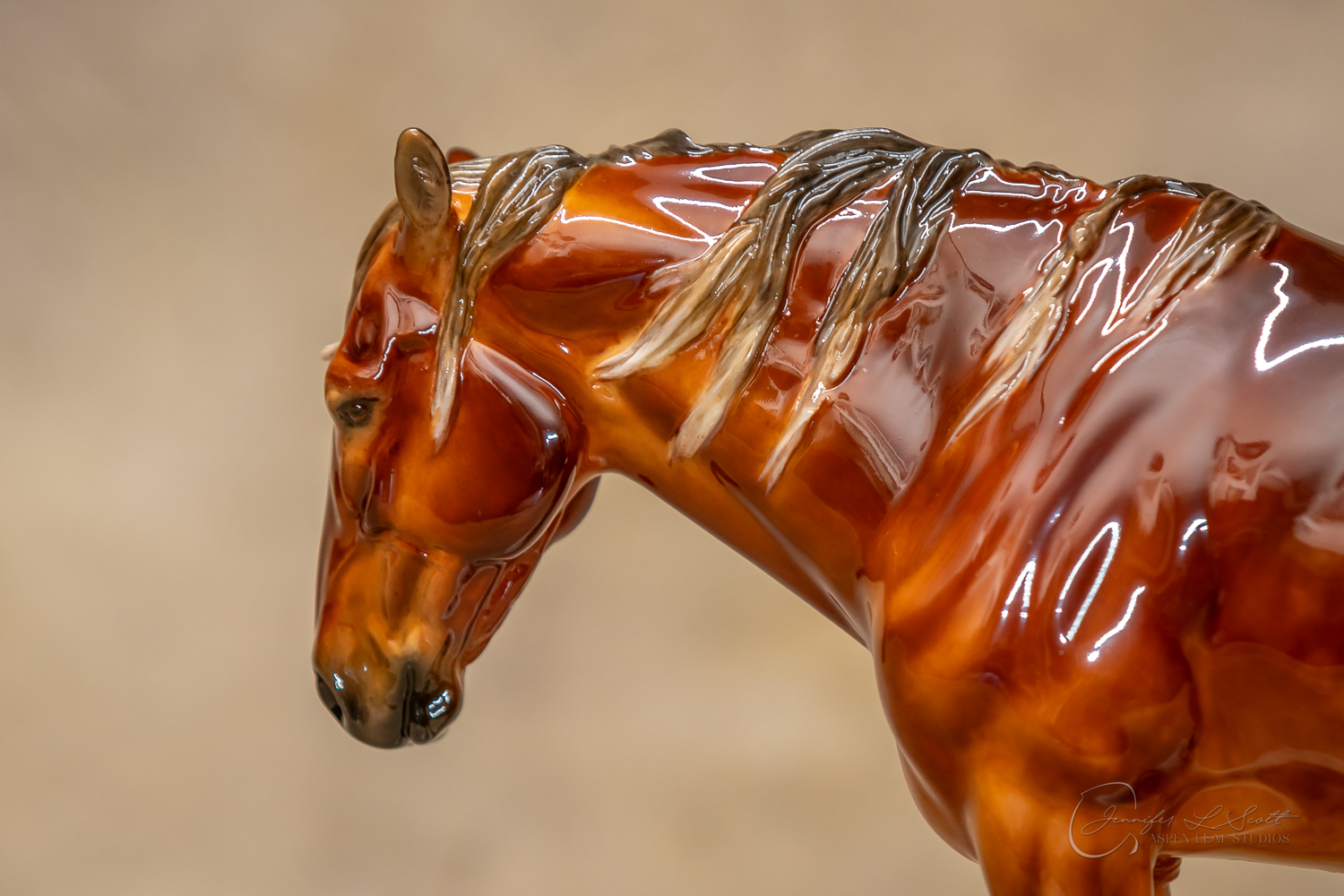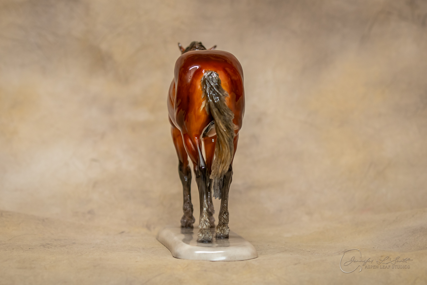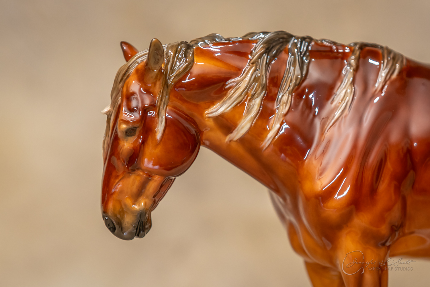 Glossy finish, overglazed dappled silver bay. Finished in 2020.