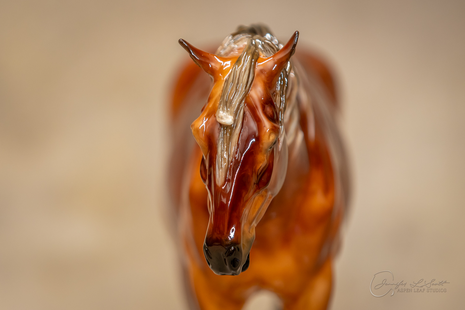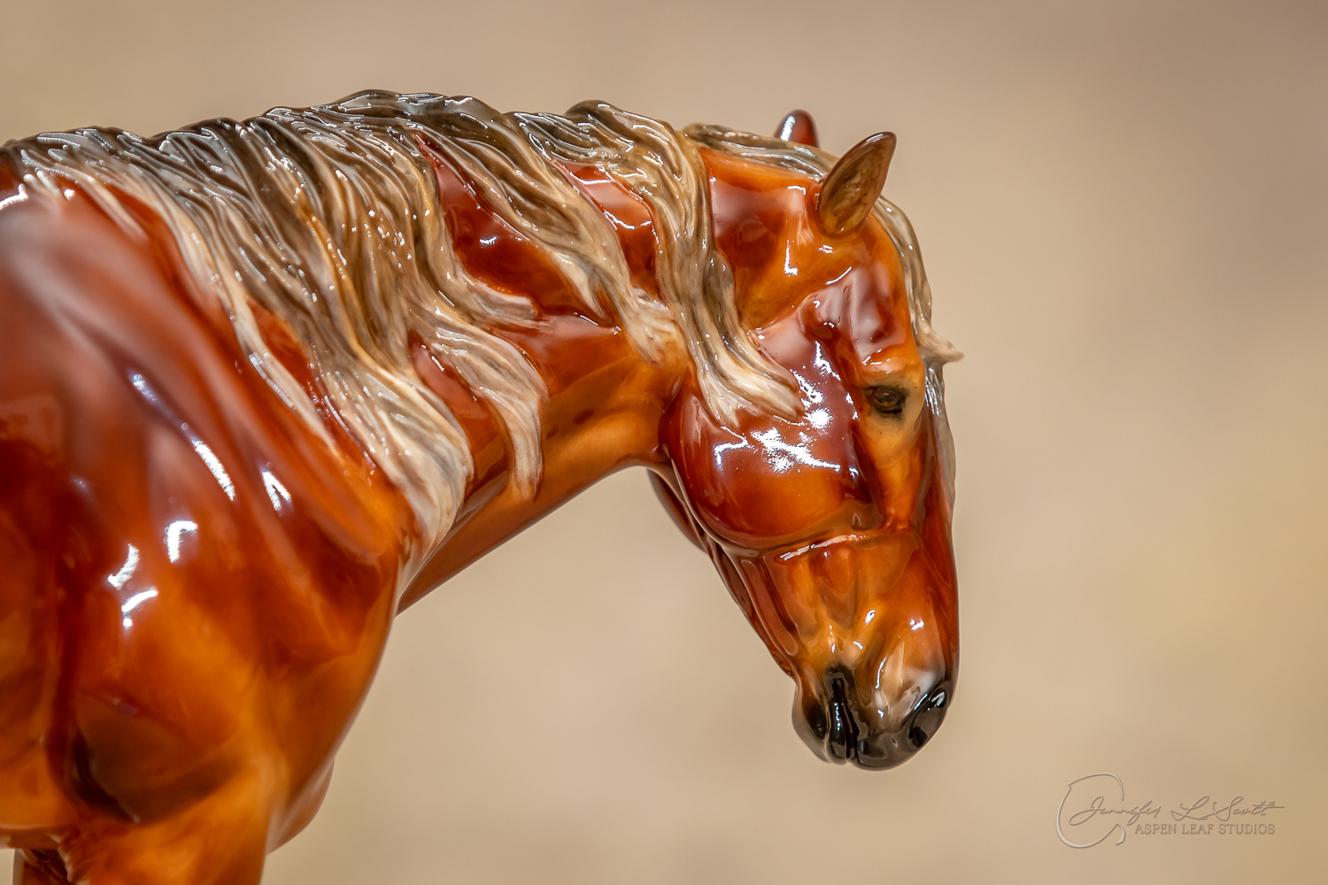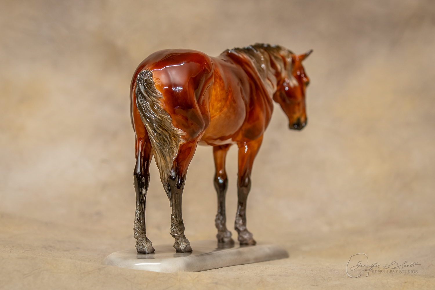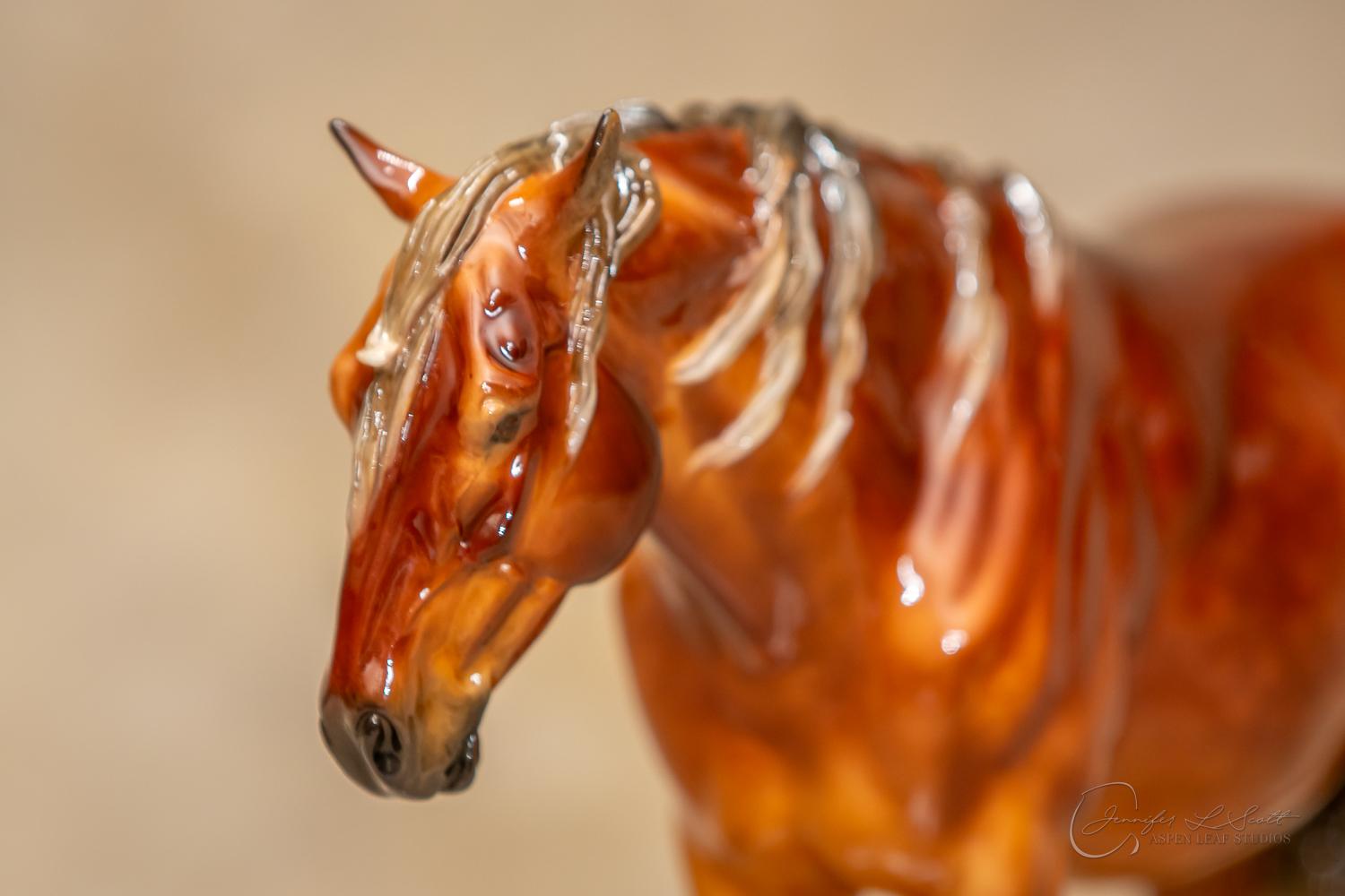 Glossy finish, overglazed dappled silver bay. Finished in 2020.