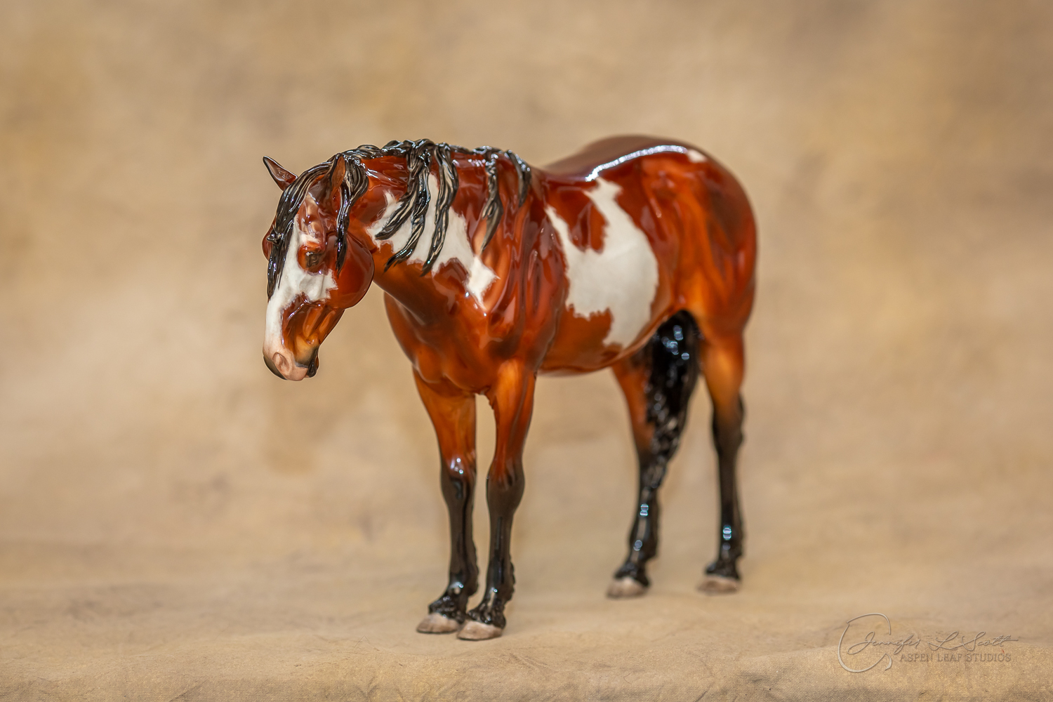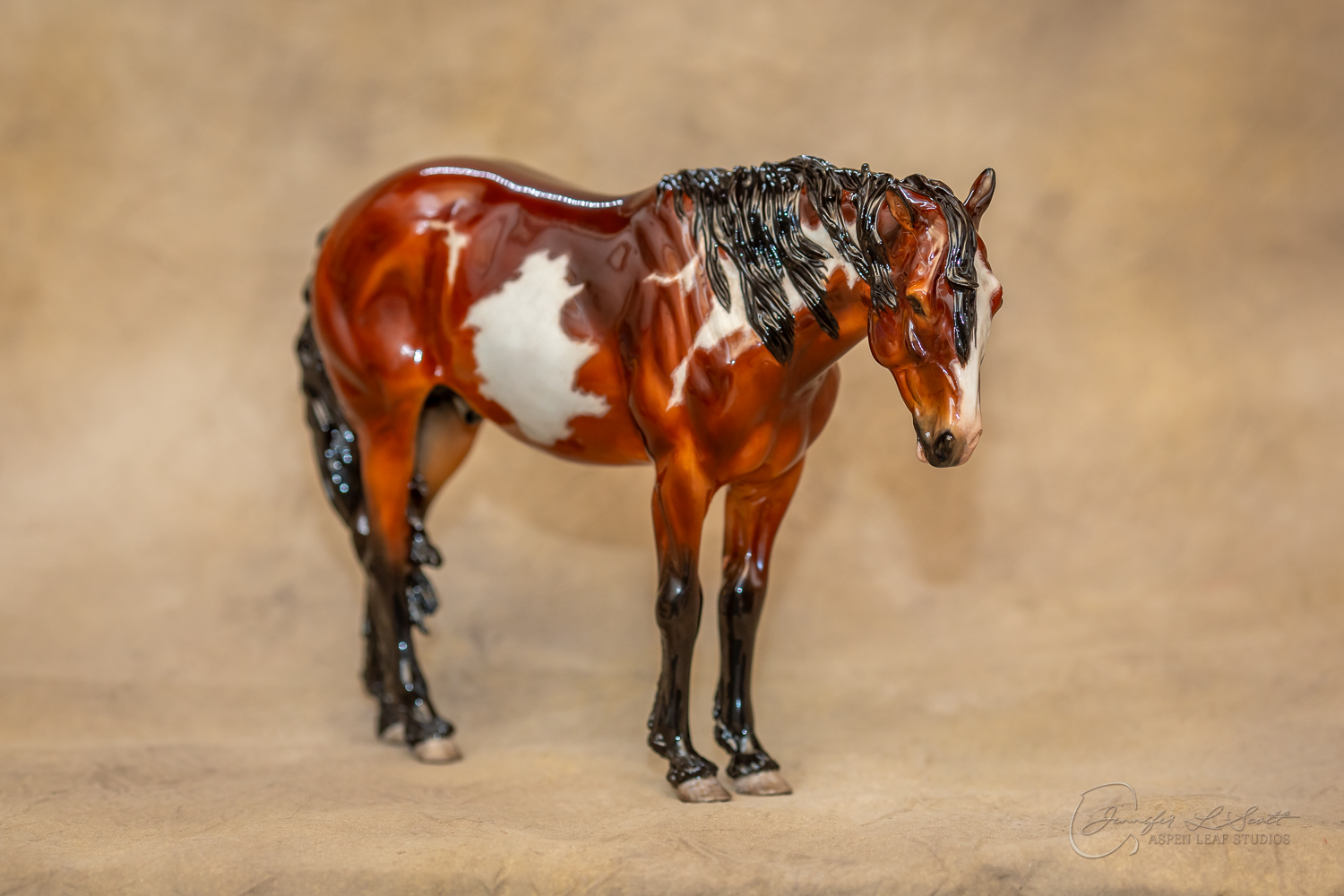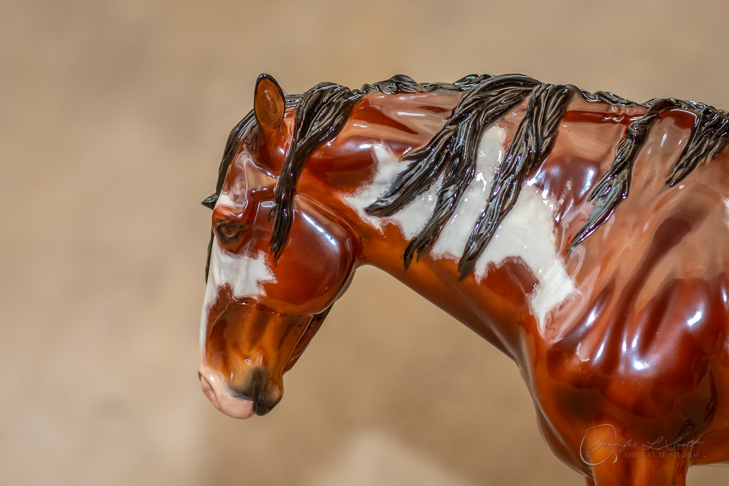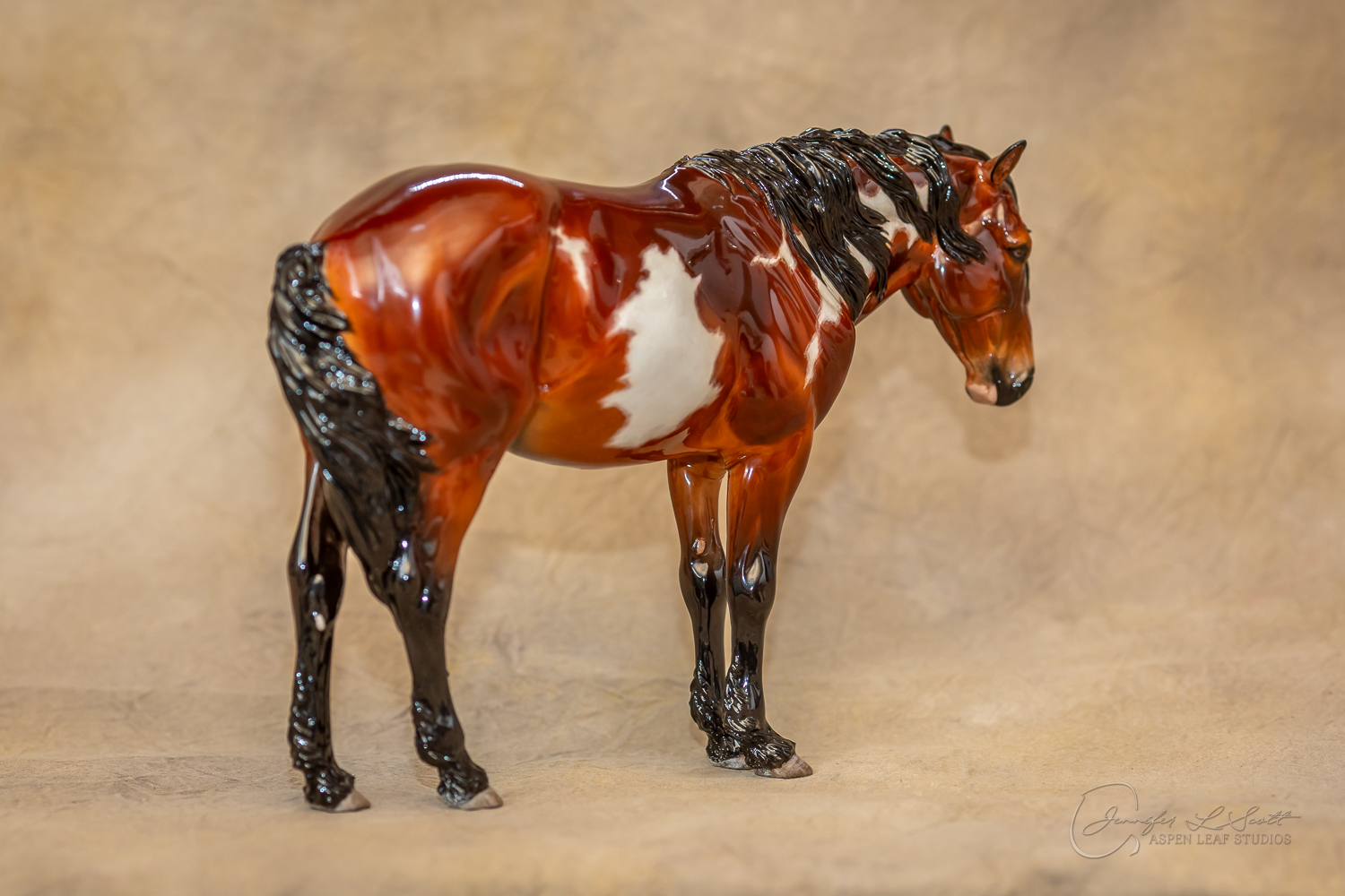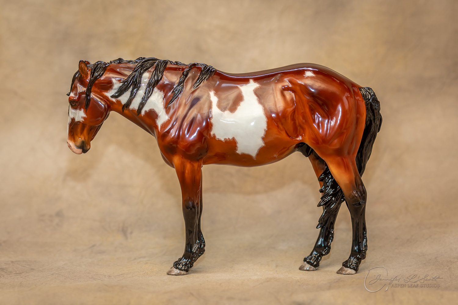 Glossy finish, overglazed bay overo. Finished in 2024.