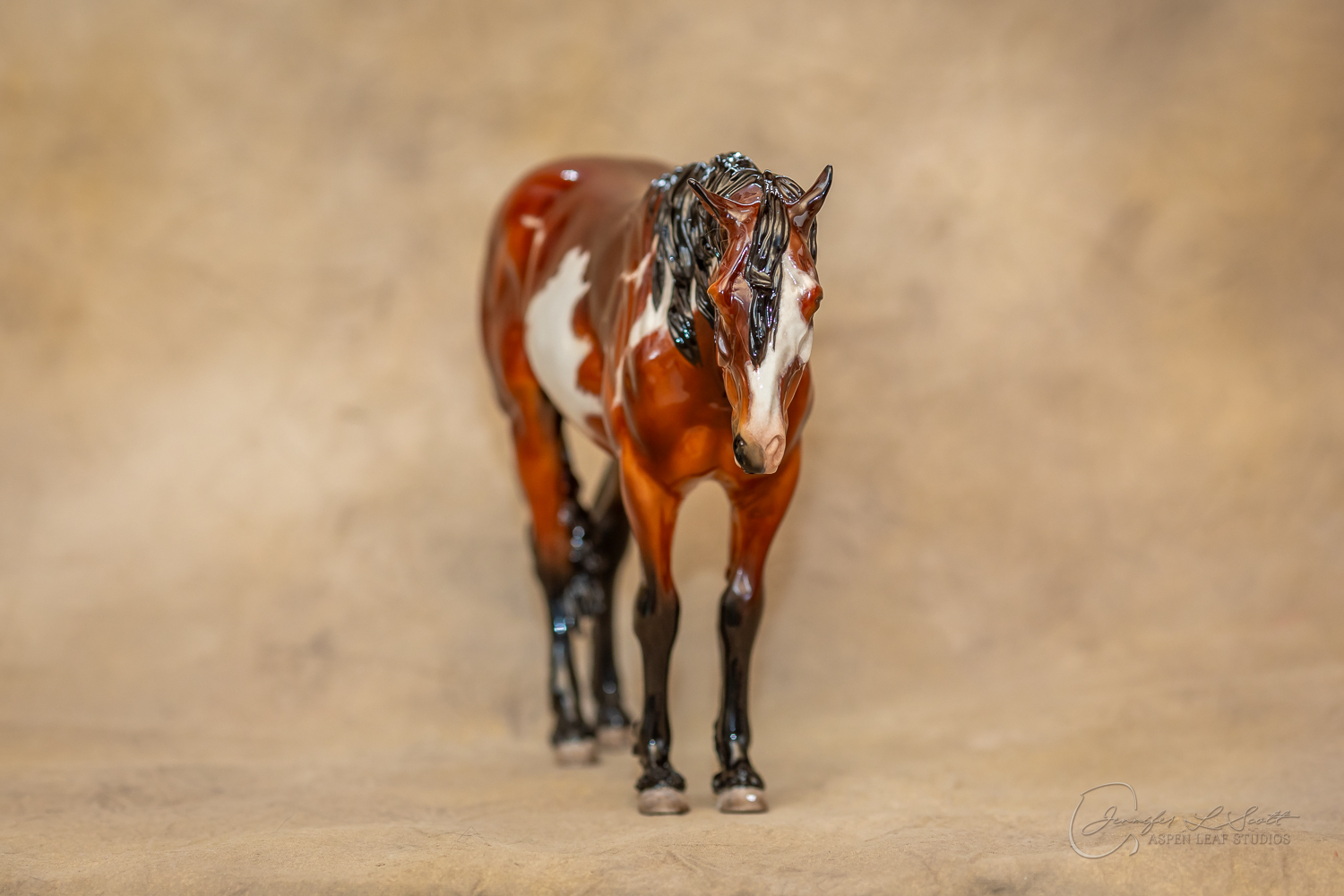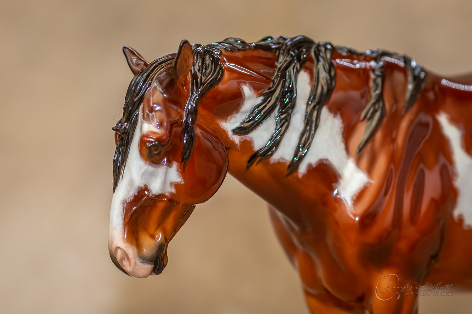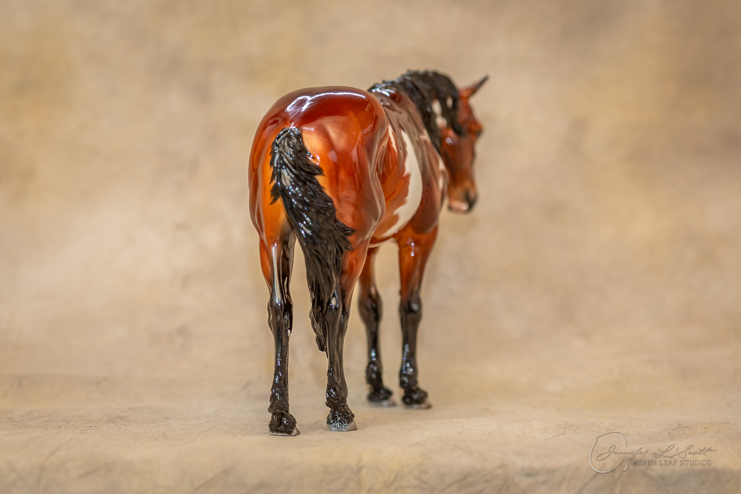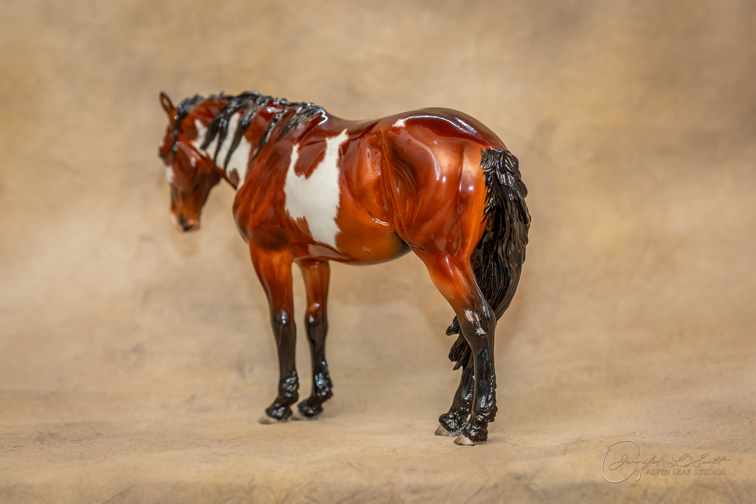 Glossy finish, overglazed bay overo. Finished in 2024.