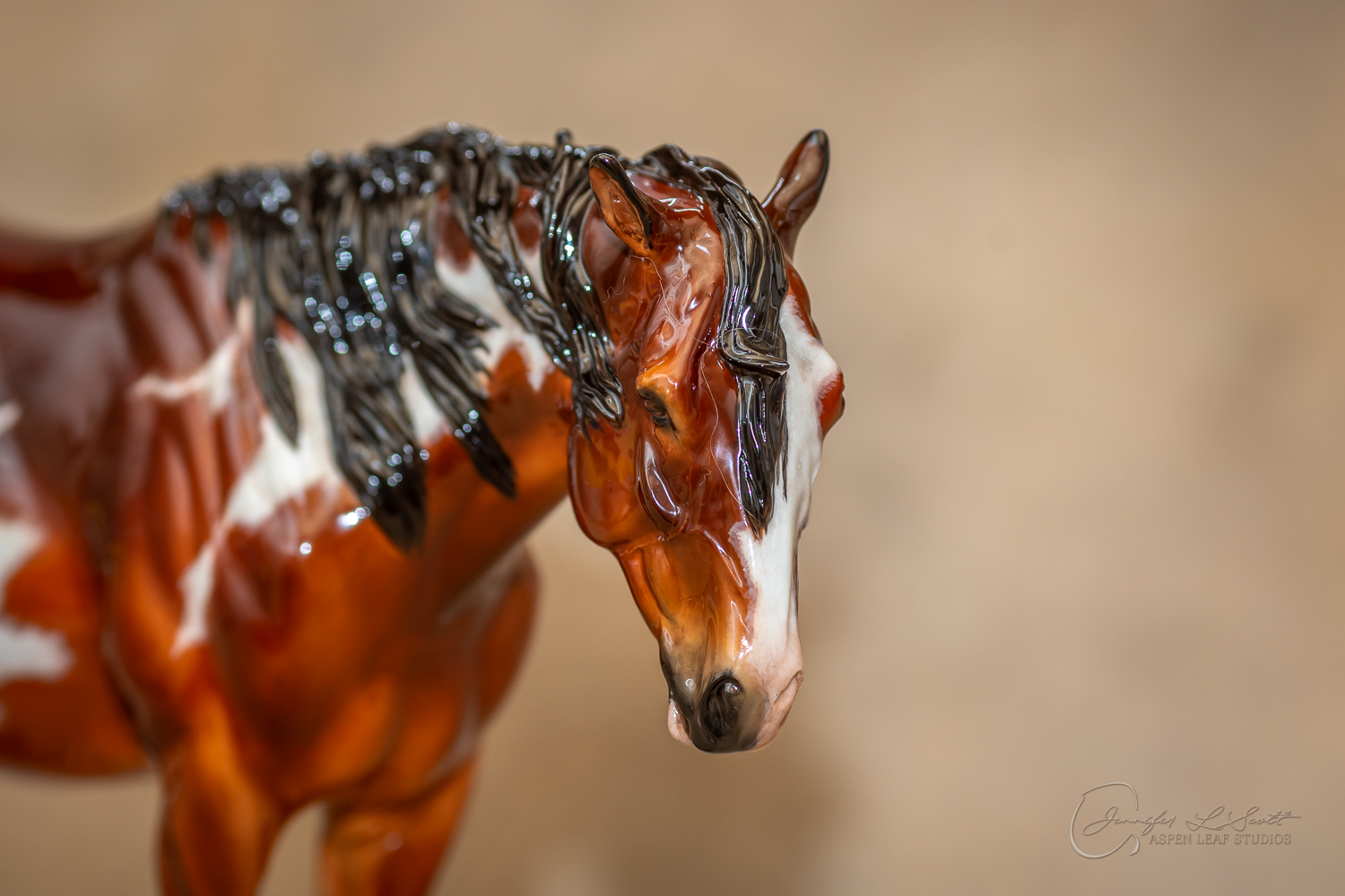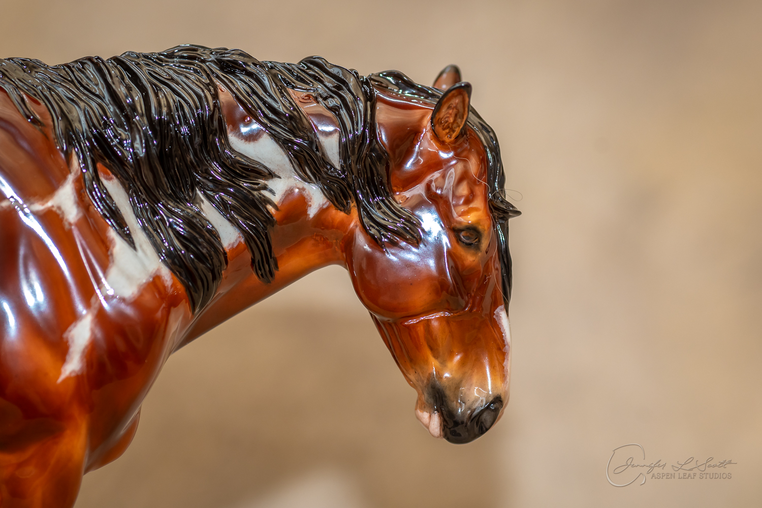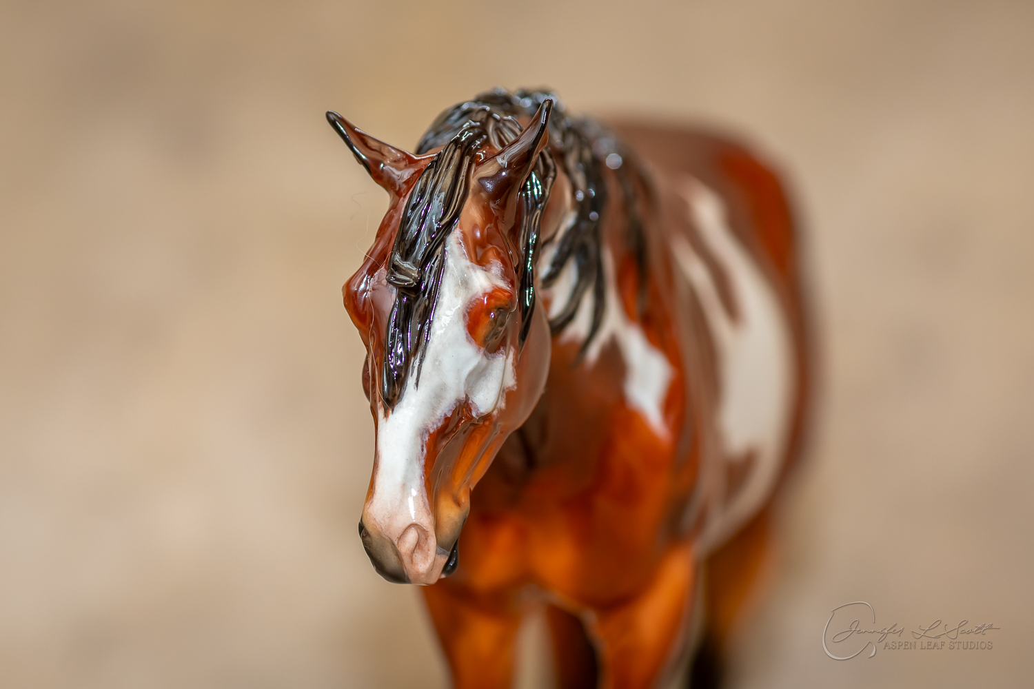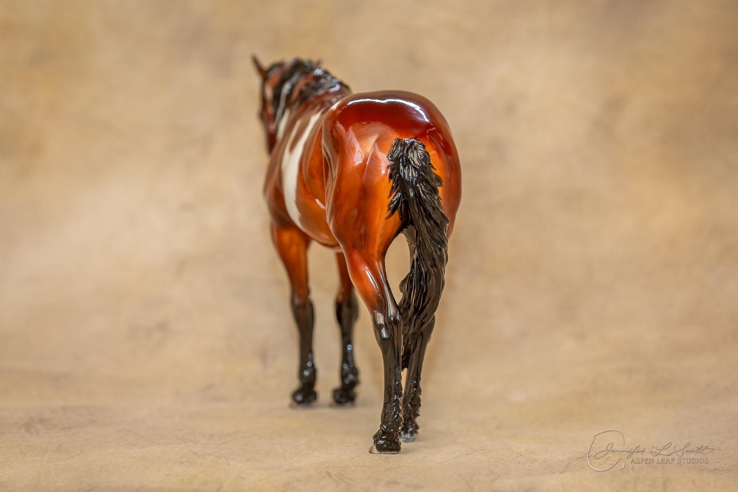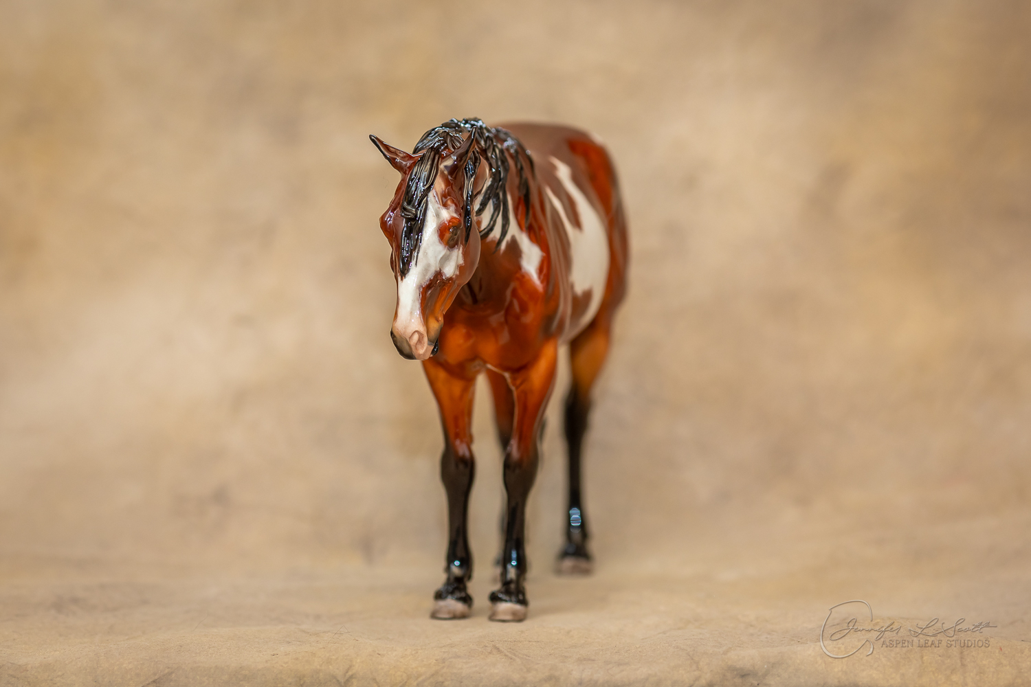 Glossy finish, overglazed bay overo. Finished in 2024.