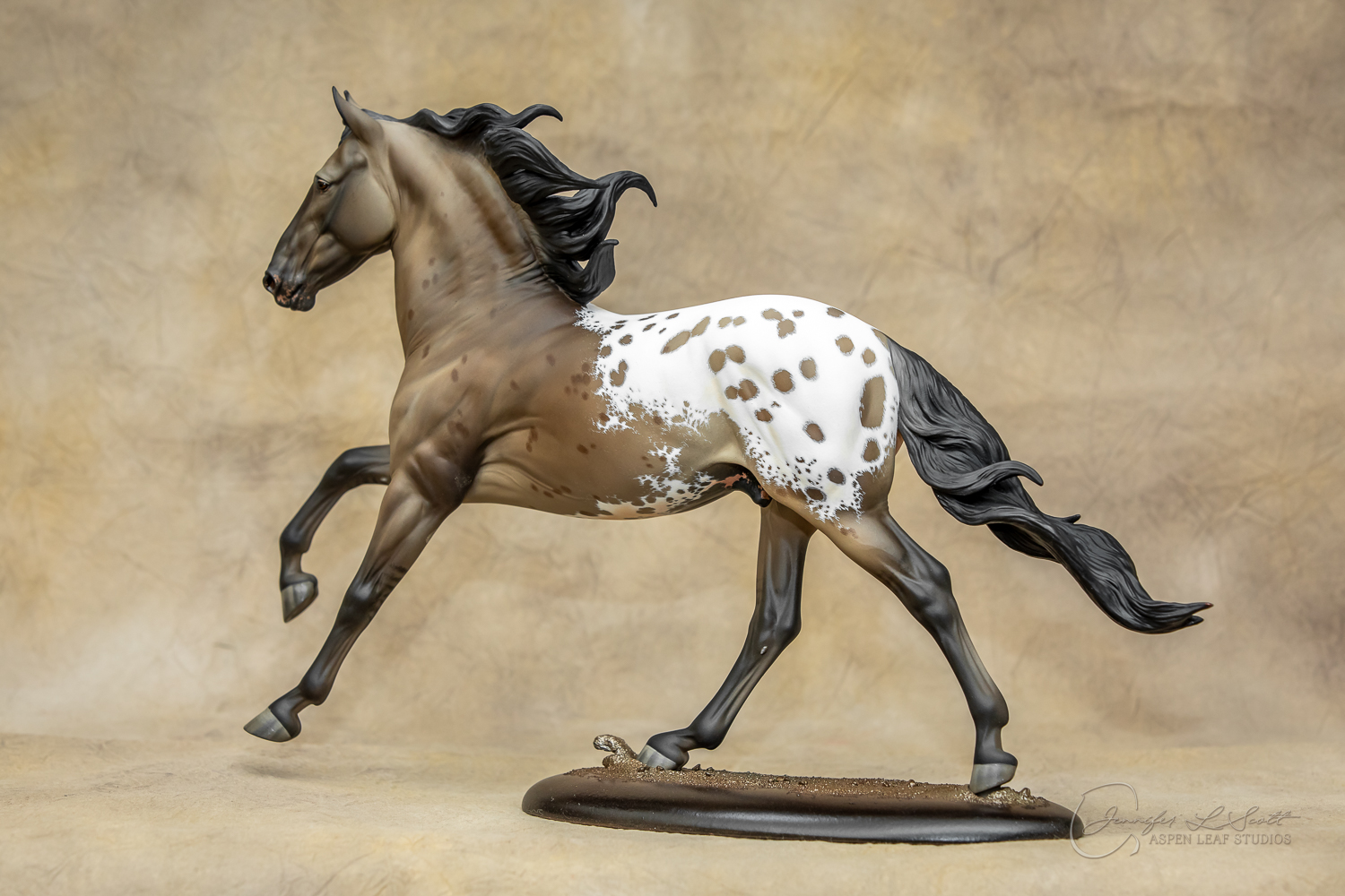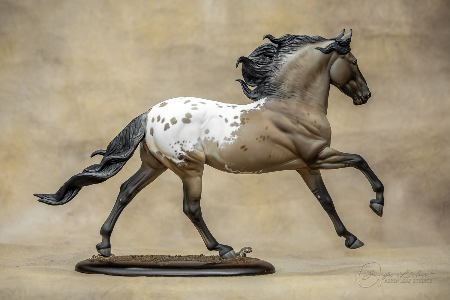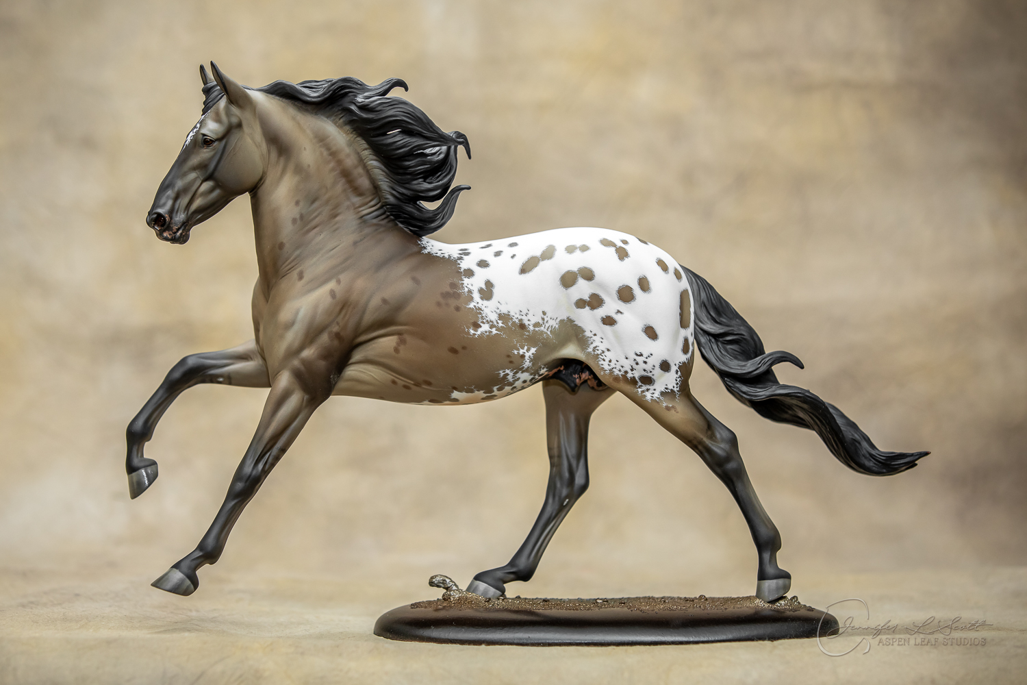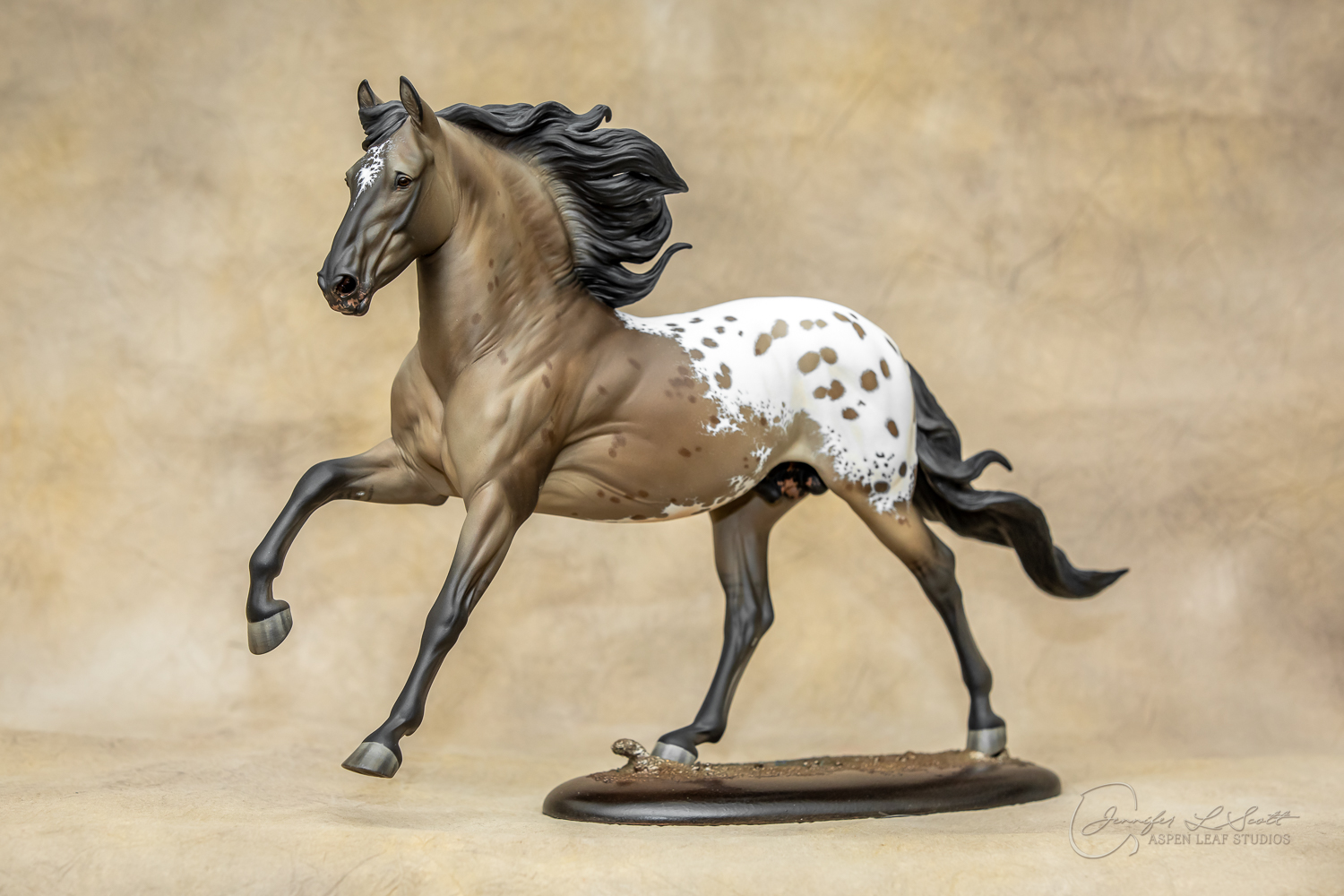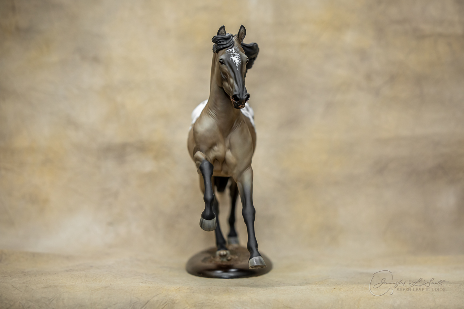 Traditional Scale "Lucius" resin sculpted by Emilia Kurilla painted to grulla blanket appaloosa in 2022.