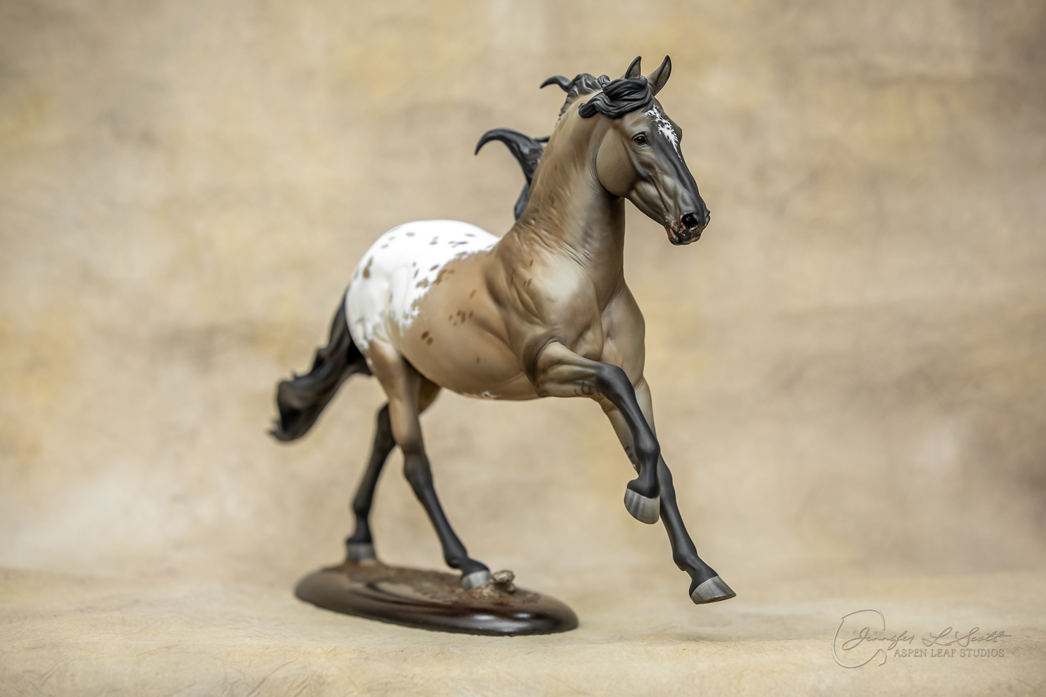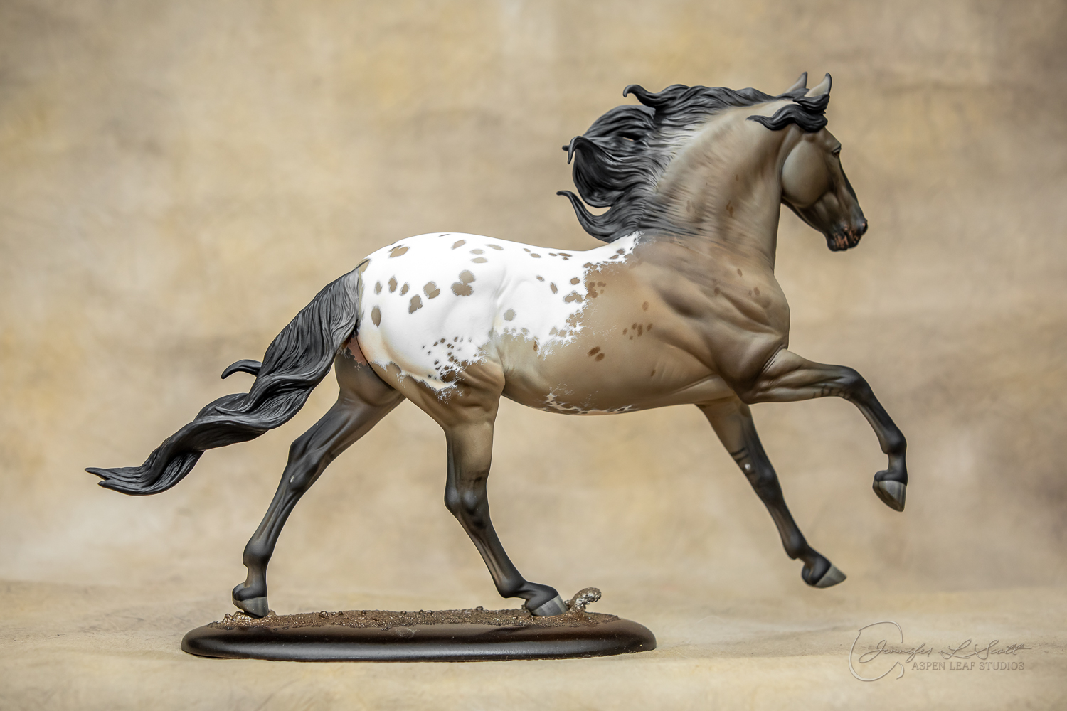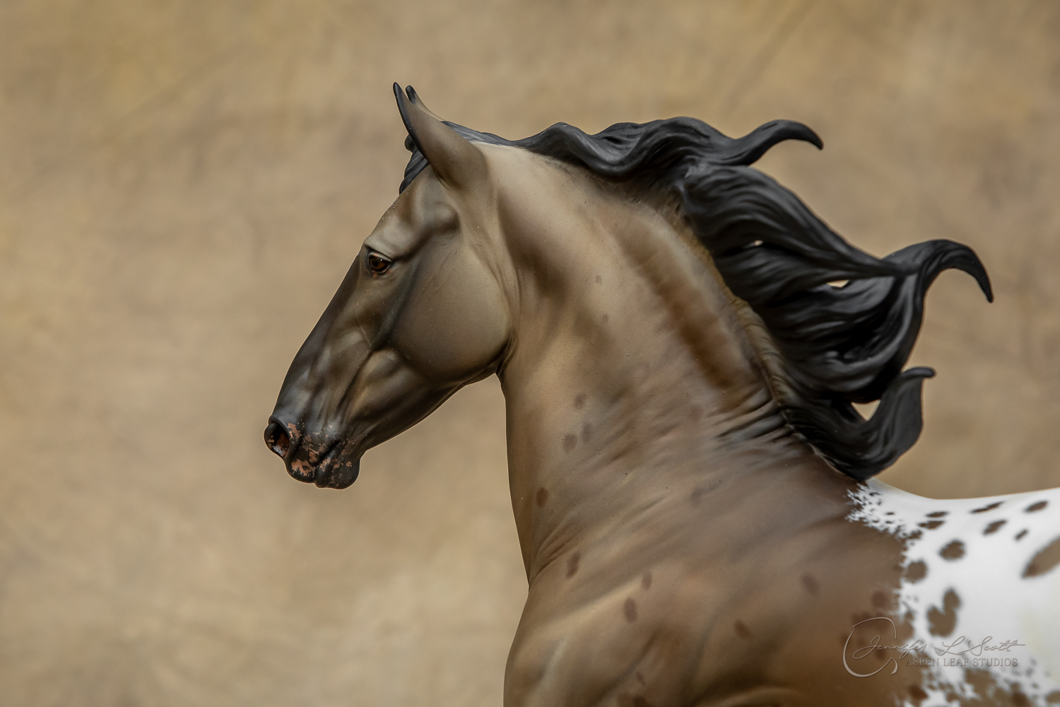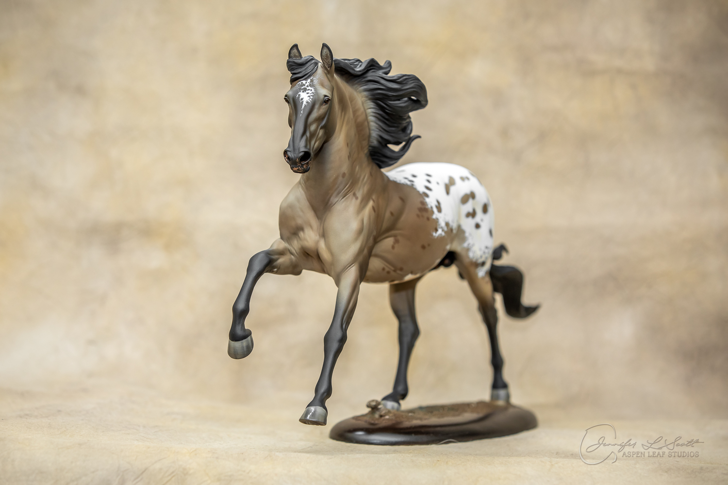 Traditional Scale "Lucius" resin sculpted by Emilia Kurilla painted to grulla blanket appaloosa in 2022.