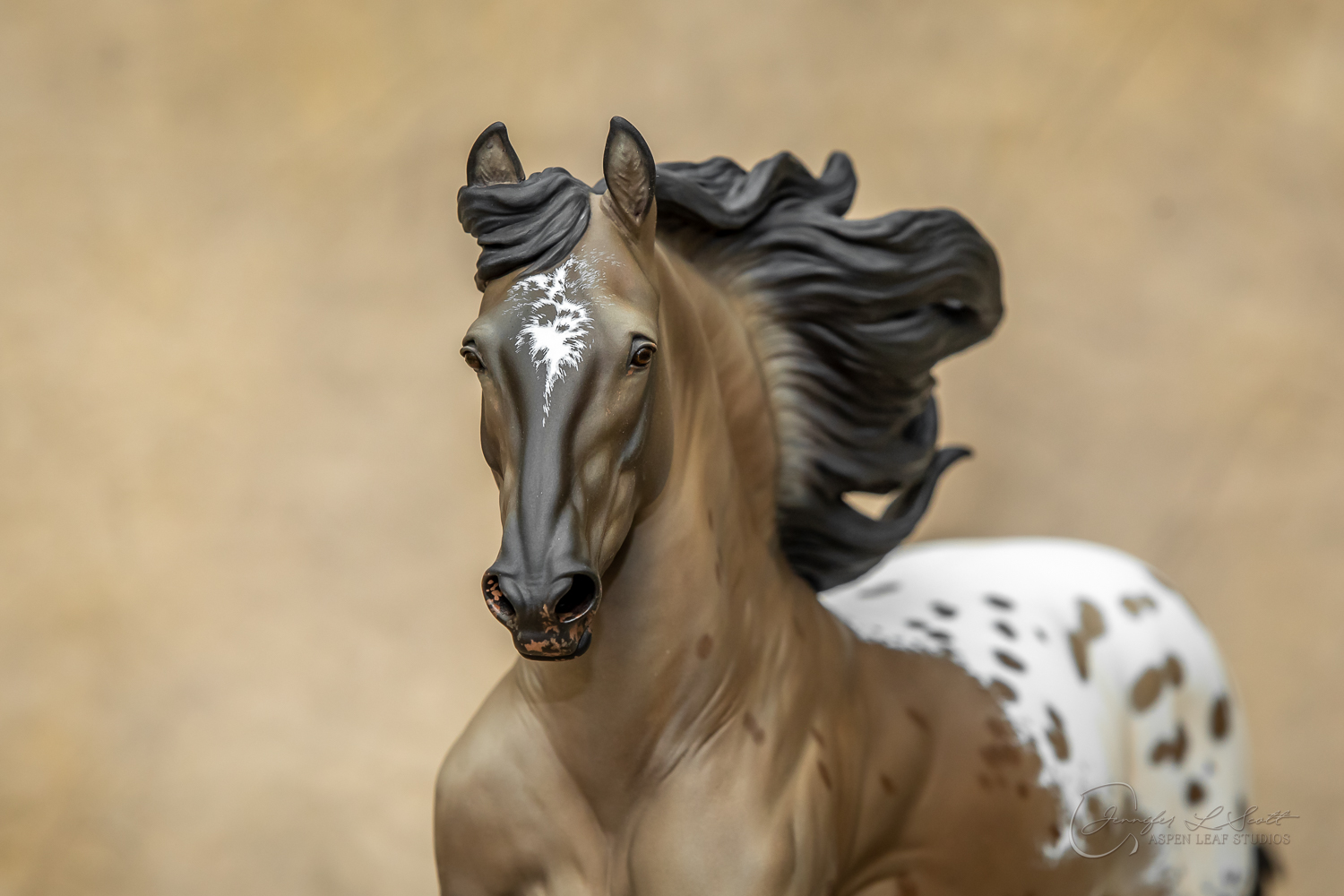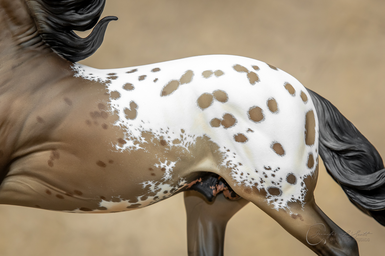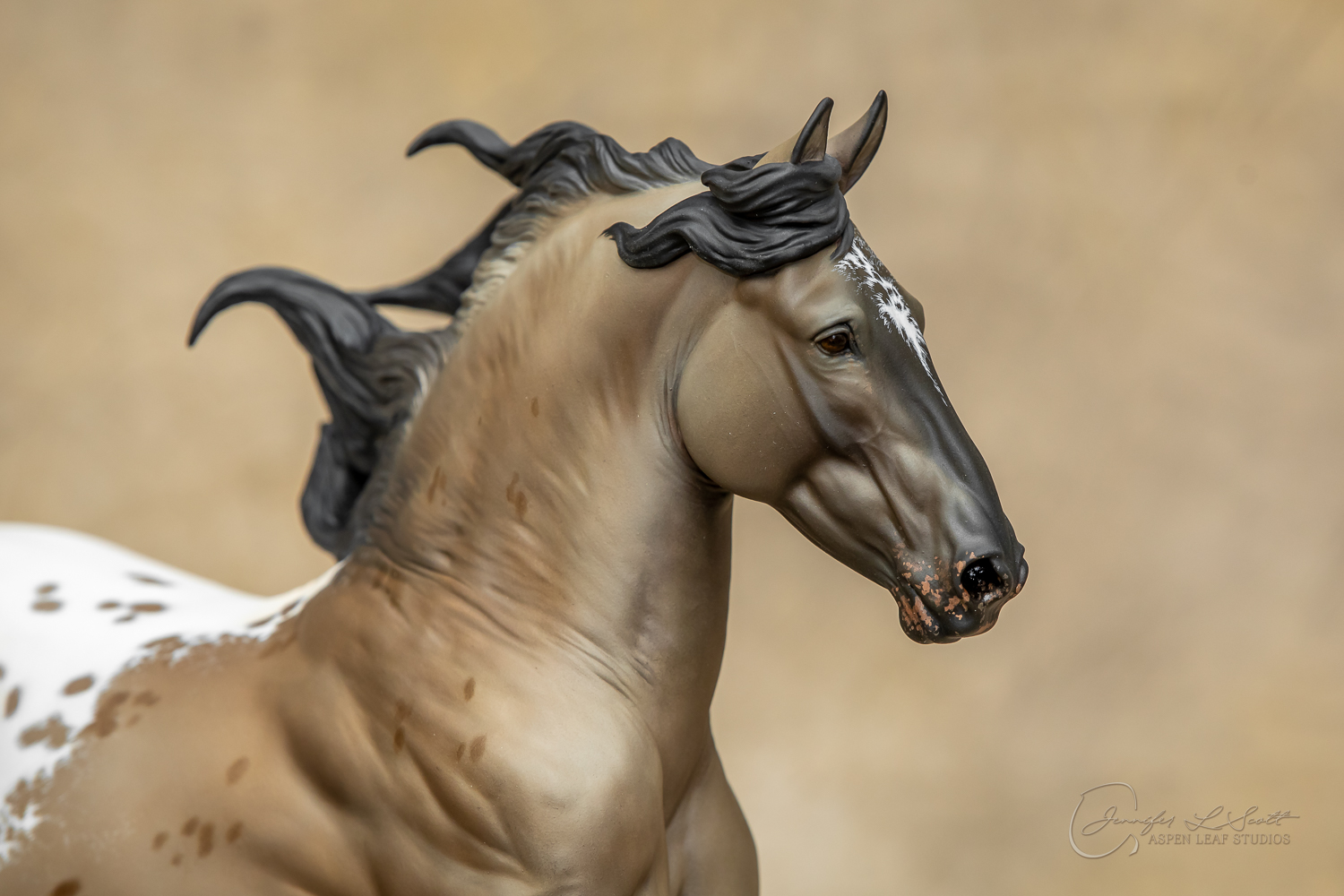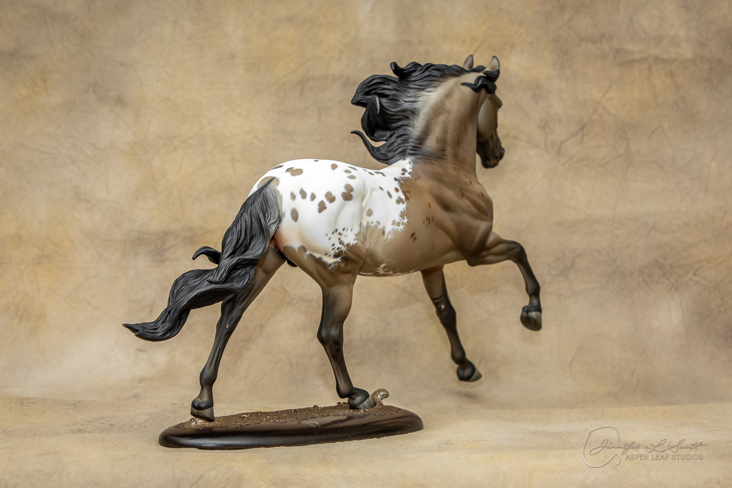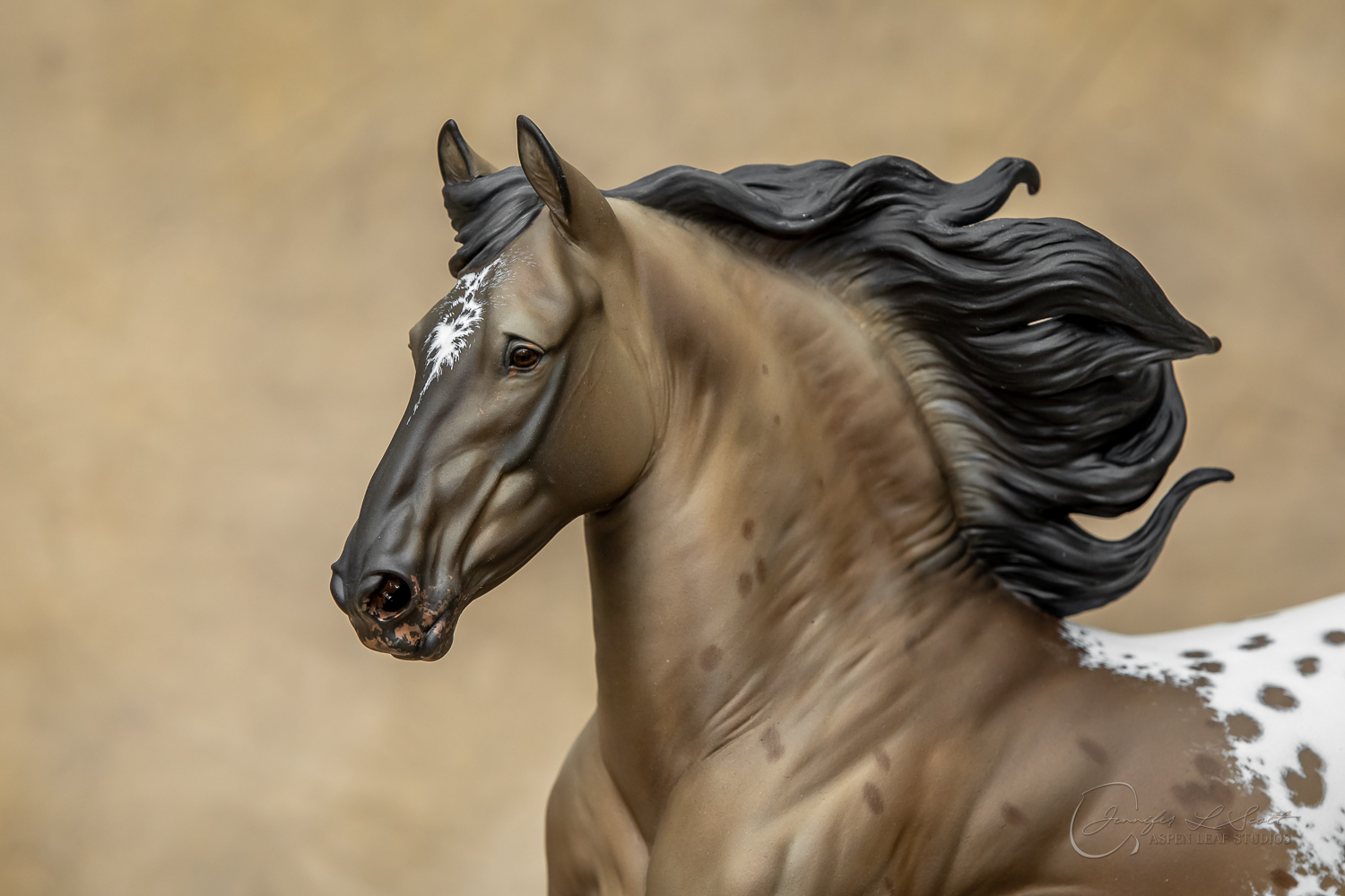 Traditional Scale "Lucius" resin sculpted by Emilia Kurilla painted to grulla blanket appaloosa in 2022.