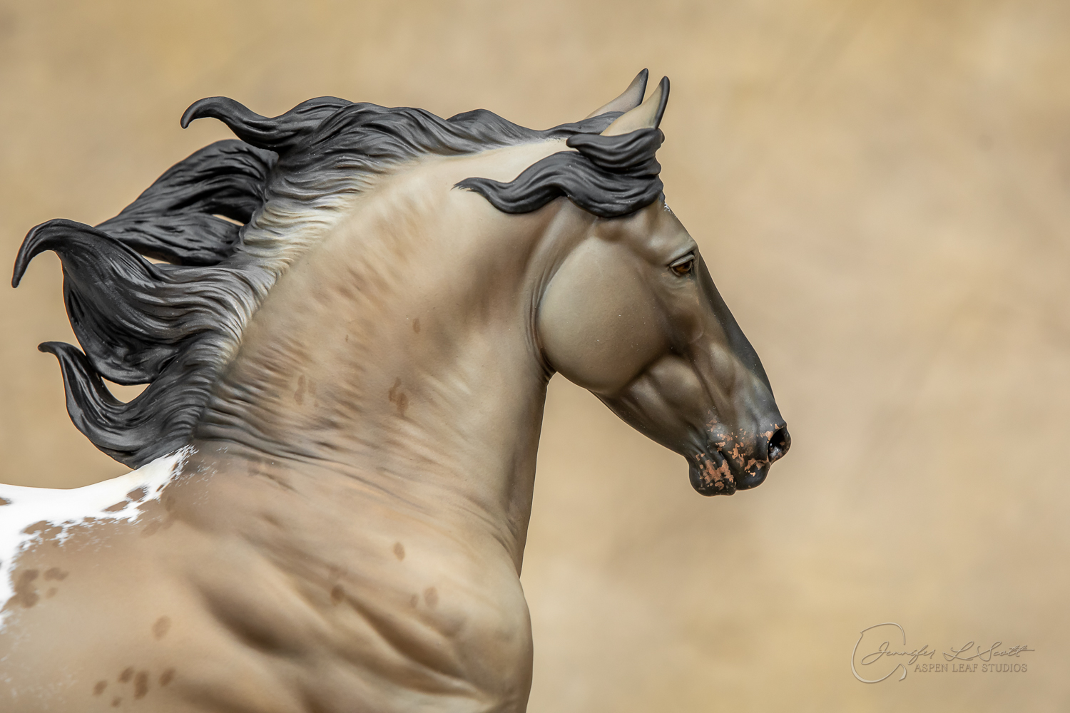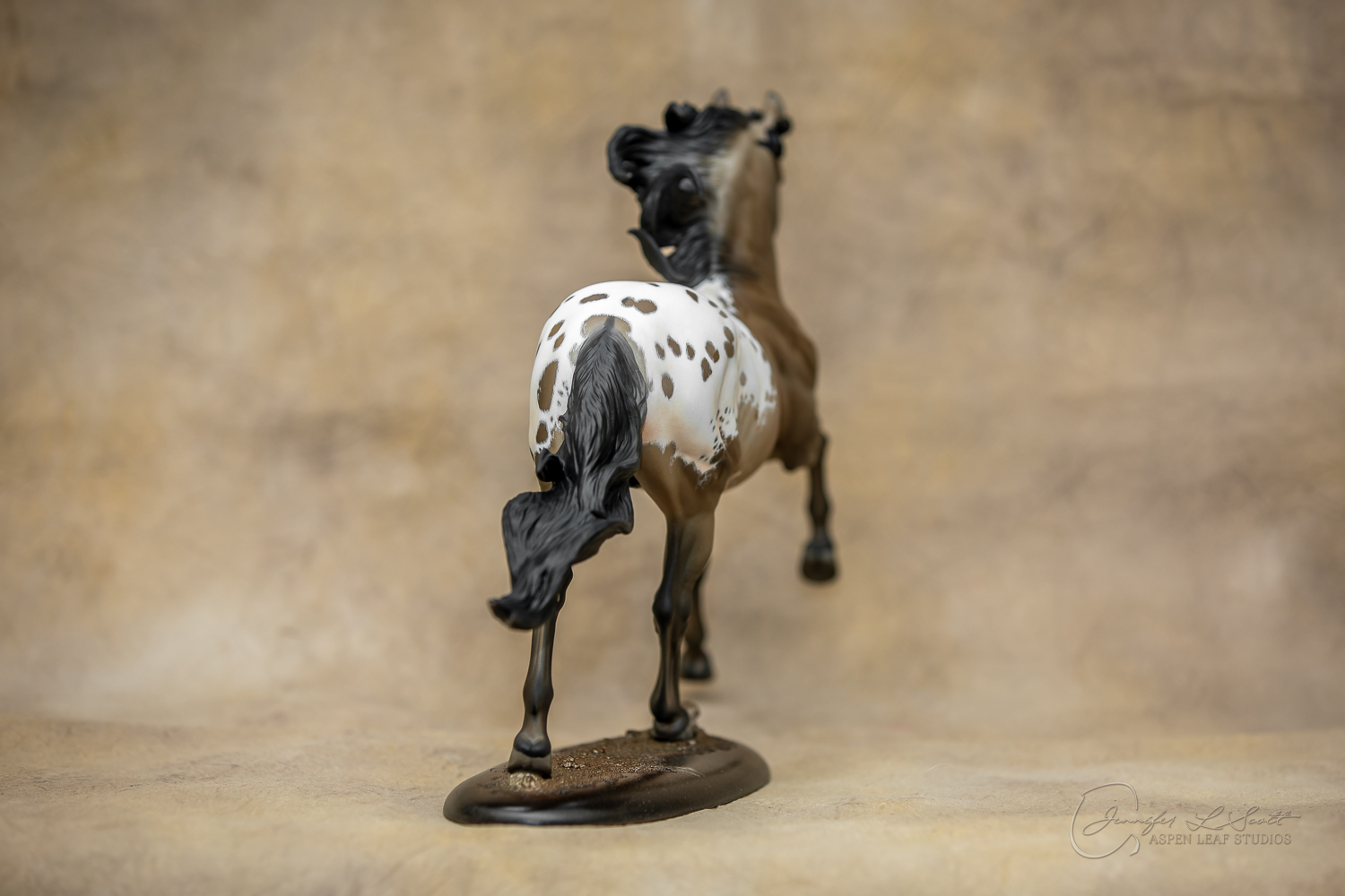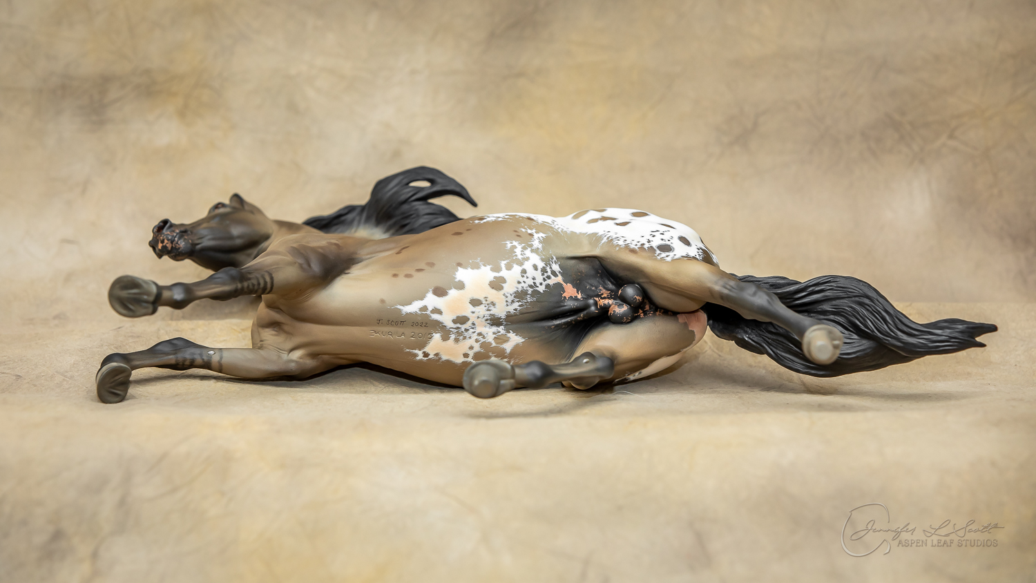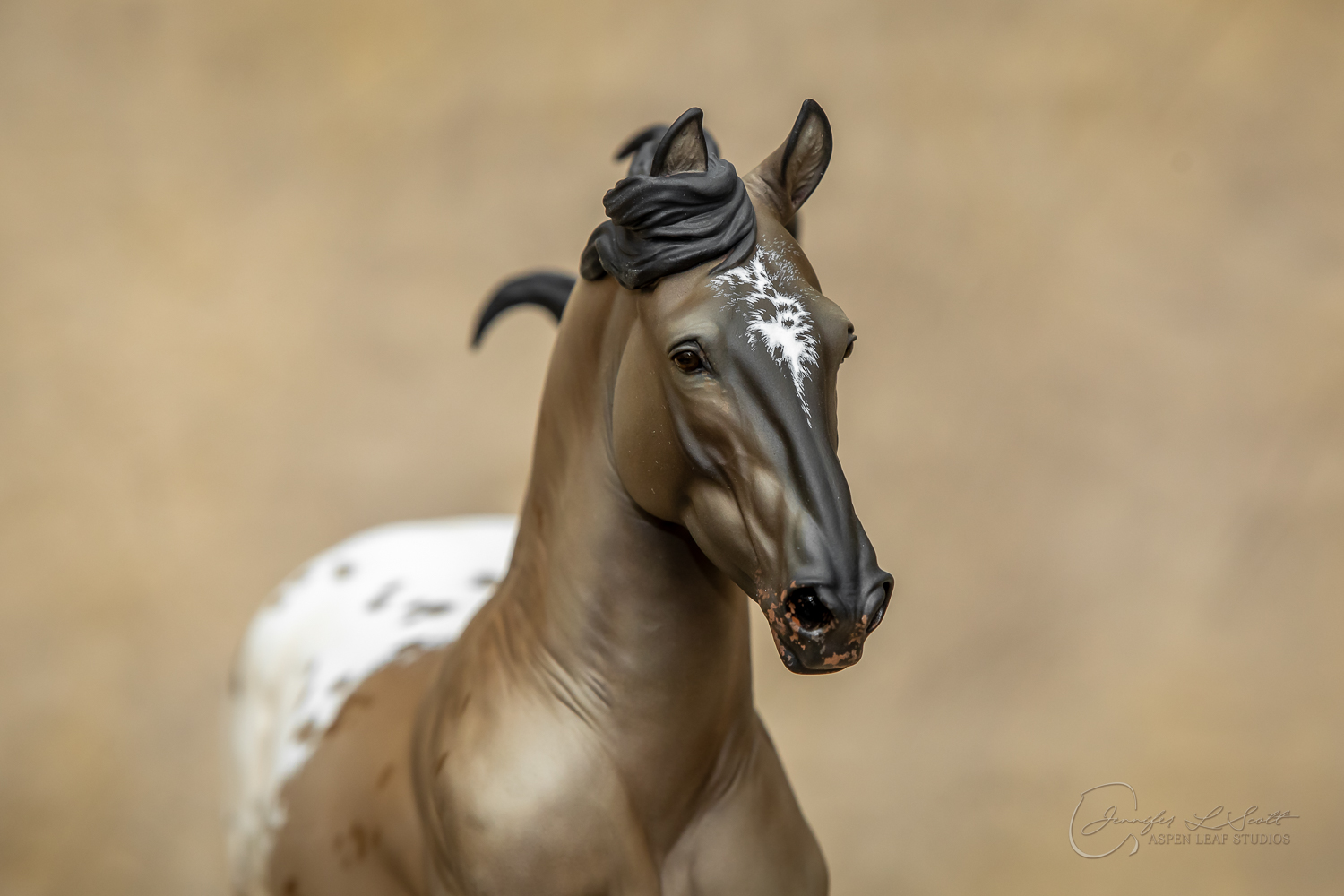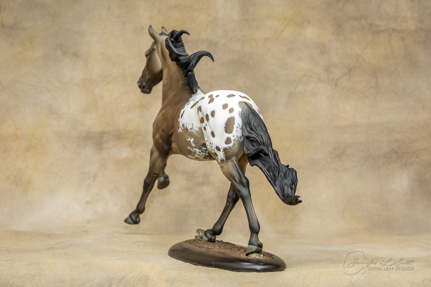 Traditional Scale "Lucius" resin sculpted by Emilia Kurilla painted to grulla blanket appaloosa in 2022.