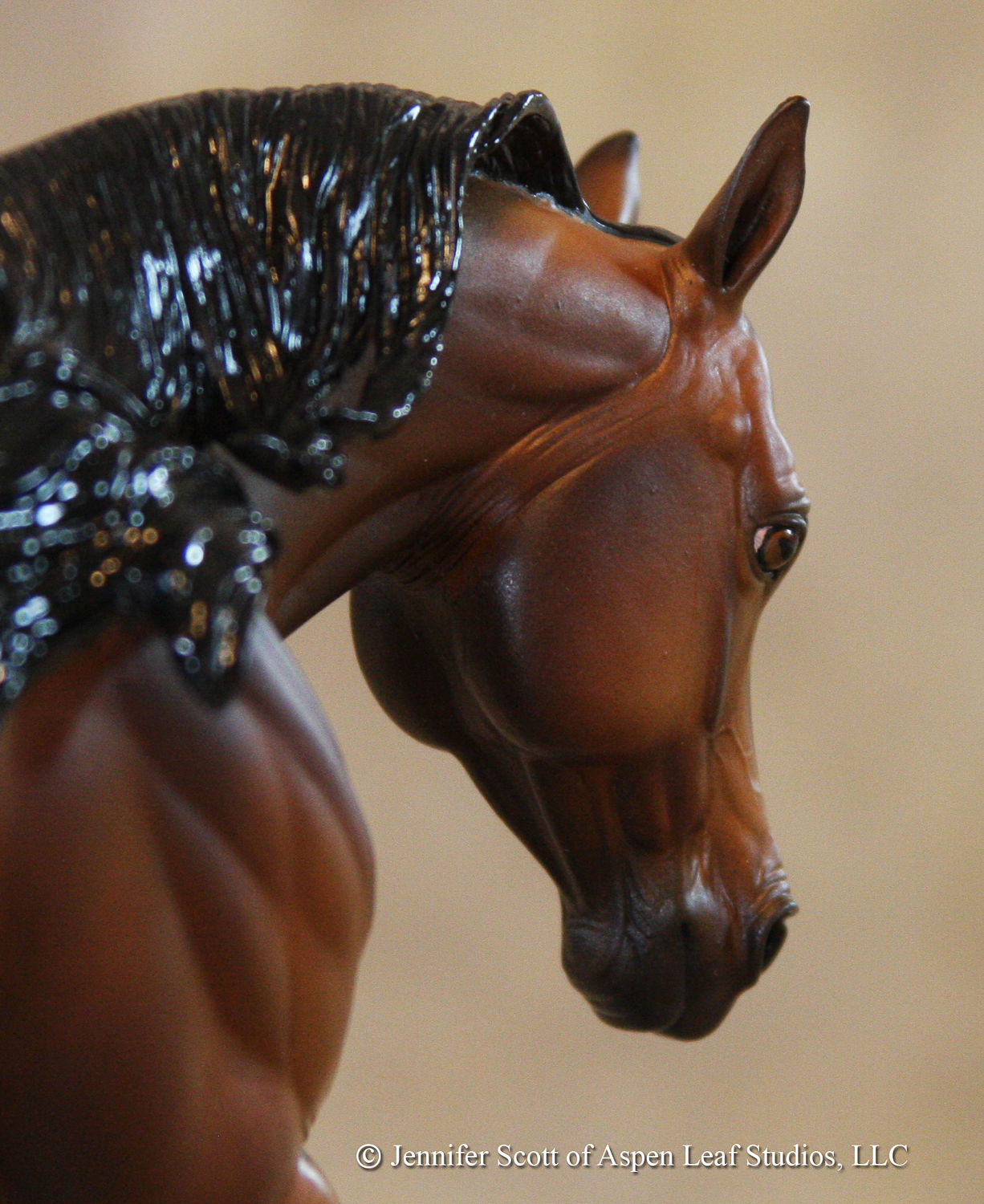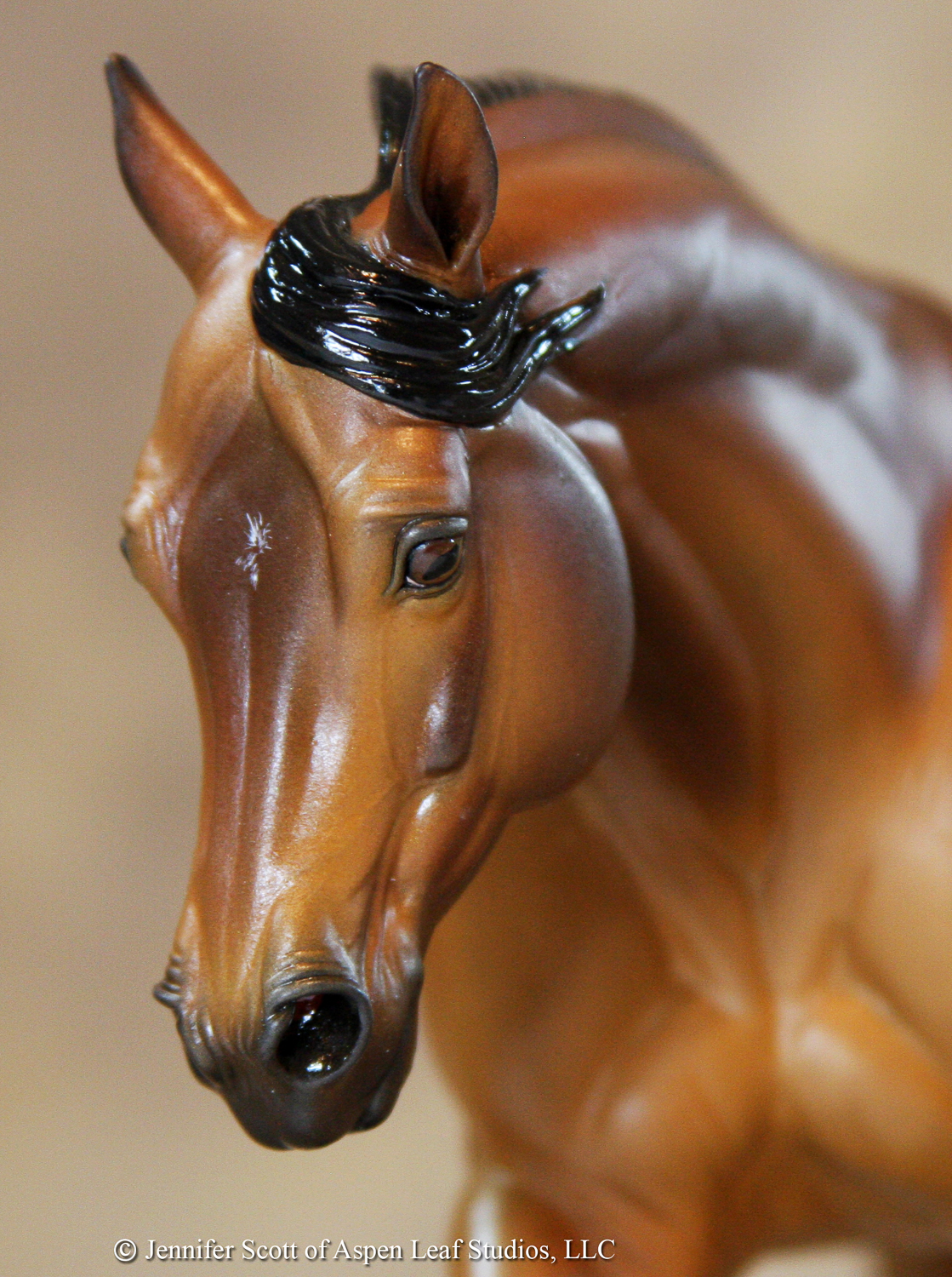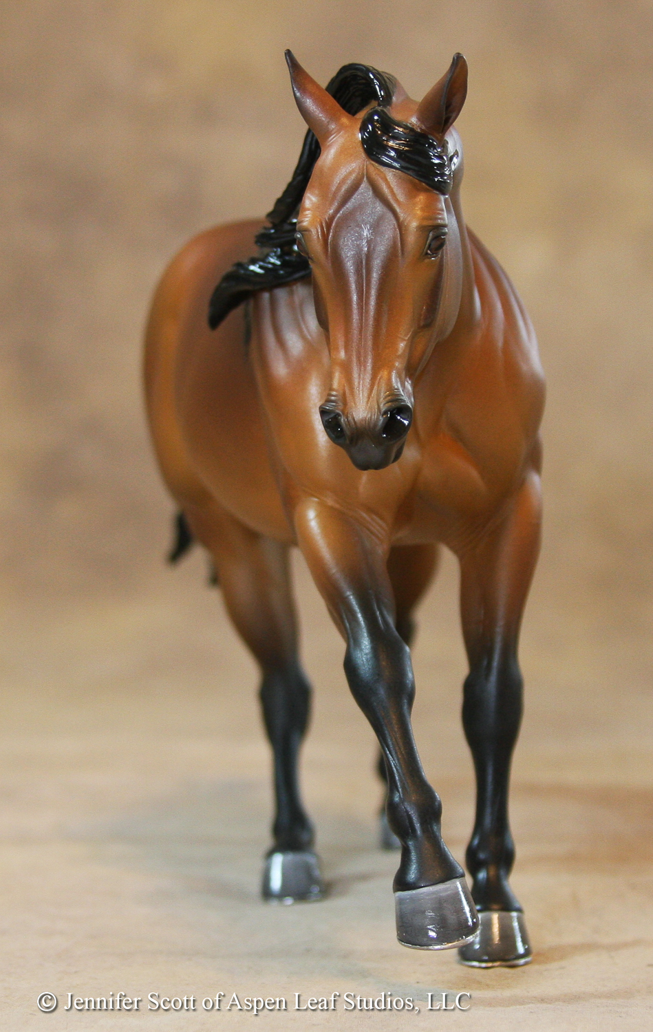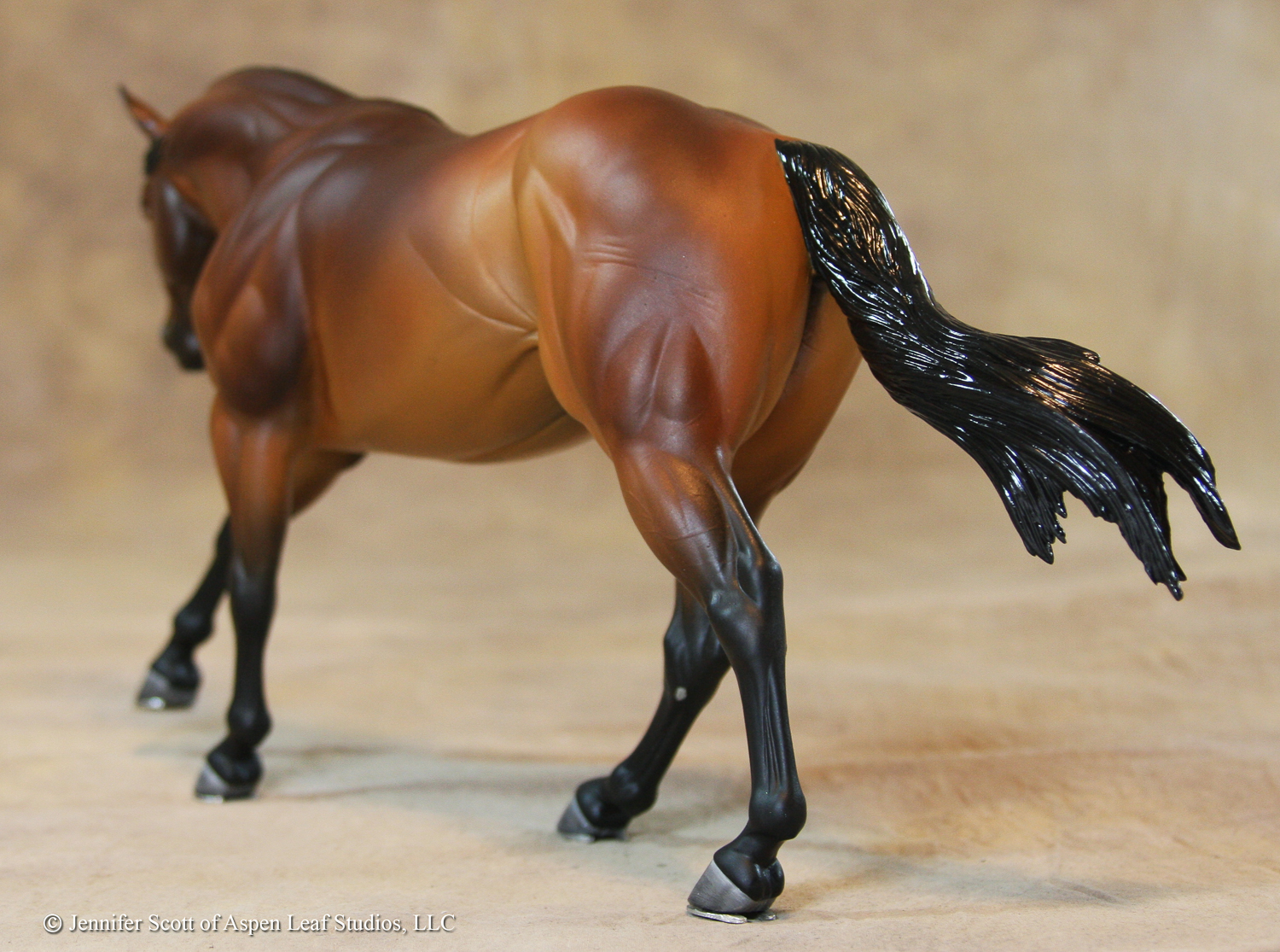 Traditional Scale "Reiner" resin by Sarah Rose painted black in 2013. Piece was also customized to stand off-base and metal shoes (sliders on back) were applied to complete the reining horse appearance.