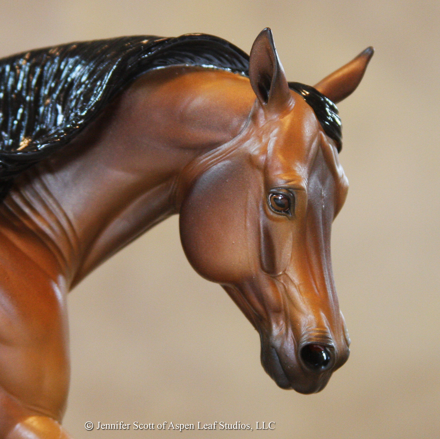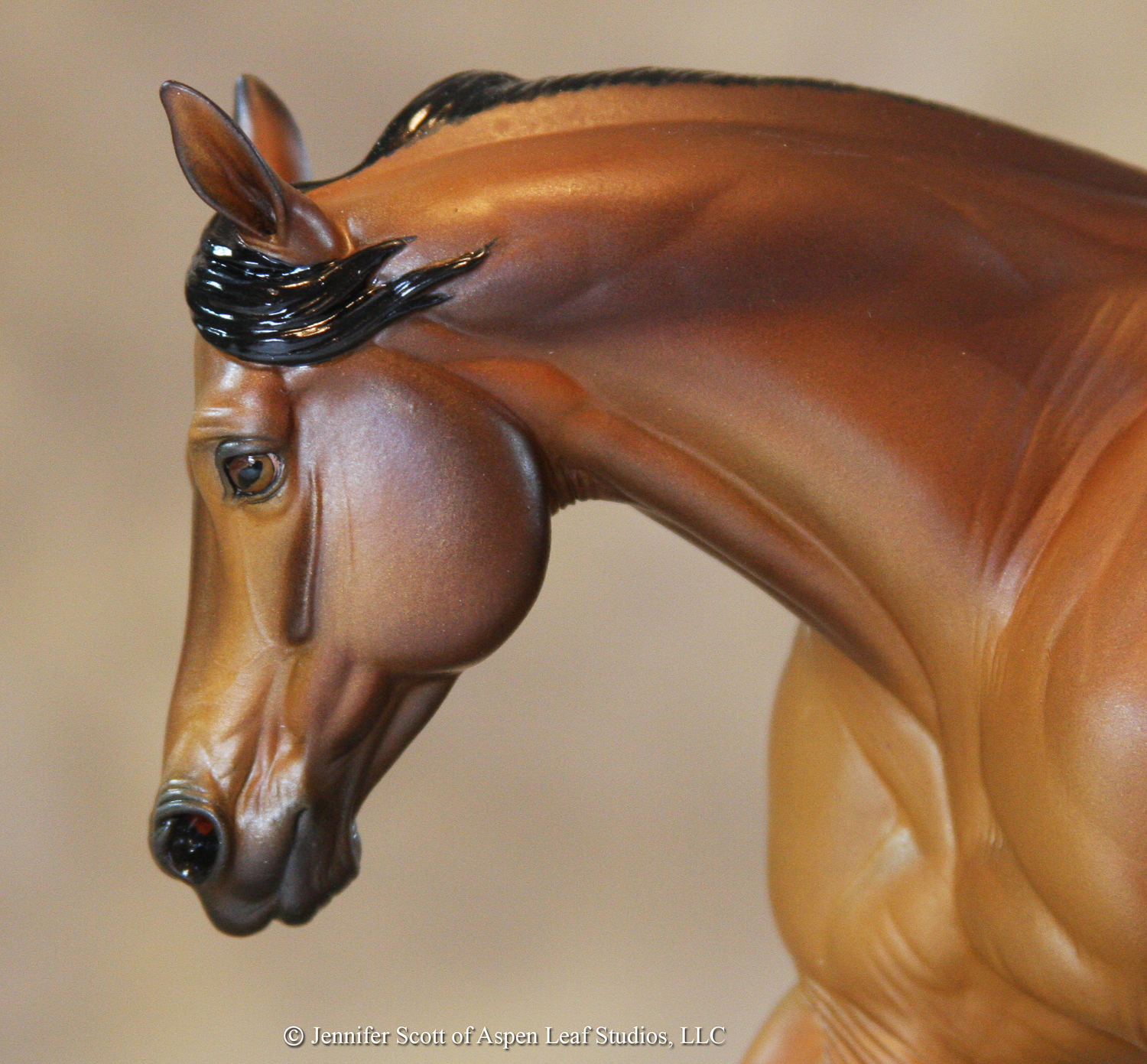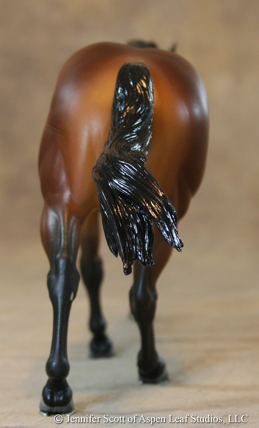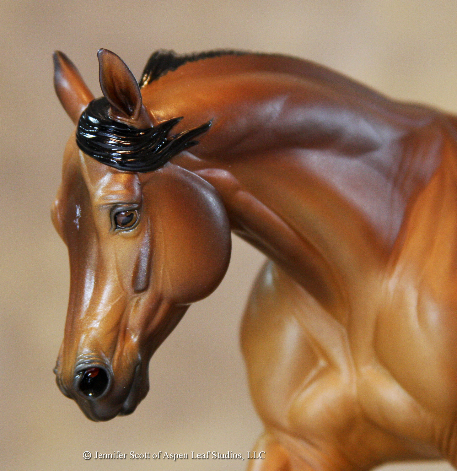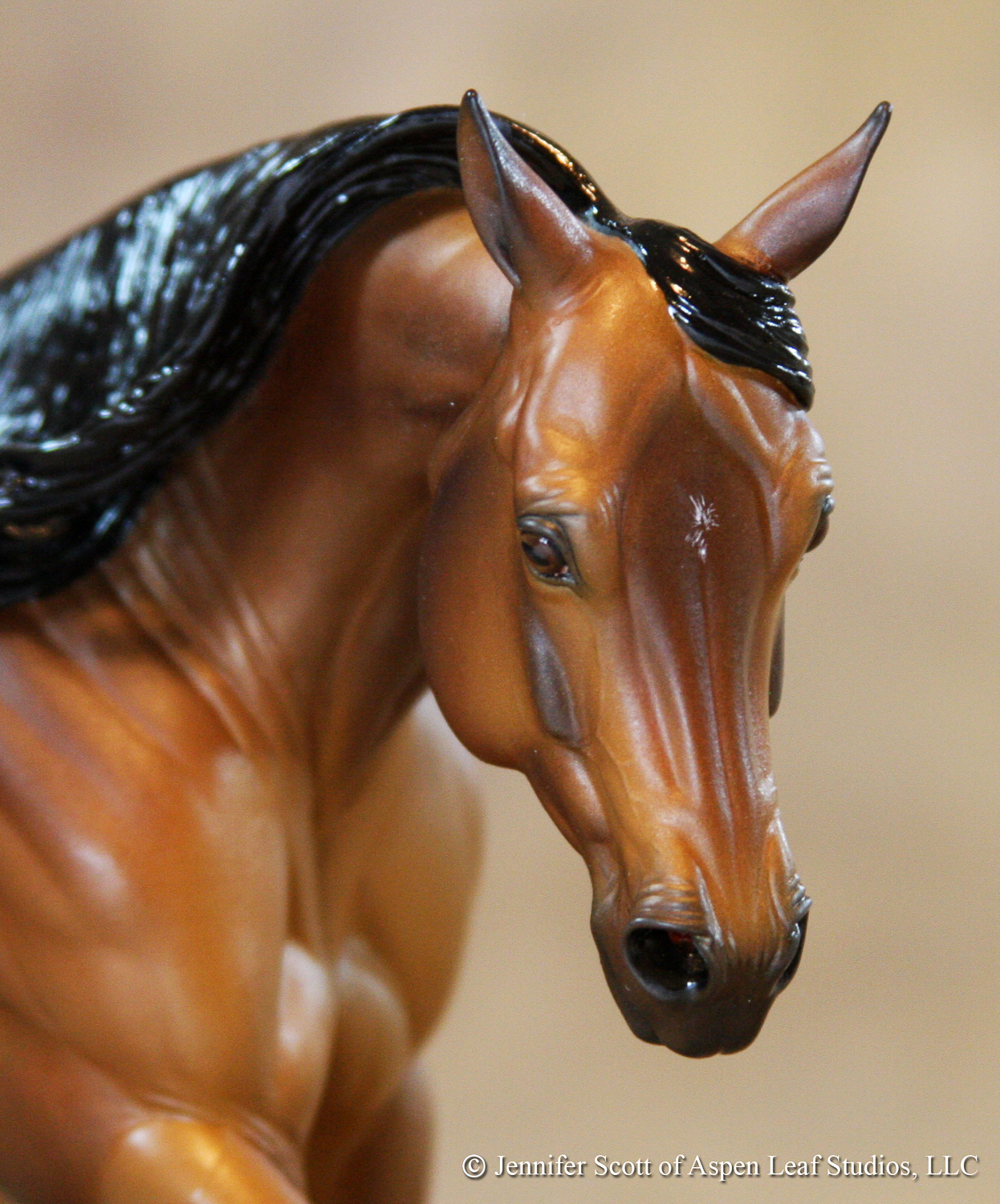 Traditional Scale "Reiner" resin by Sarah Rose painted black in 2013. Piece was also customized to stand off-base and metal shoes (sliders on back) were applied to complete the reining horse appearance.