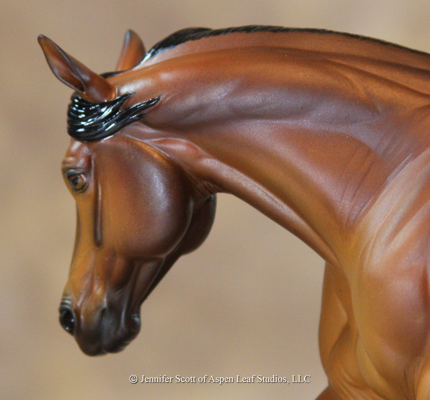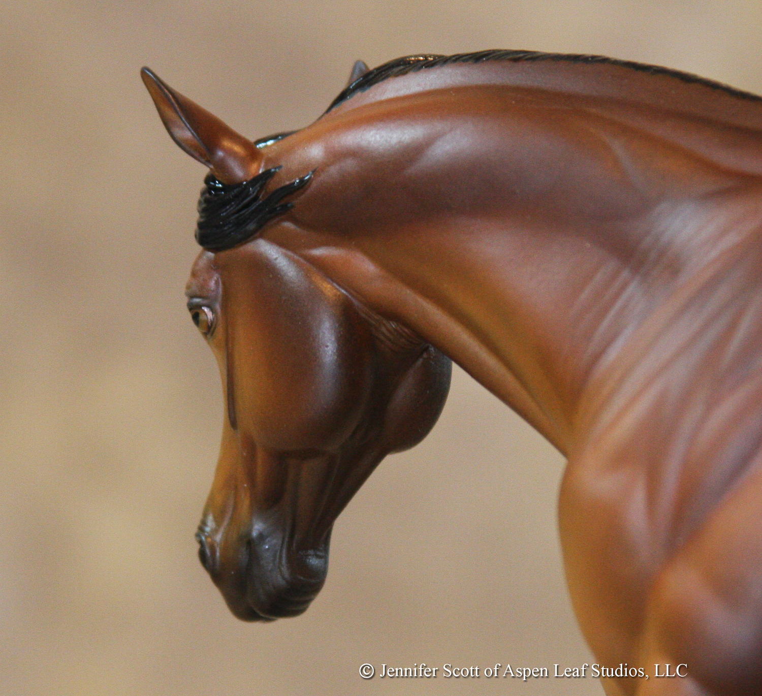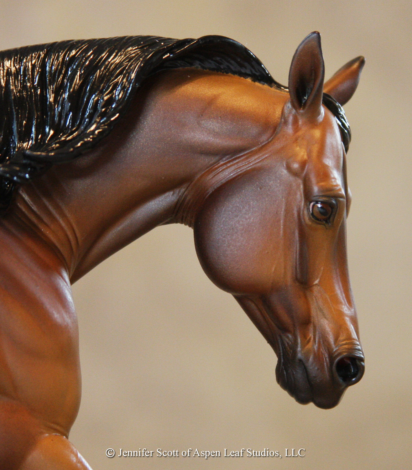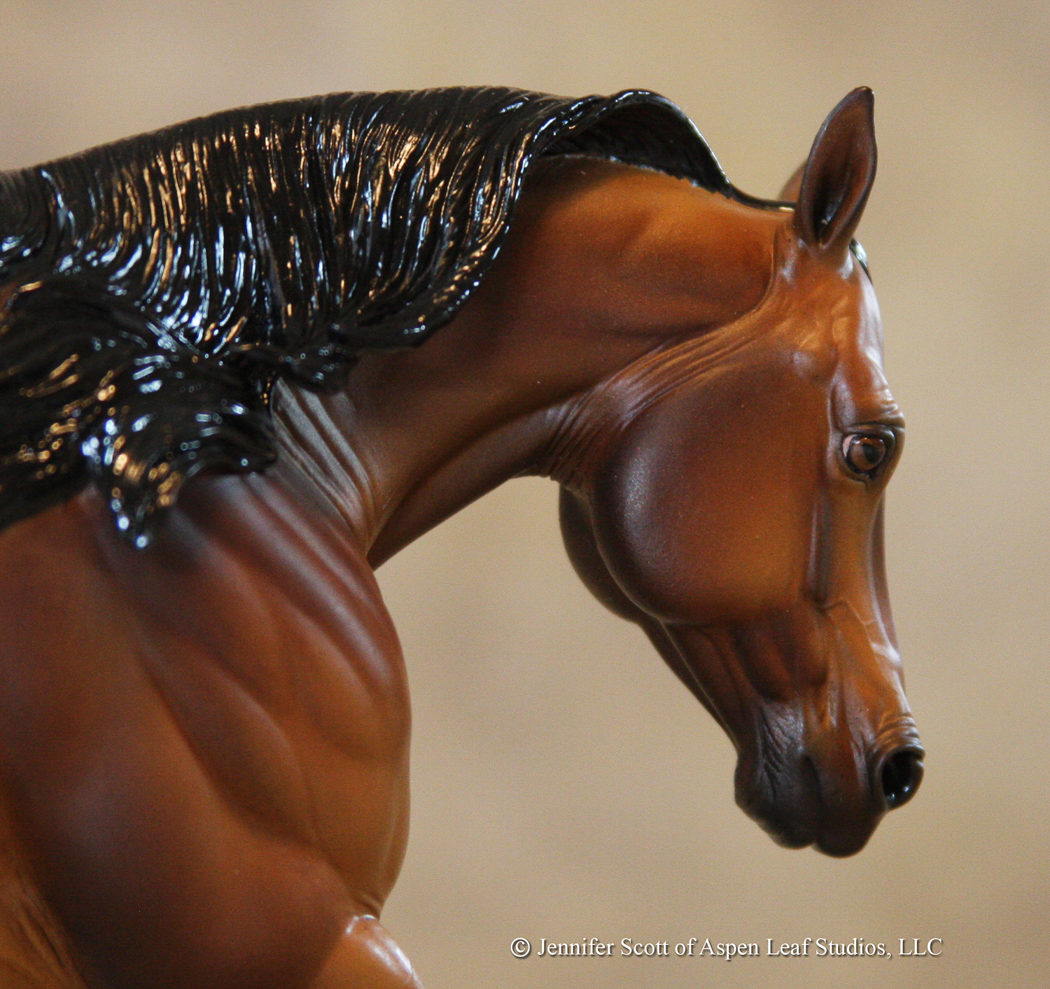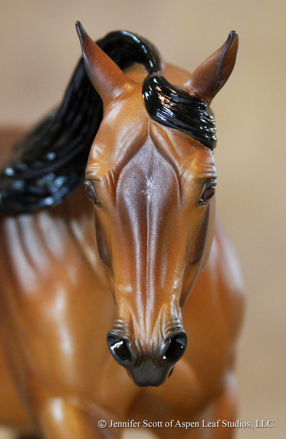 Traditional Scale "Reiner" resin by Sarah Rose painted black in 2013. Piece was also customized to stand off-base and metal shoes (sliders on back) were applied to complete the reining horse appearance.