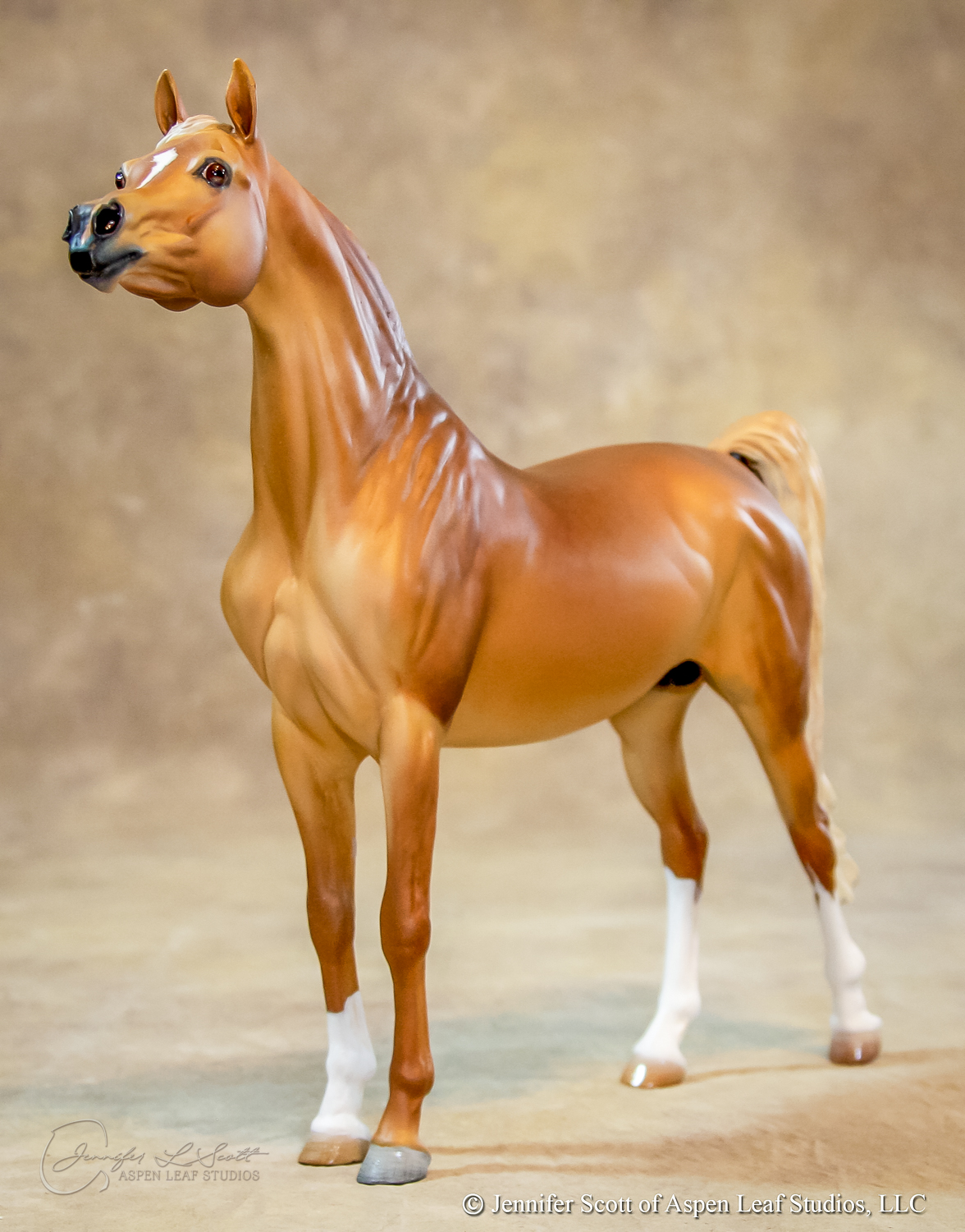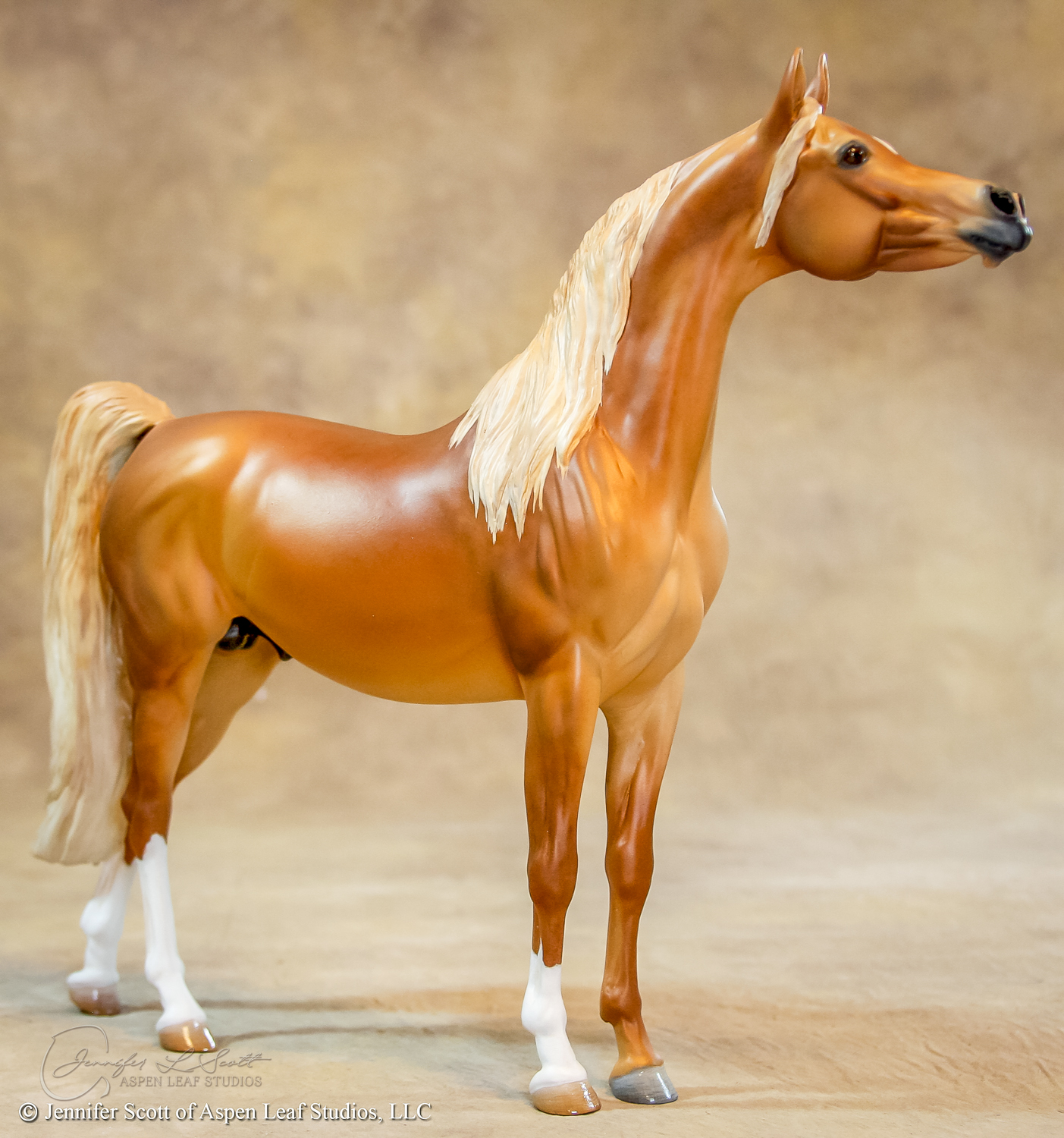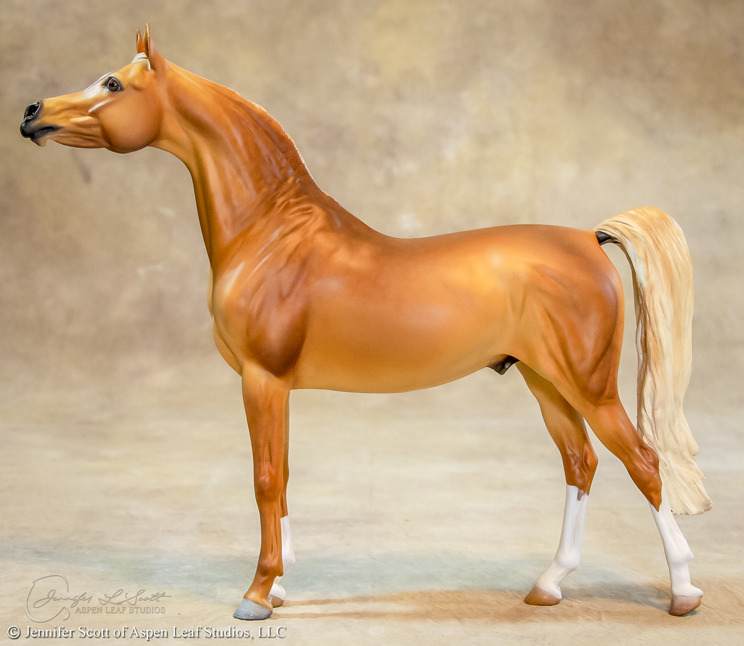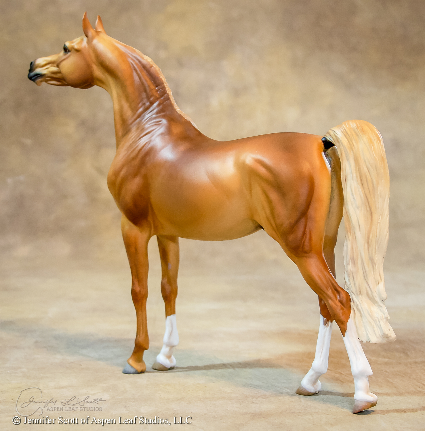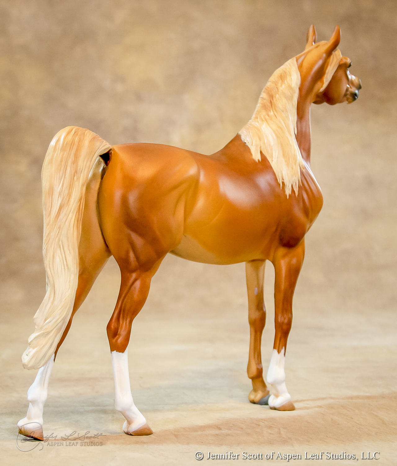 Traditional Scale "Ahzam" resin by Brigitte Eberl with slight tail customization painted flaxen chestnut in 2011.