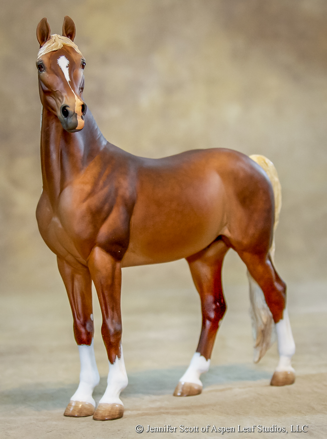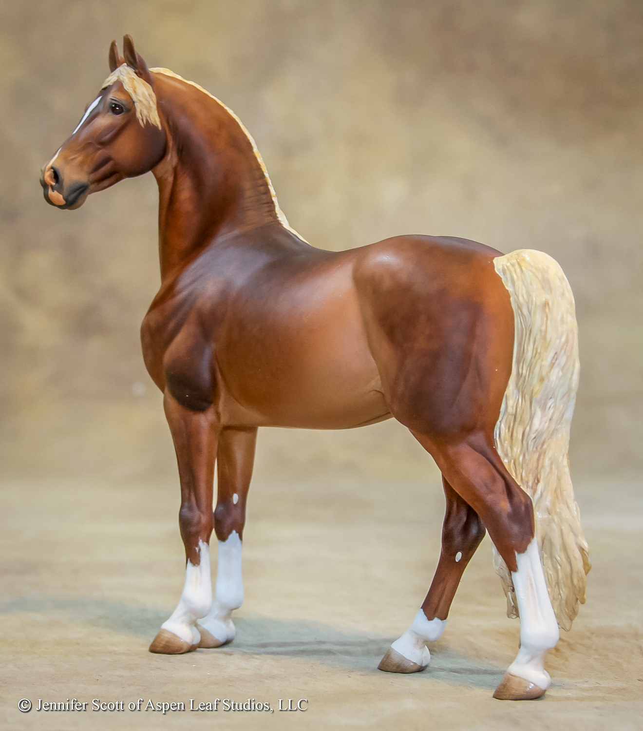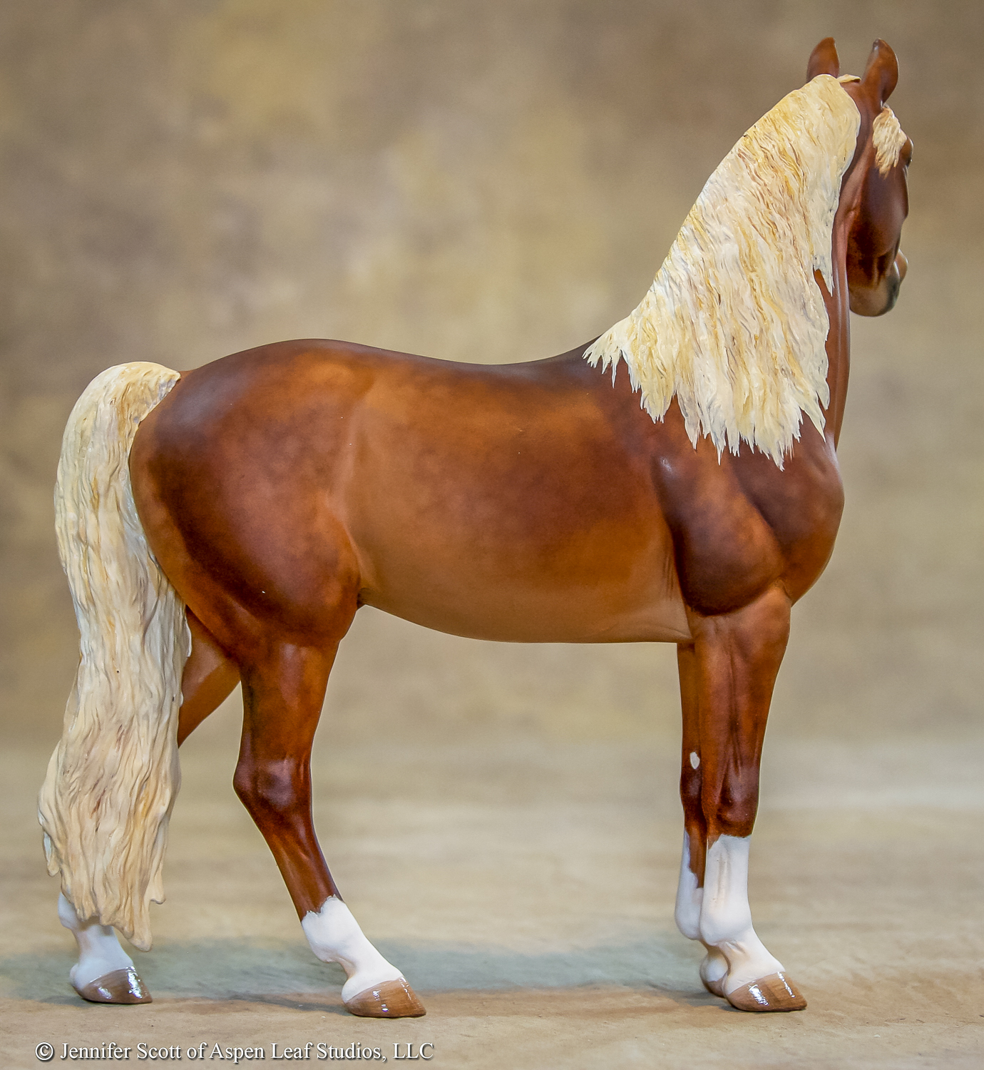 Small Traditional Scale "Johann" resin by Morgen Kilbourn painted dappled flaxen liver chestnut in 2011.