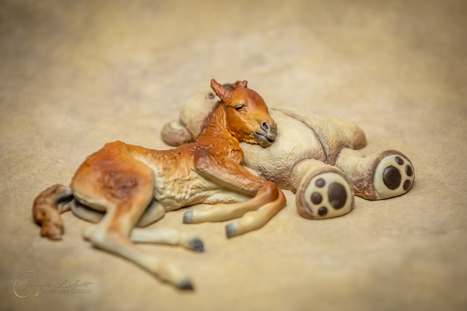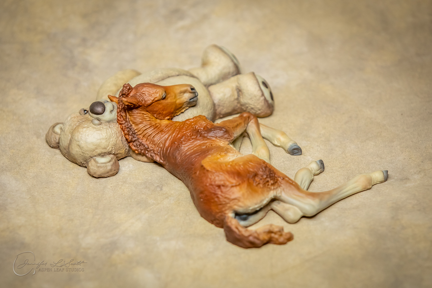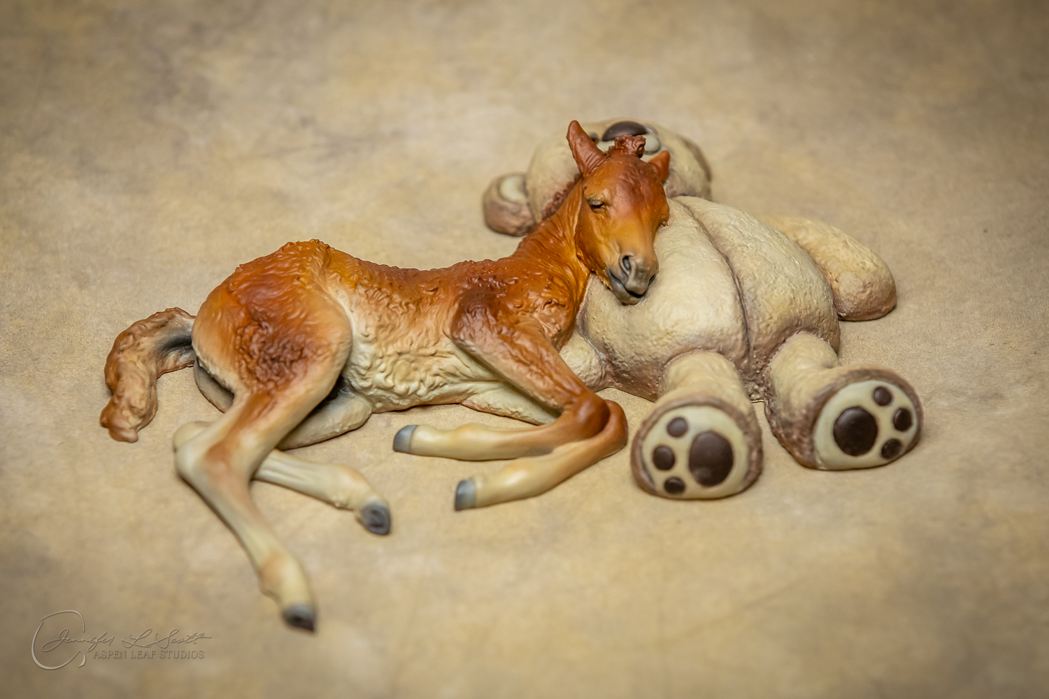 Traditional Scale "Tucker" resin by Kylee Parks painted bay chestnut in 2020. Not represented is the white blaze that was added later.