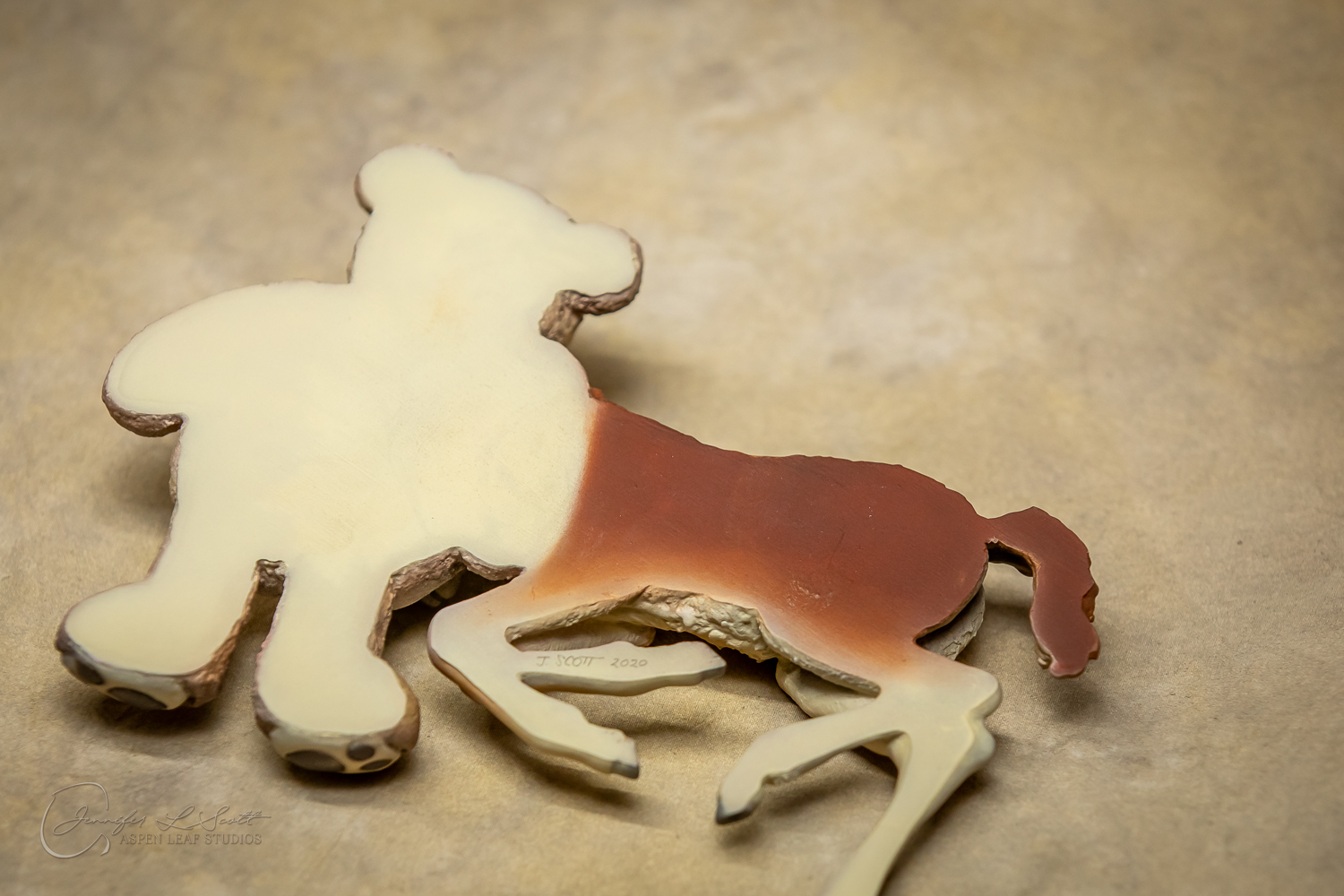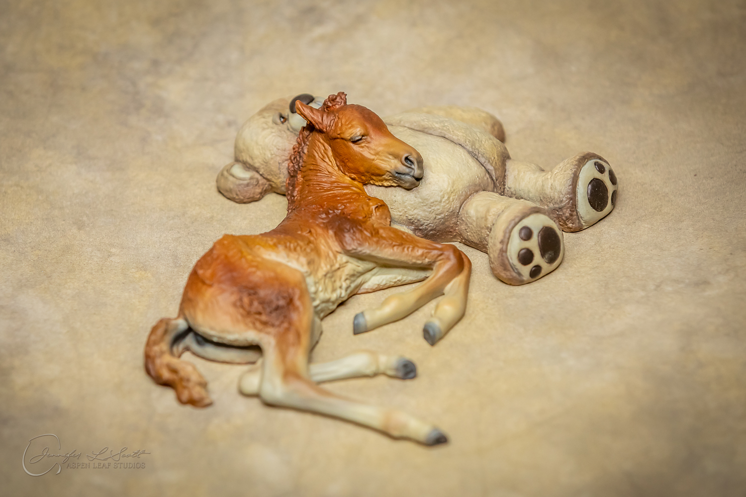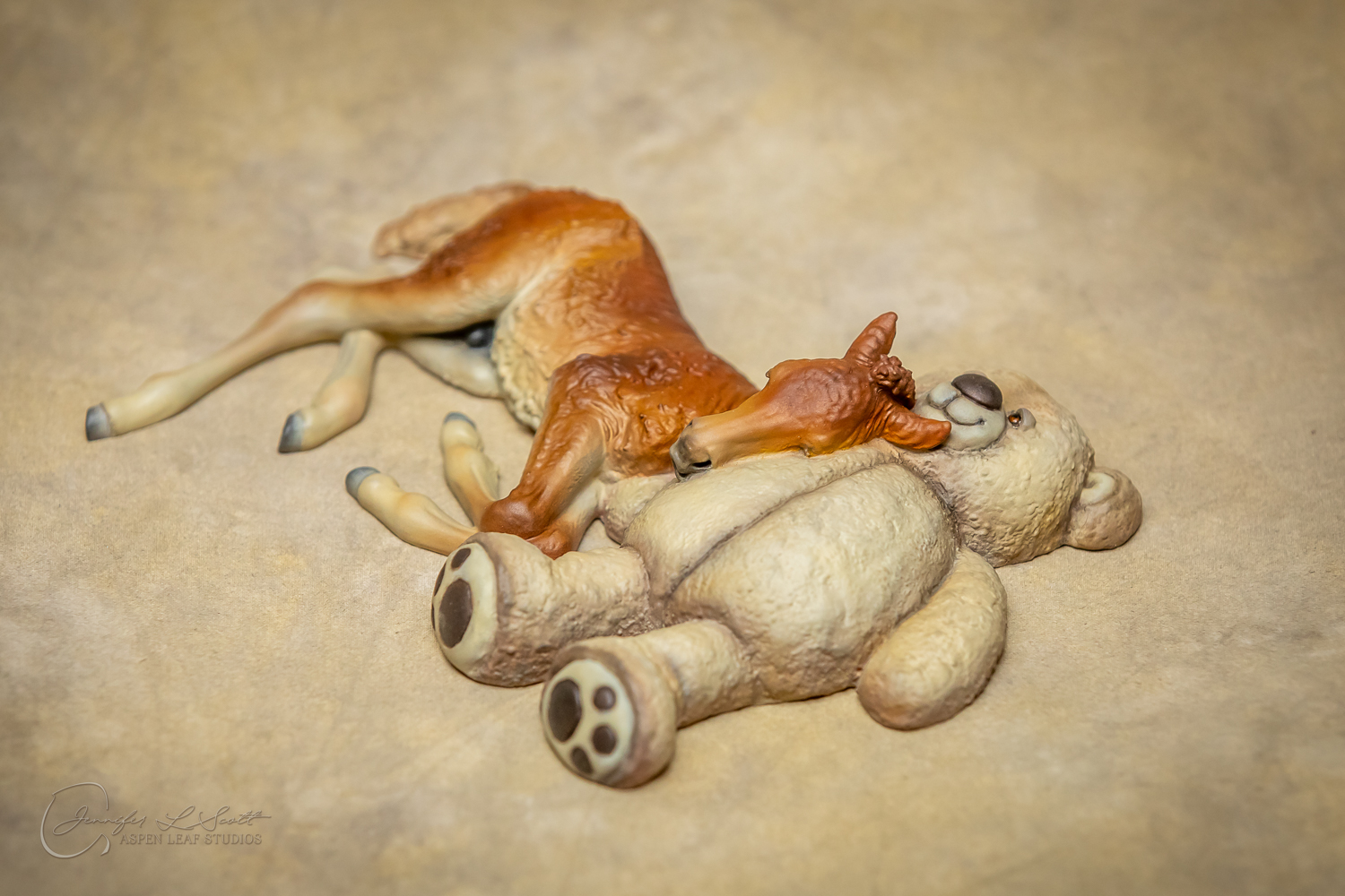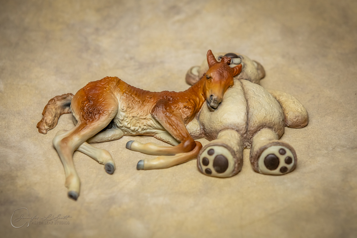 Traditional Scale "Tucker" resin by Kylee Parks painted bay chestnut in 2020. Not represented is the white blaze that was added later.