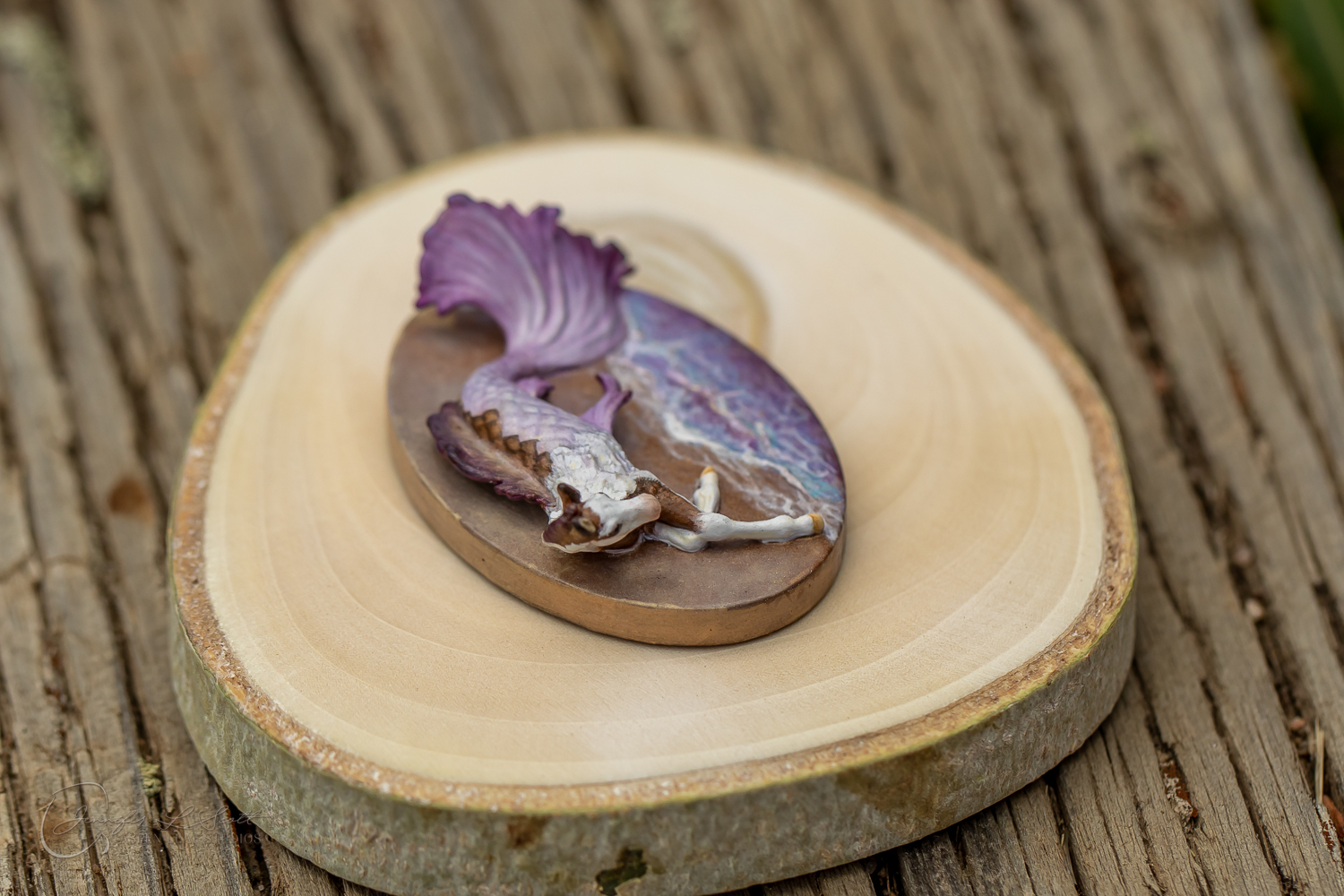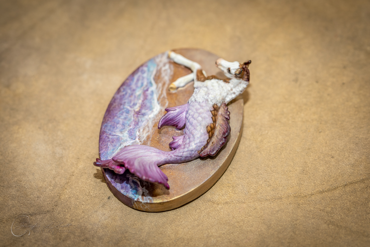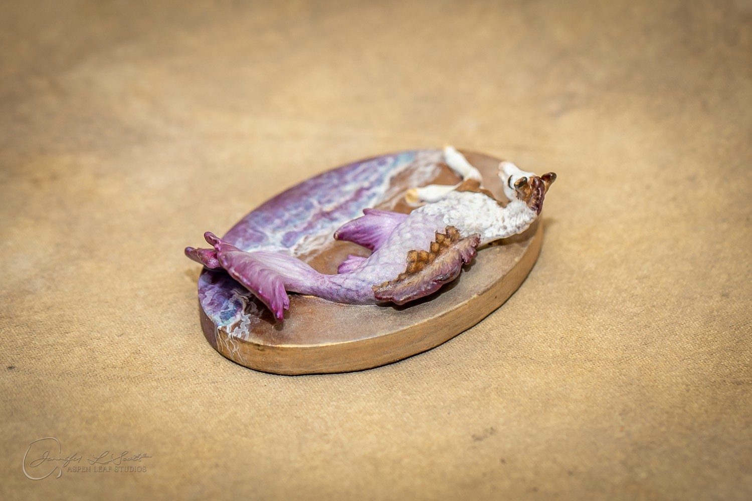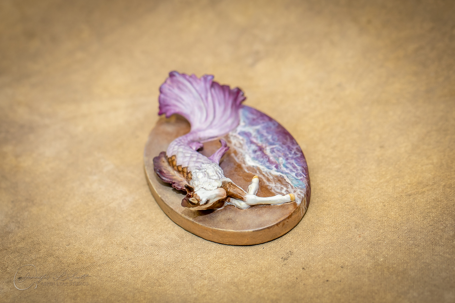 Micro Scale "Ikura" by Kylee Parks painted bay overo with purple fins in 2022.