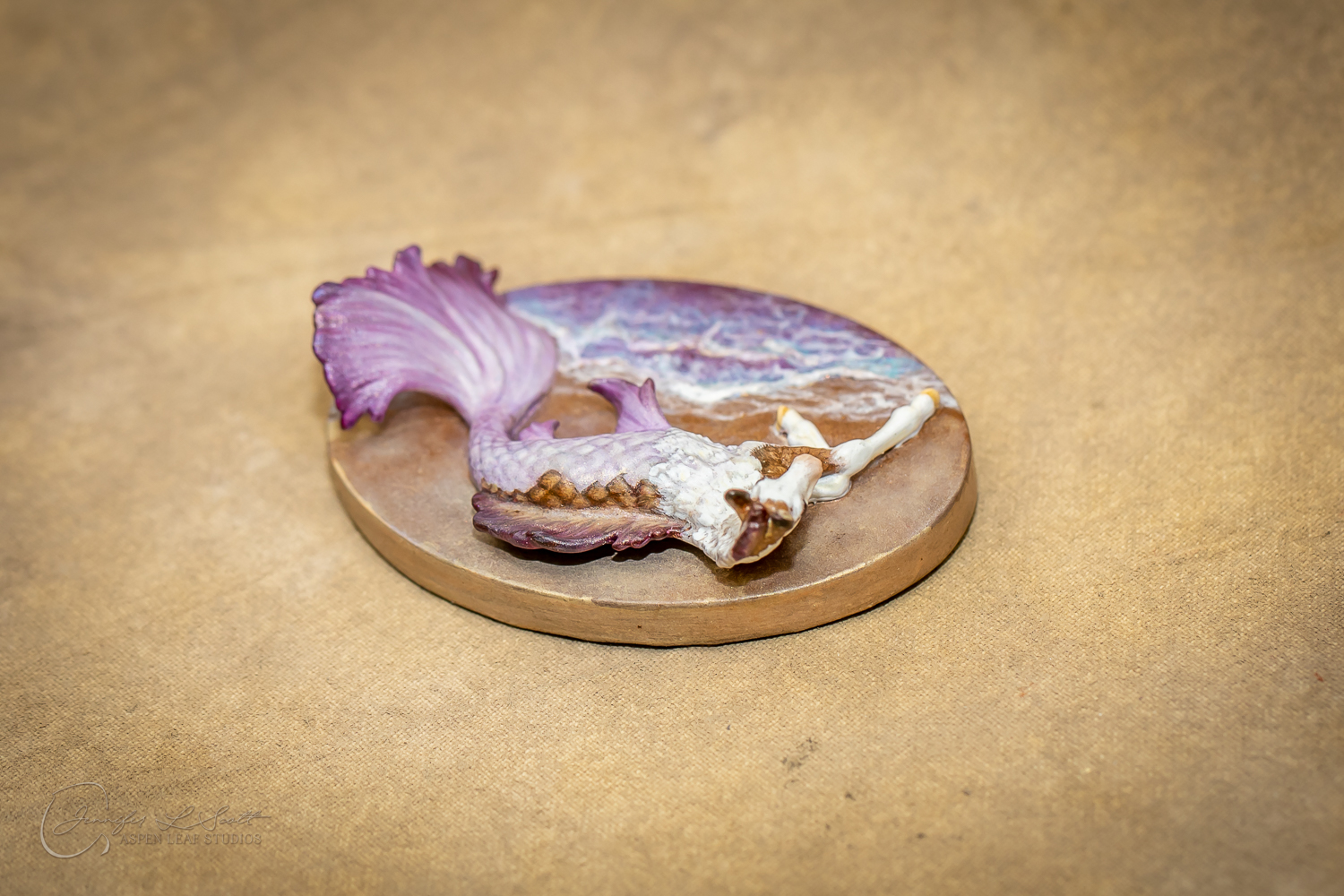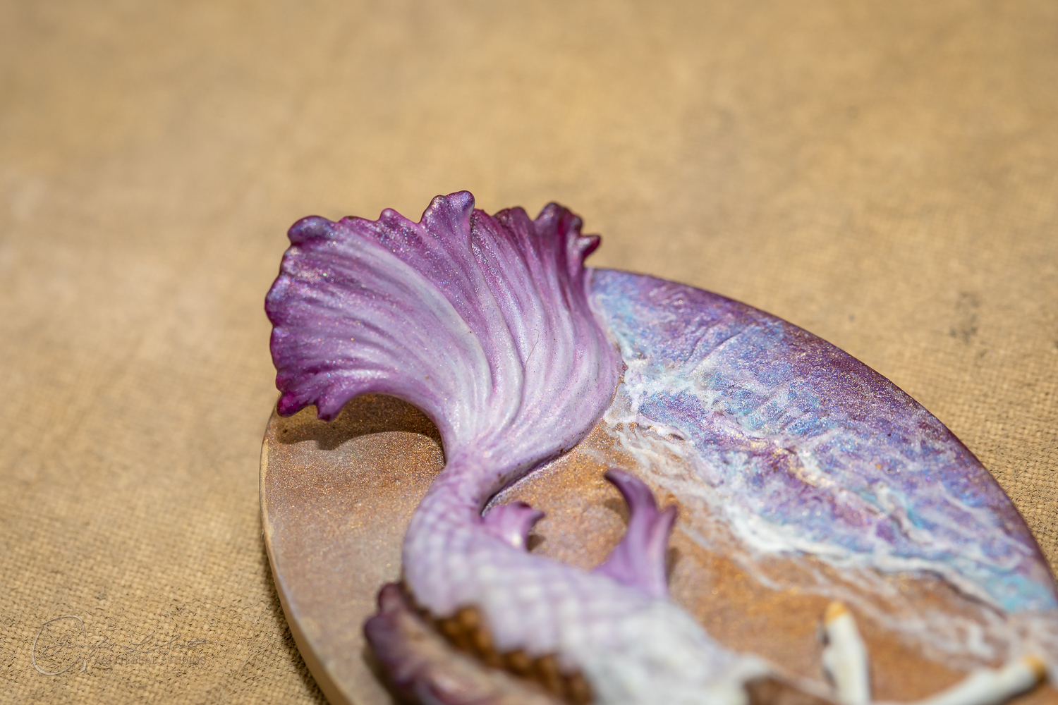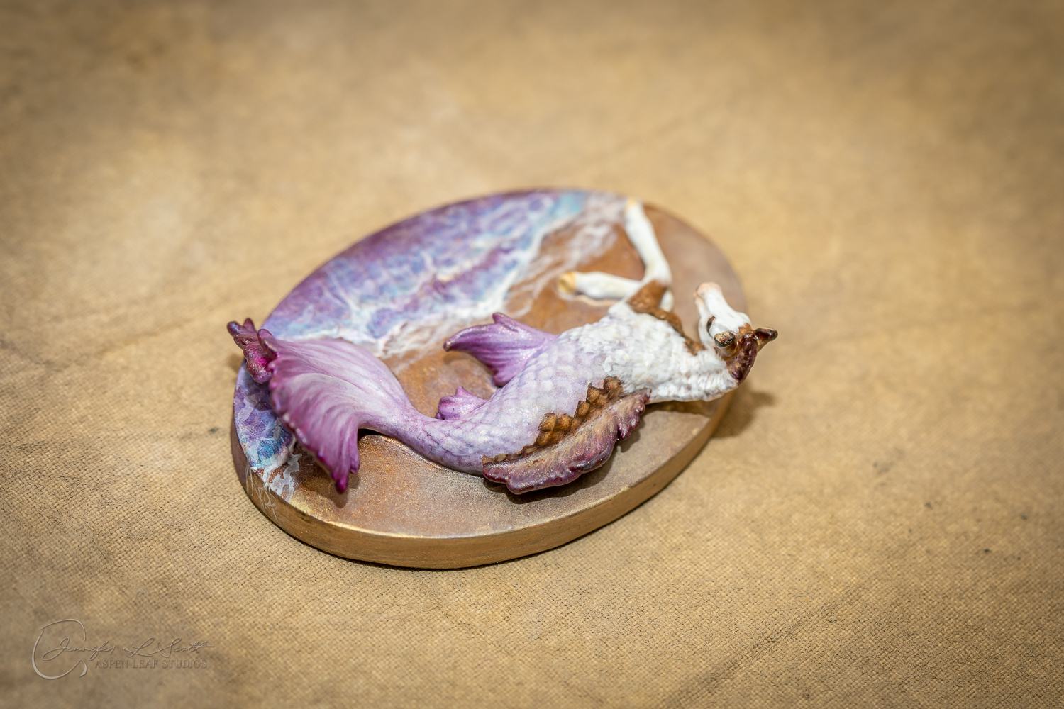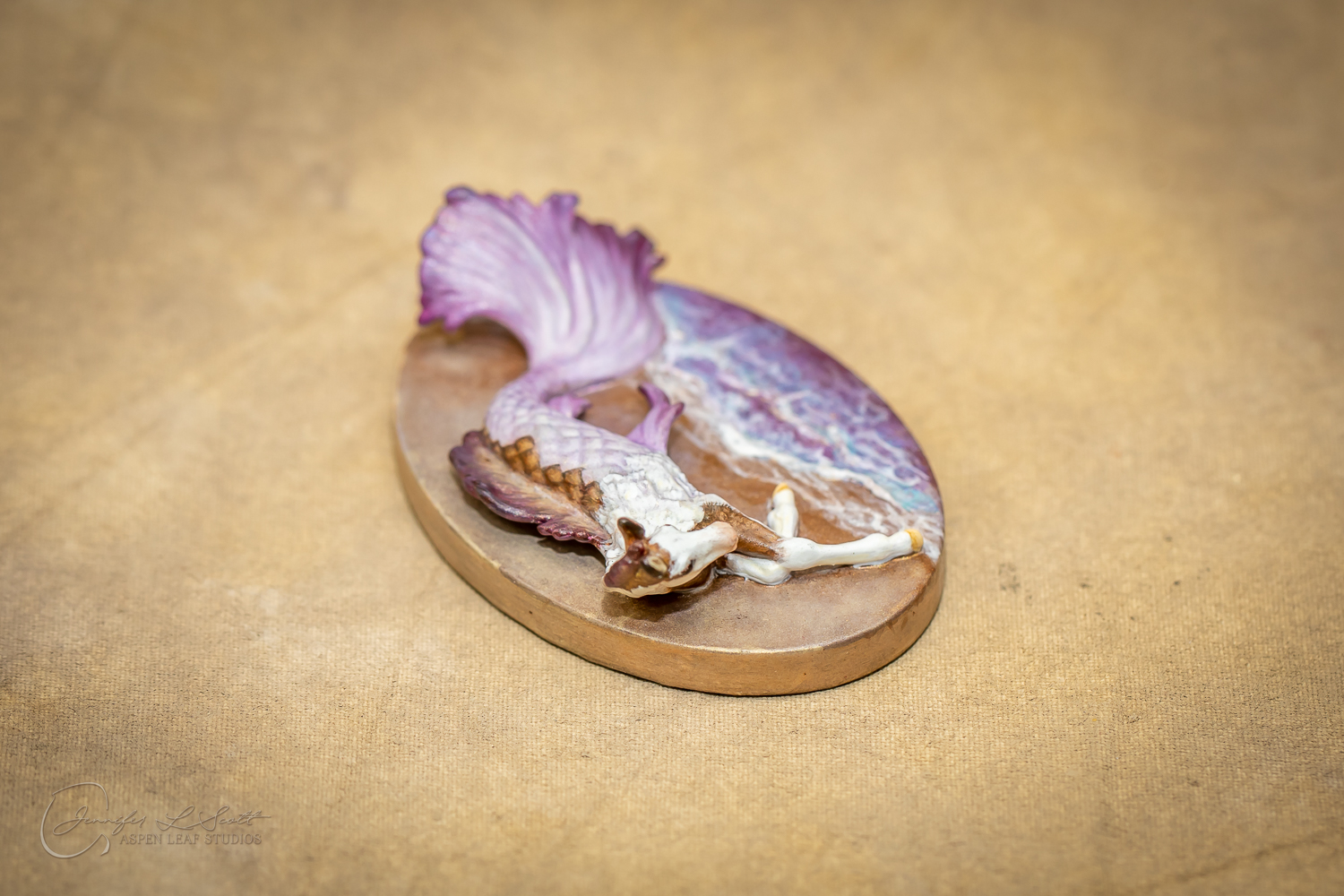Micro Scale "Ikura" by Kylee Parks painted bay overo with purple fins in 2022.