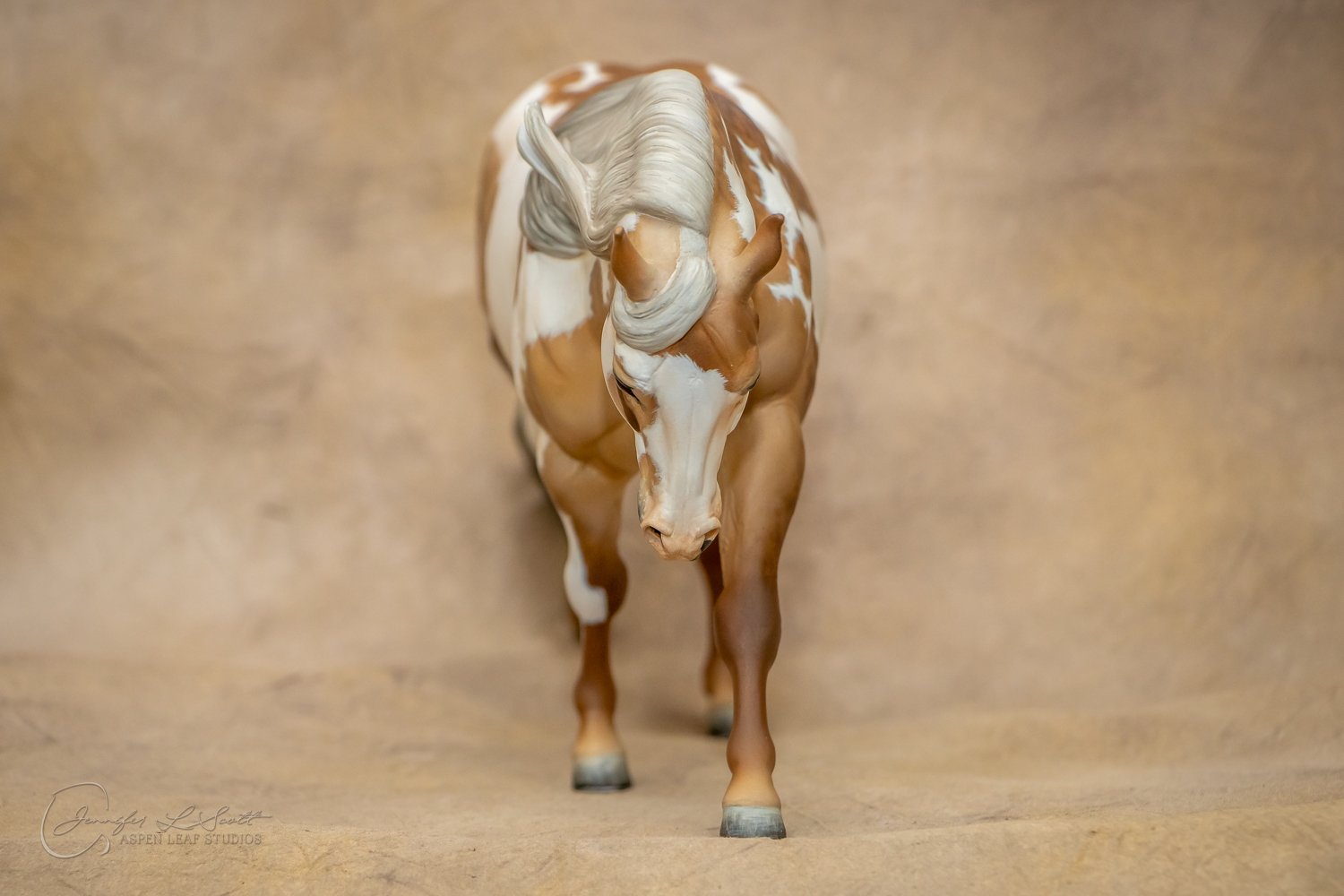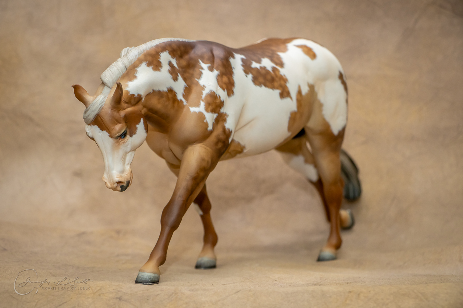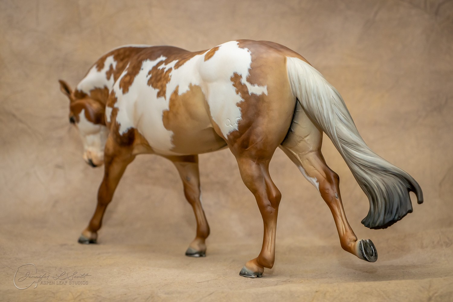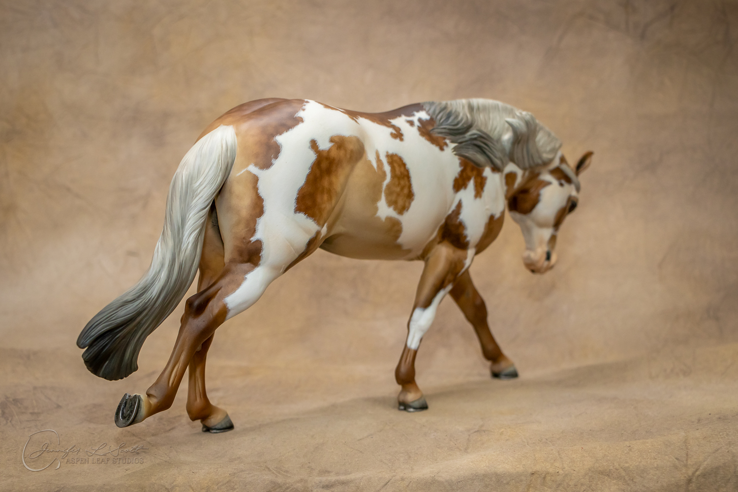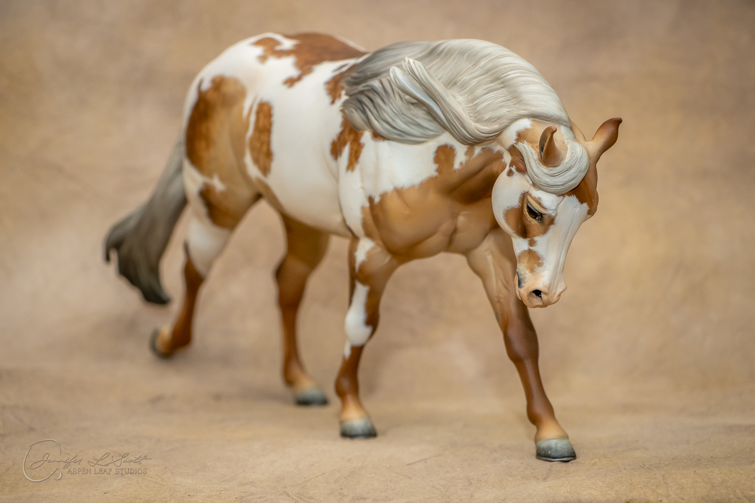 Traditional Scale "Chex Bueno" resin by Debbi Lermond painted sooty dappled palomino overo in 2019.