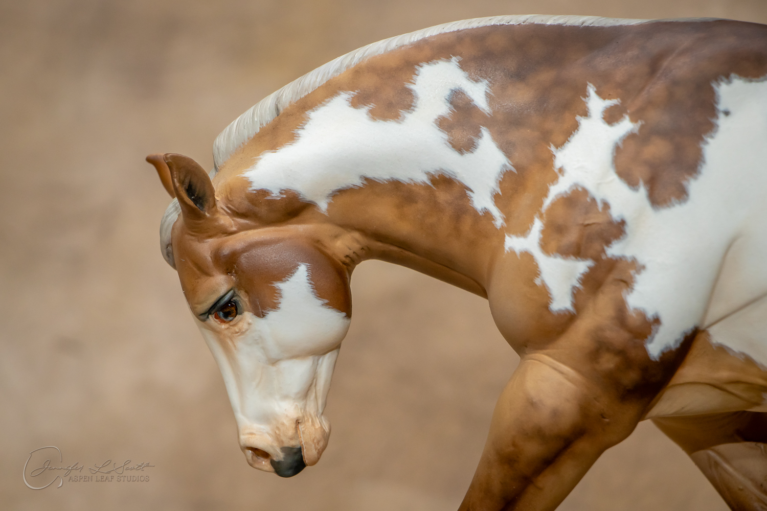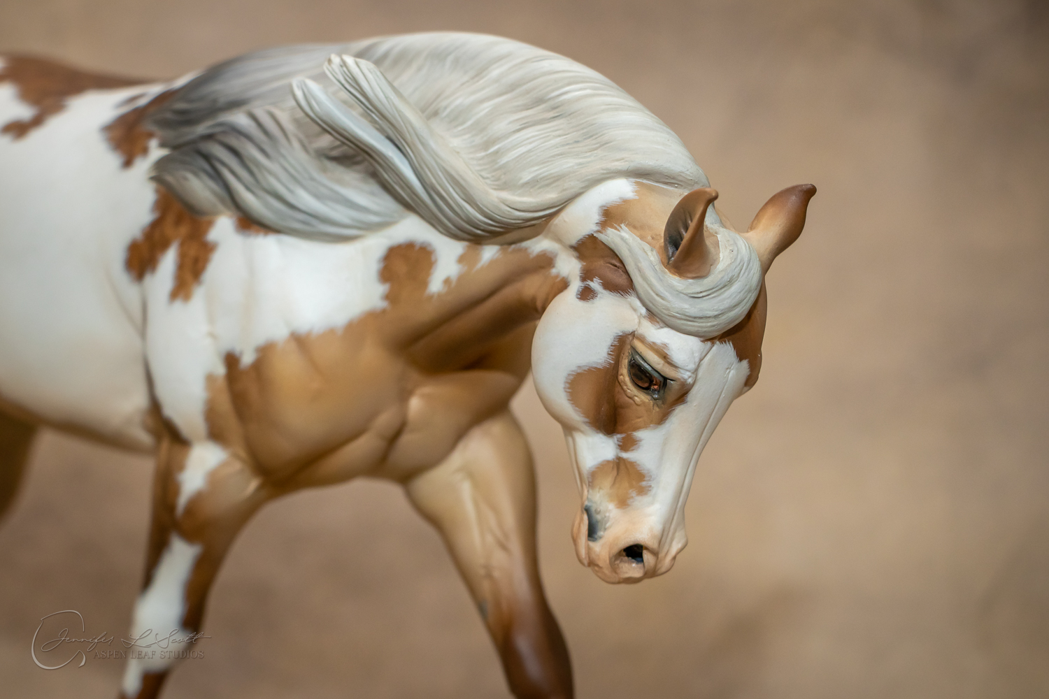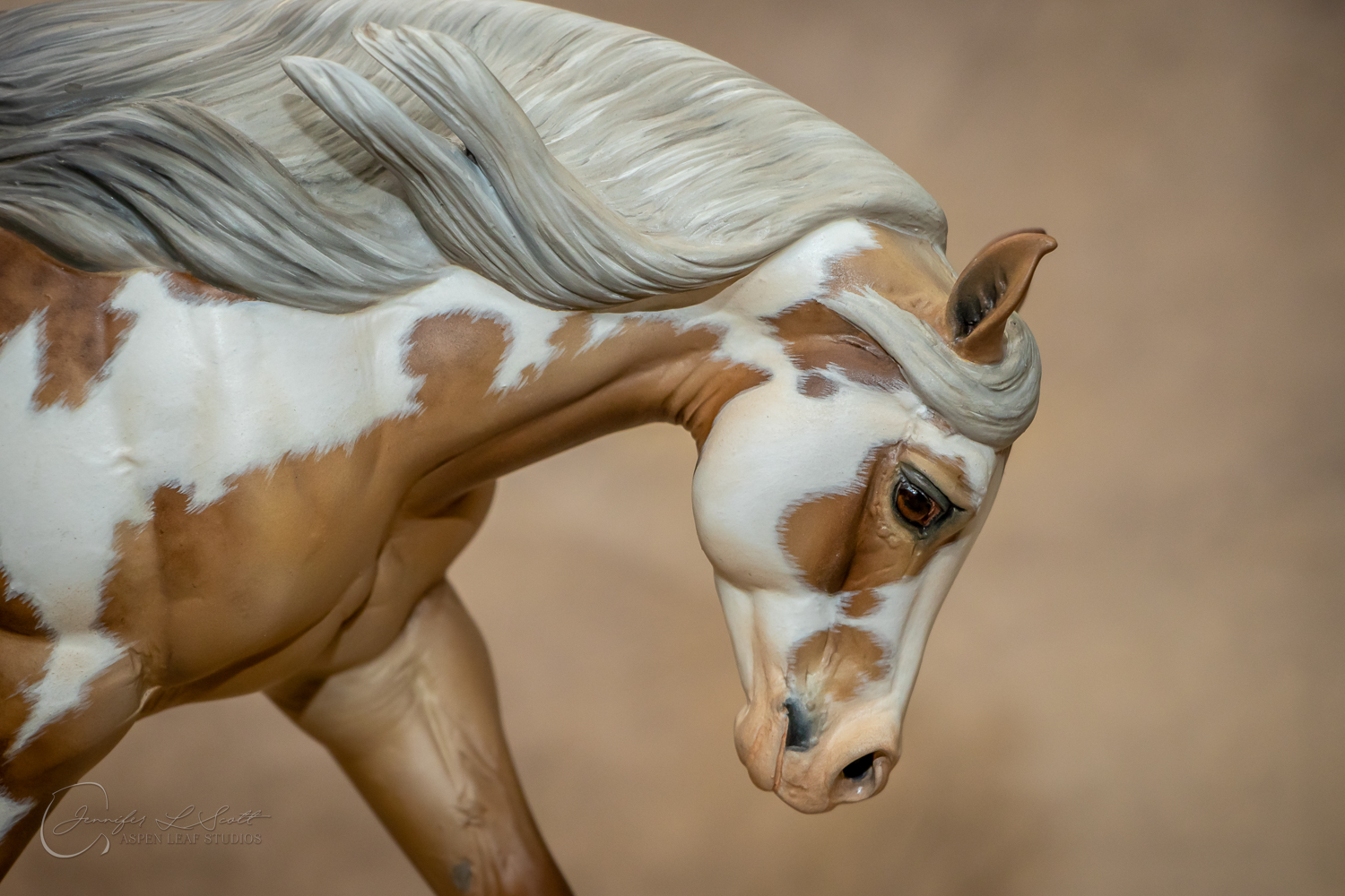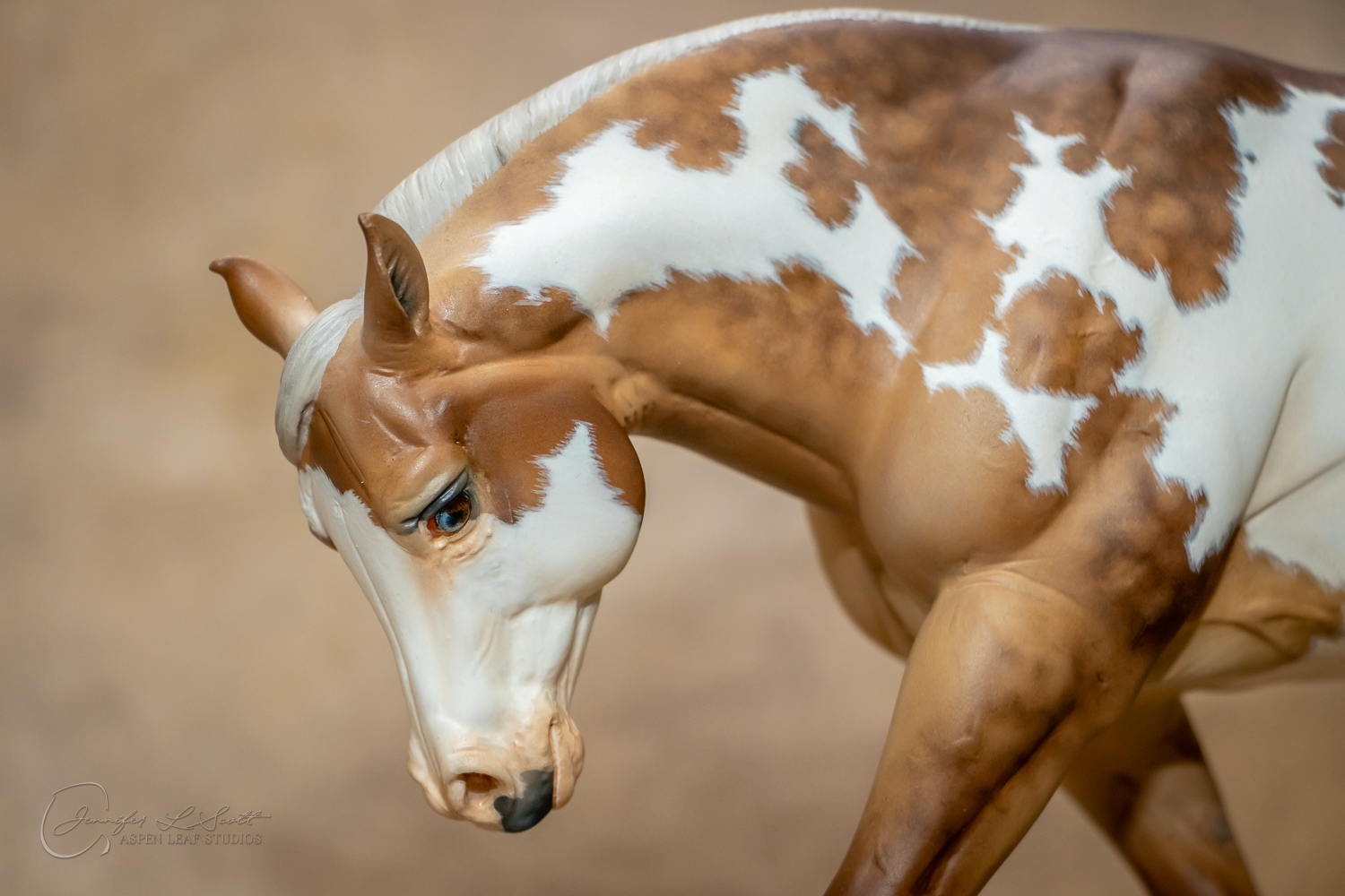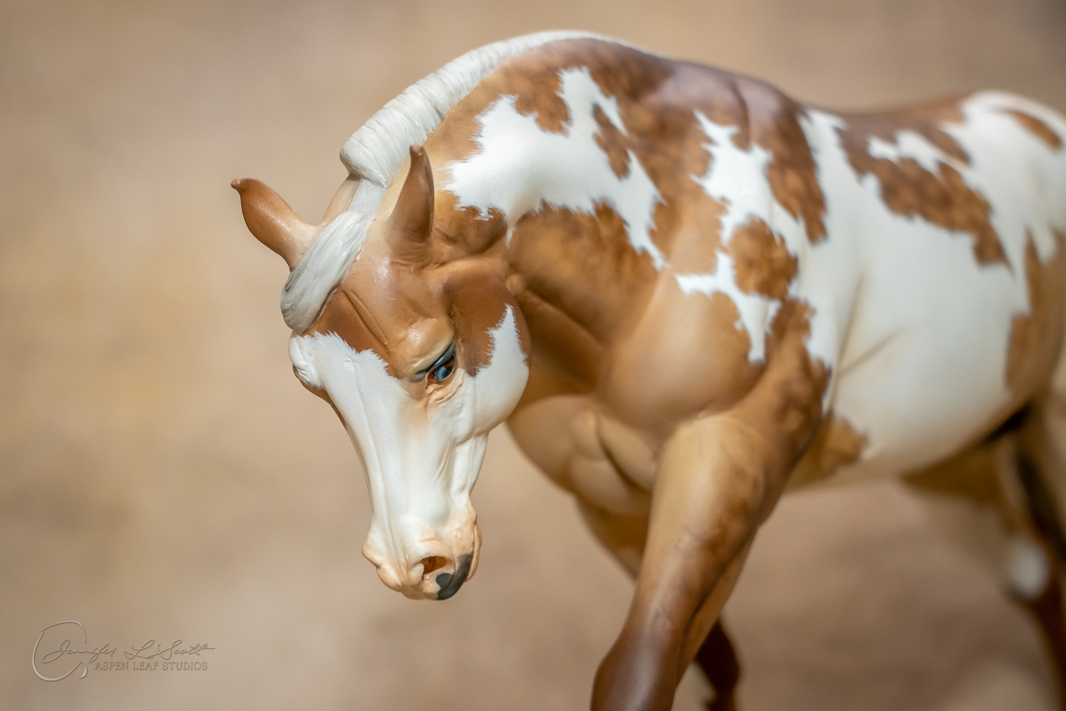 Traditional Scale "Chex Bueno" resin by Debbi Lermond painted sooty dappled palomino overo in 2019.