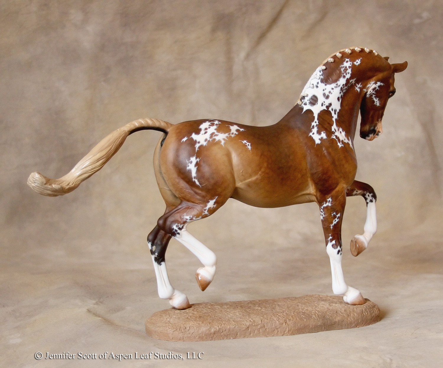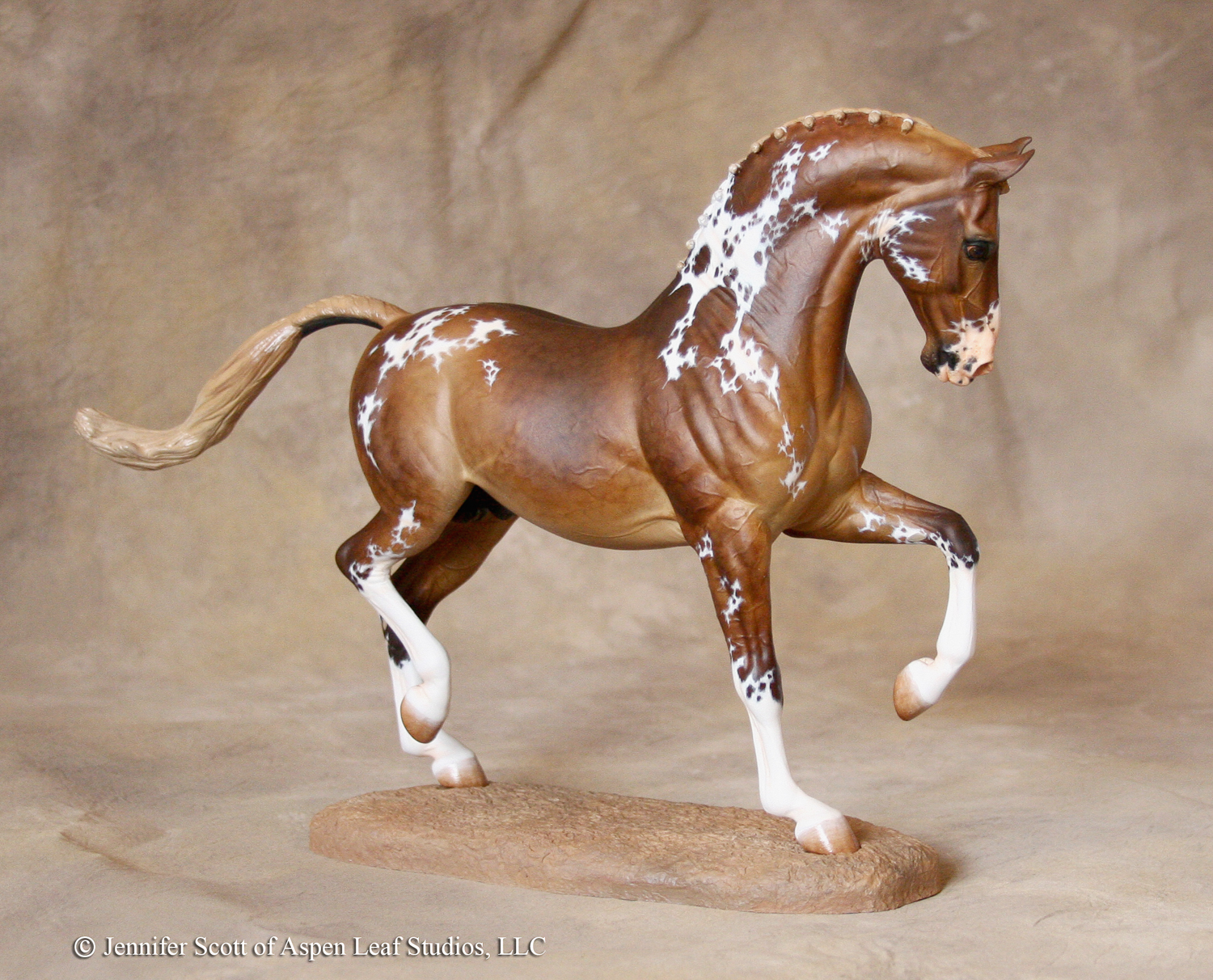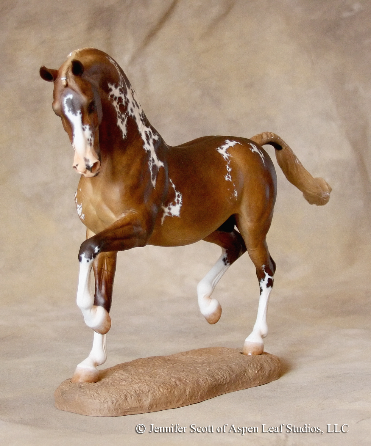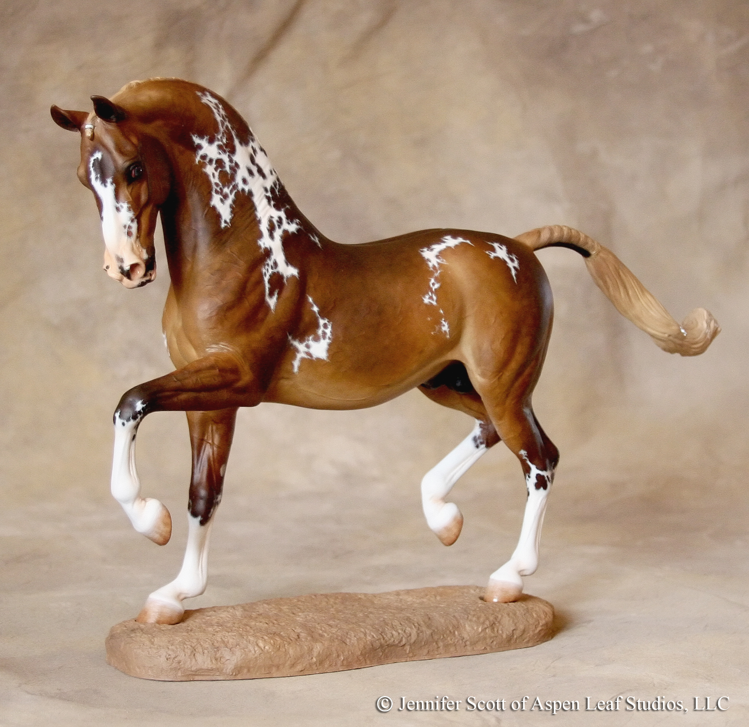 Traditional Scale "David" resin by Deborah McDermott painted dappled flaxen liver chestnut homozygous tobiano in 2009.