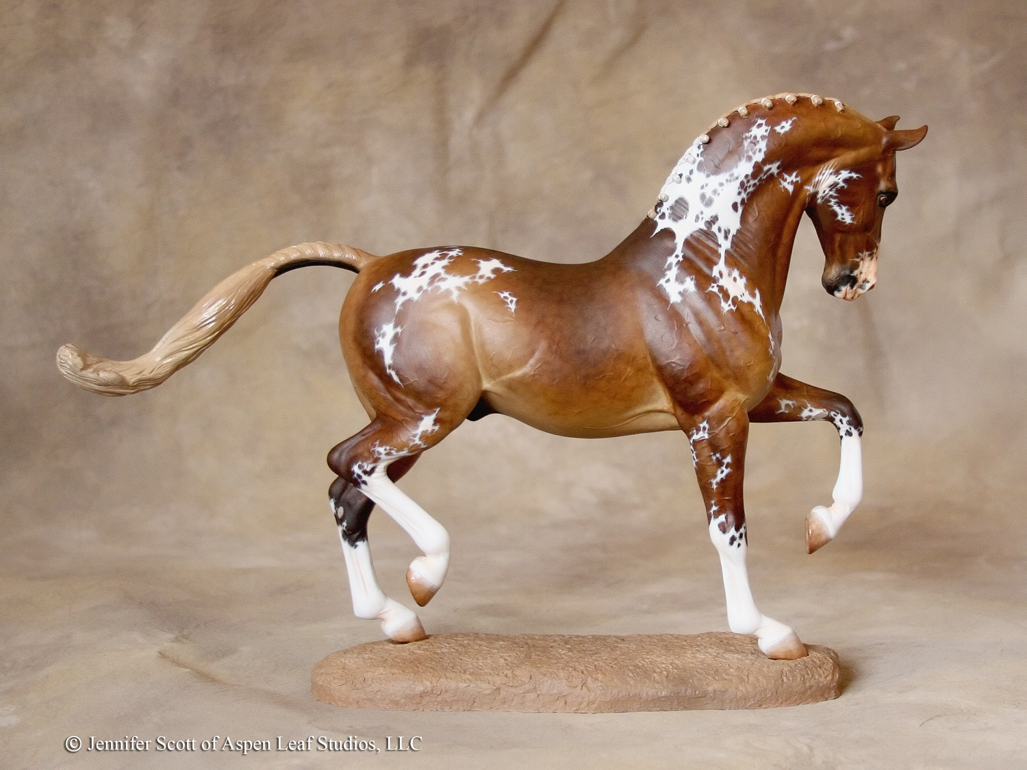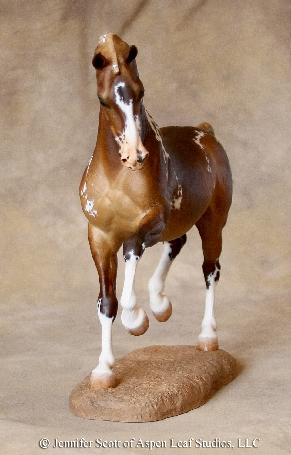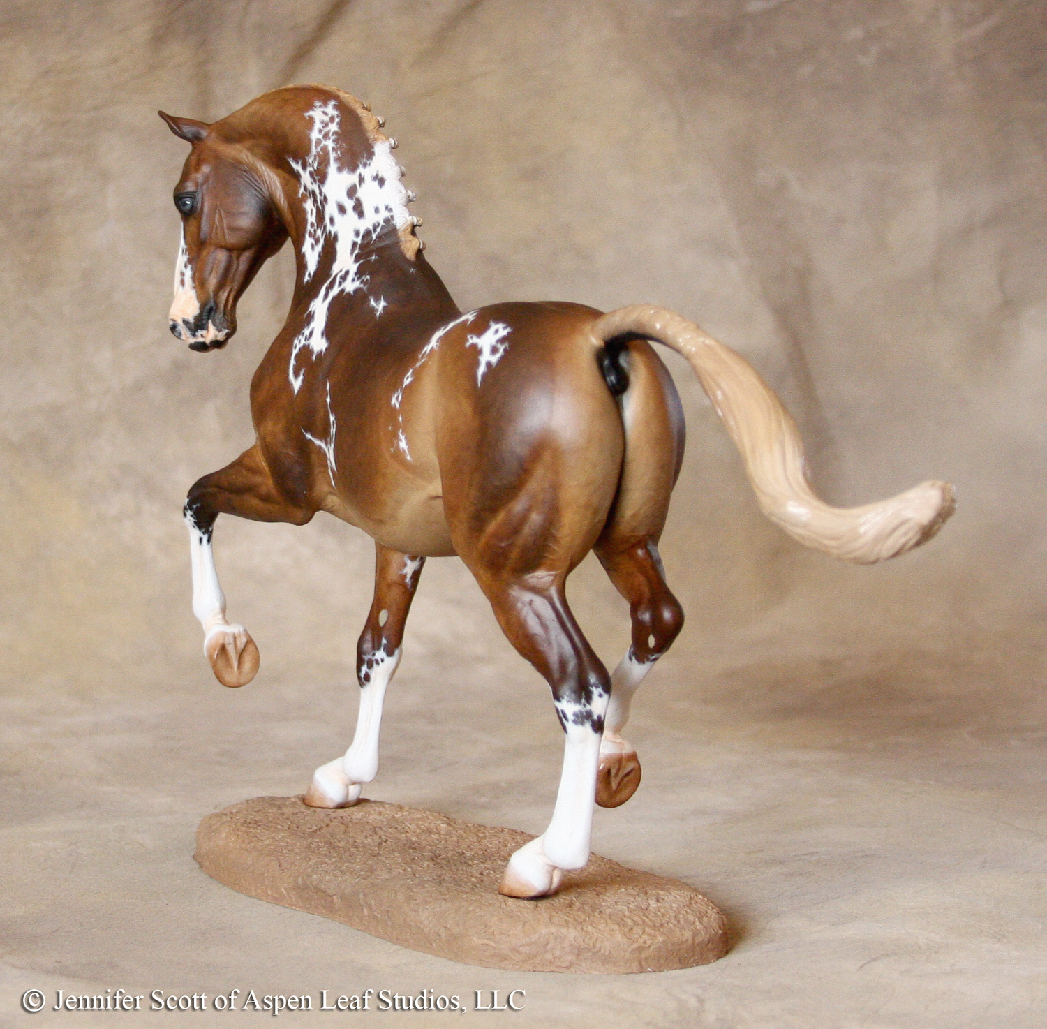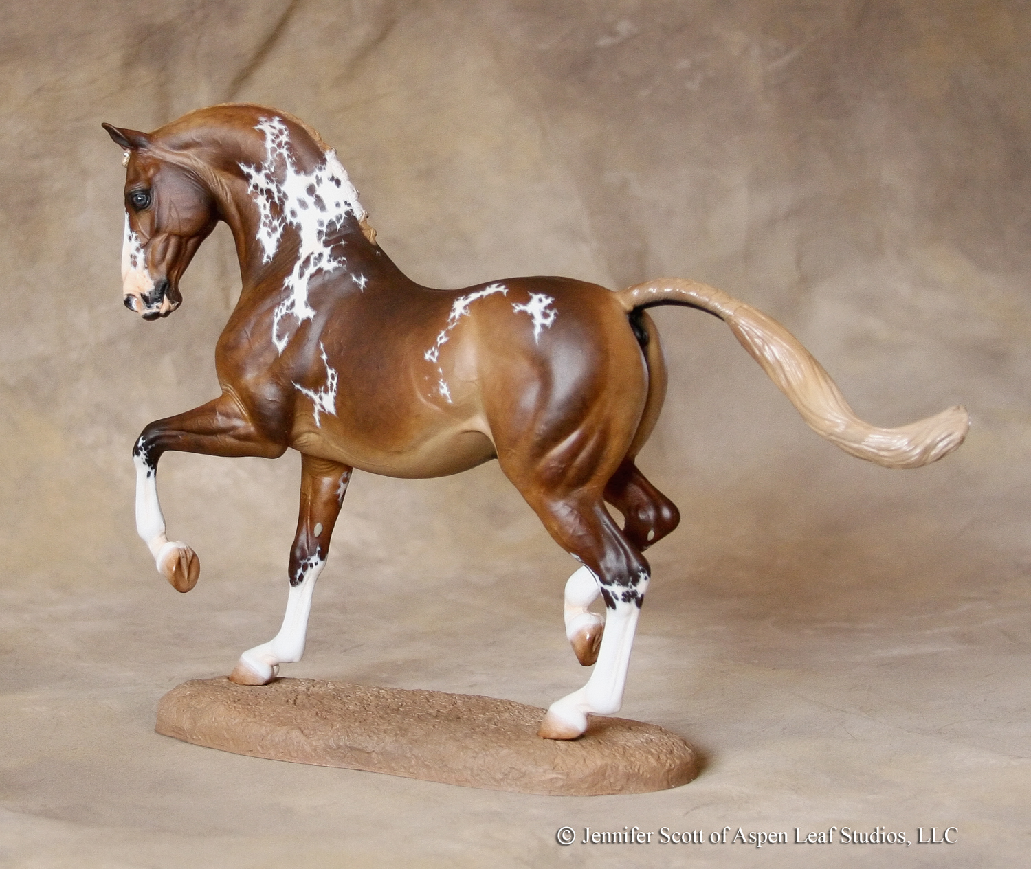 Traditional Scale "David" resin by Deborah McDermott painted dappled flaxen liver chestnut homozygous tobiano in 2009.