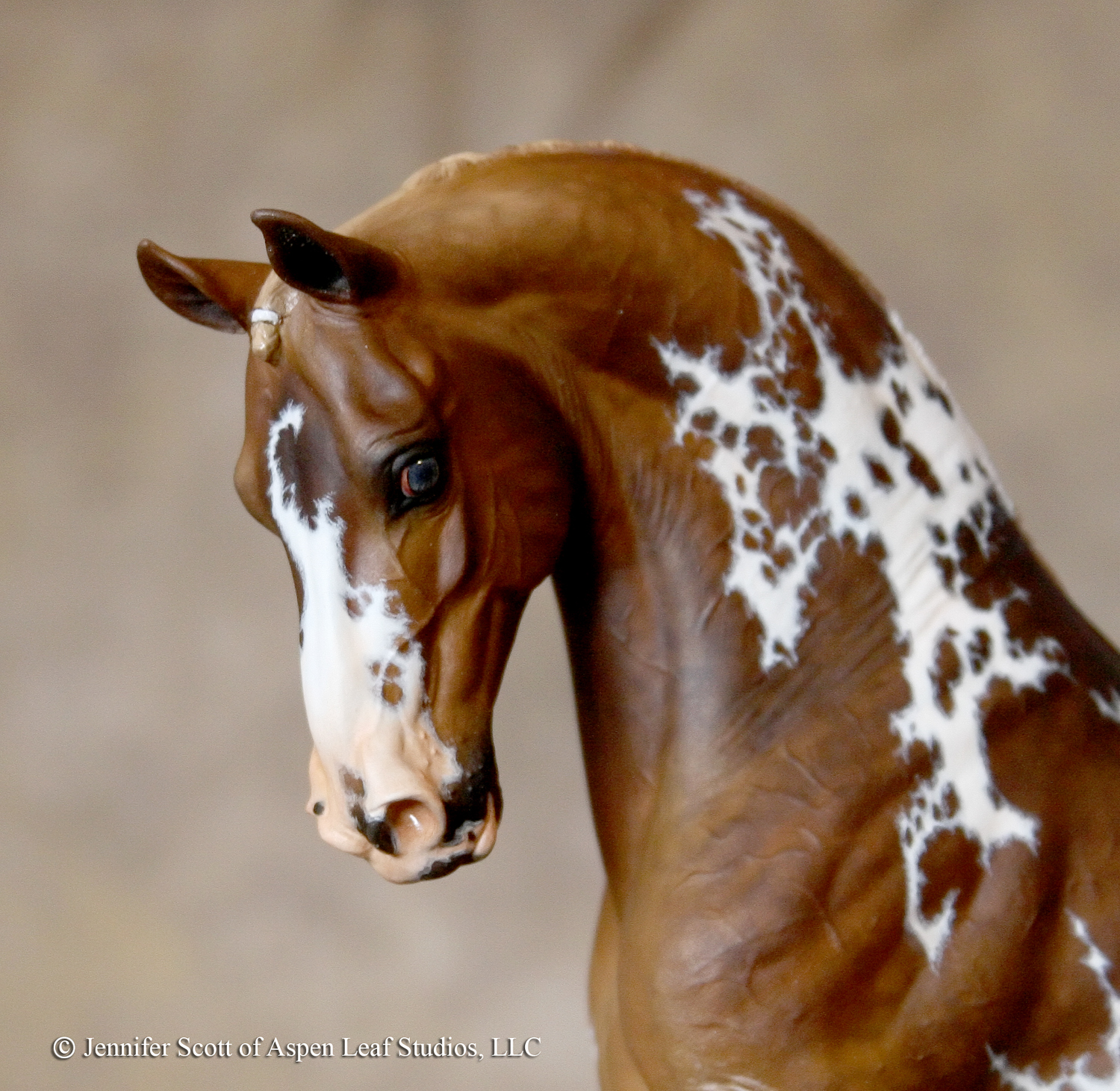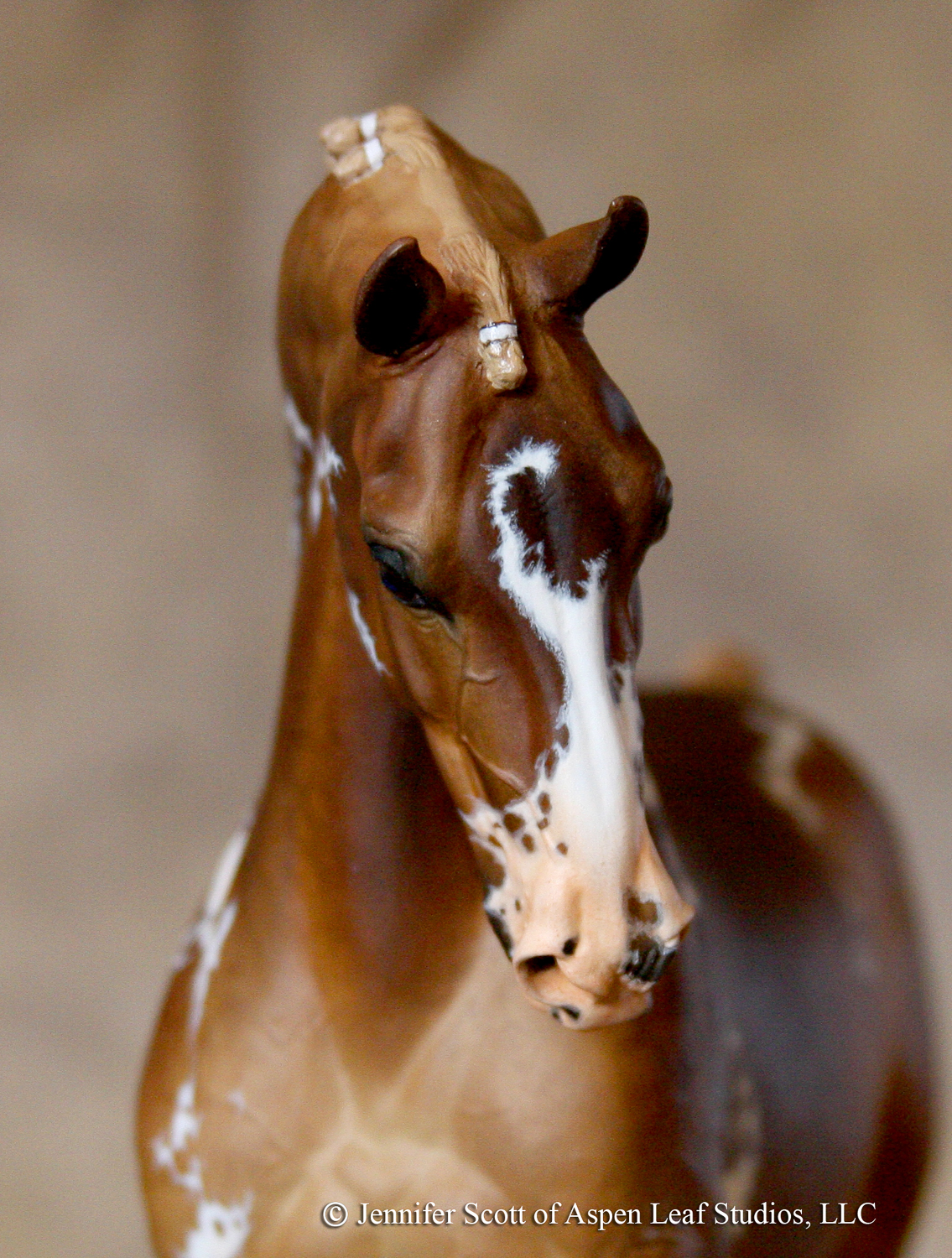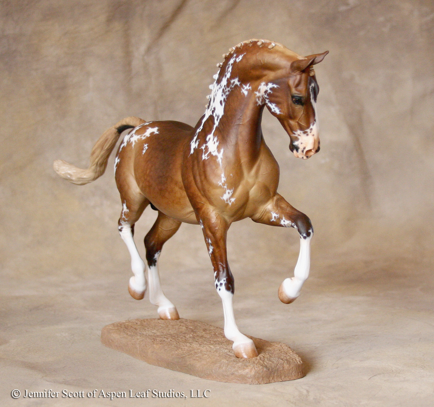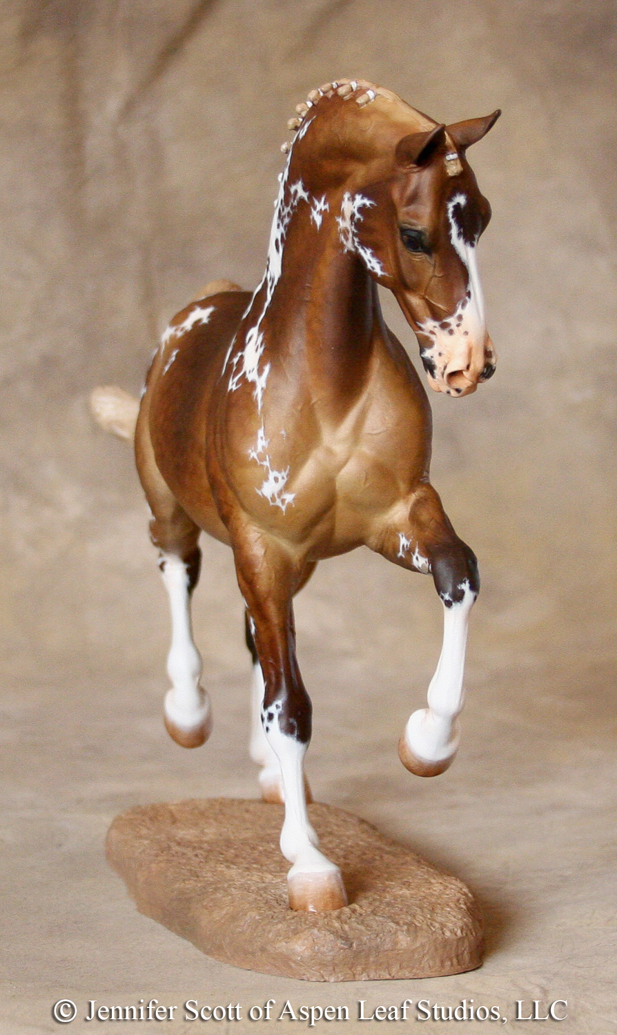 Traditional Scale "David" resin by Deborah McDermott painted dappled flaxen liver chestnut homozygous tobiano in 2009.