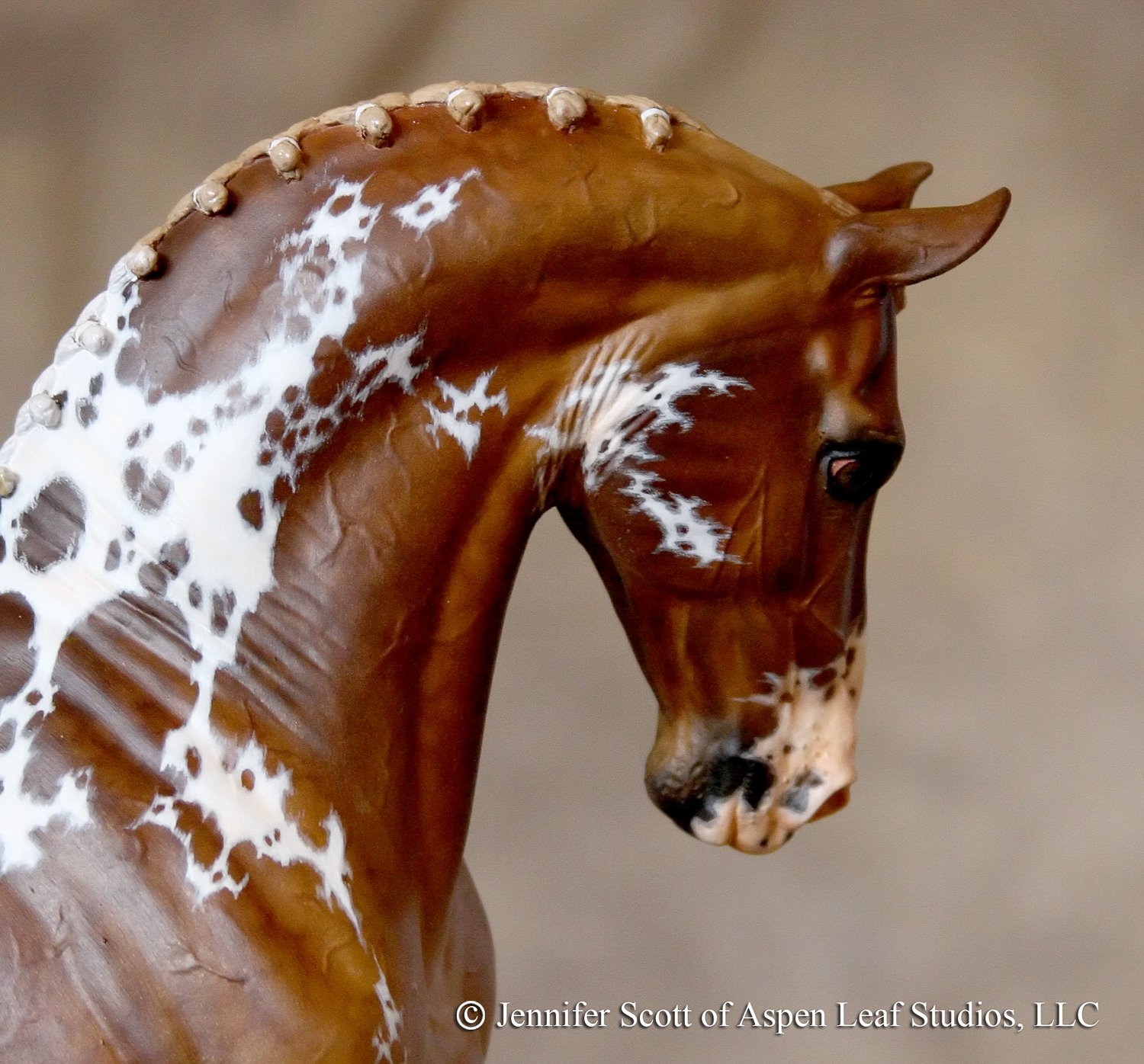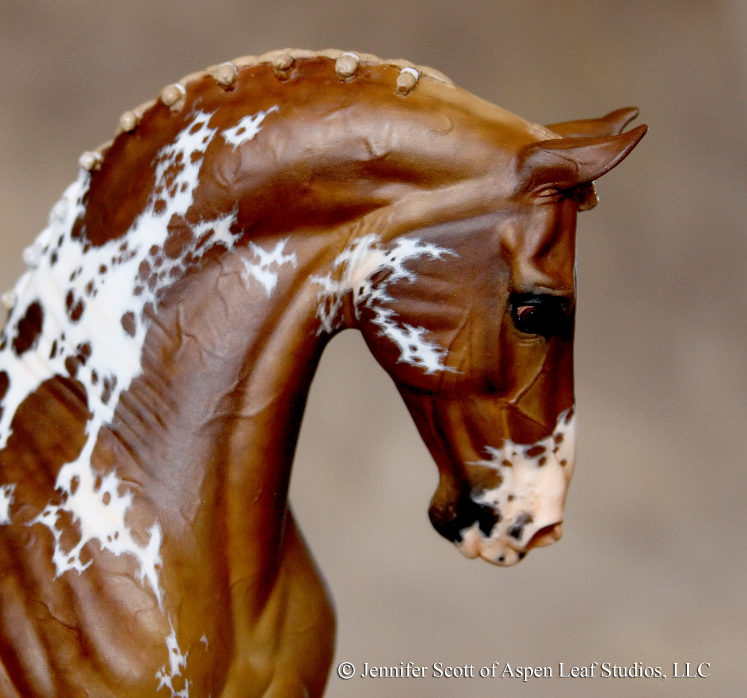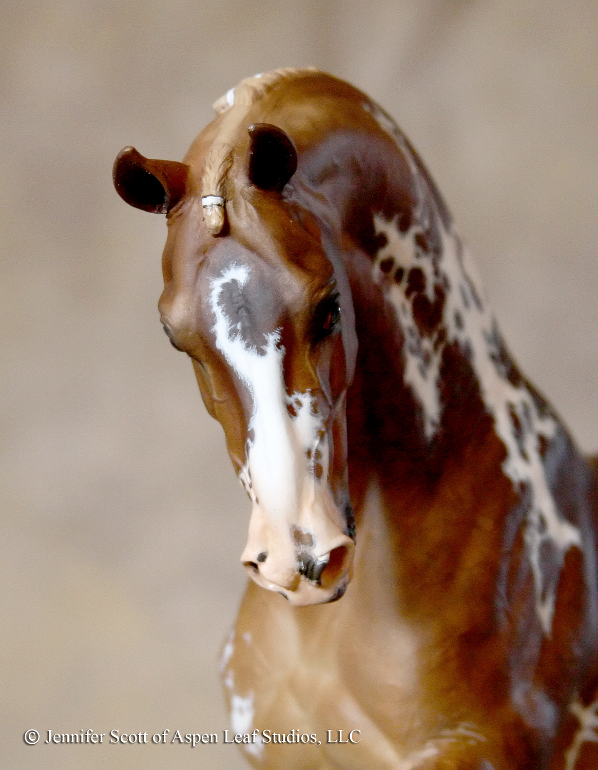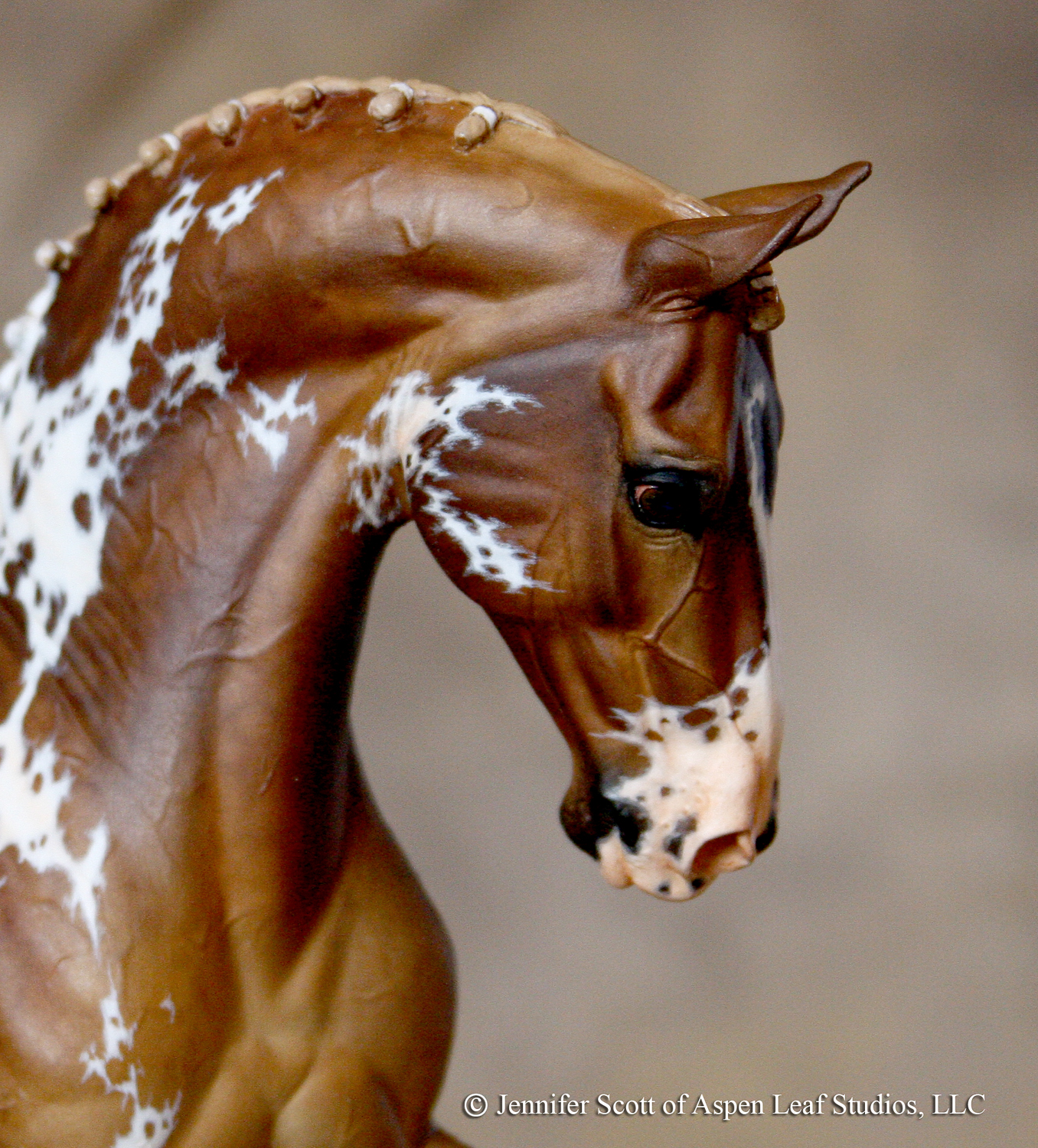 Traditional Scale "David" resin by Deborah McDermott painted dappled flaxen liver chestnut homozygous tobiano in 2009.