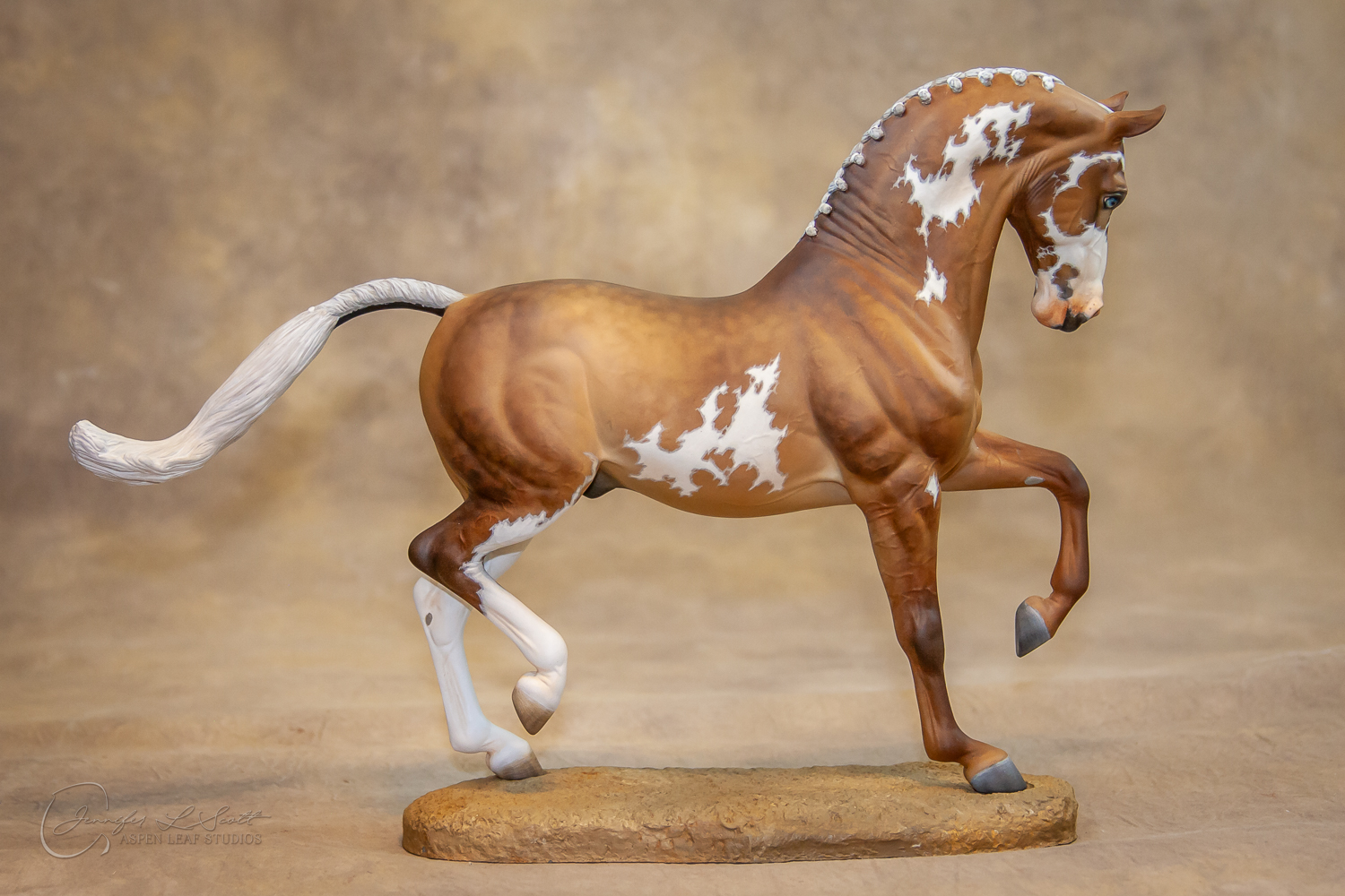 Traditional Scale "David" resin by Deborah McDermott painted sooty dappled palomino overo in 2014.