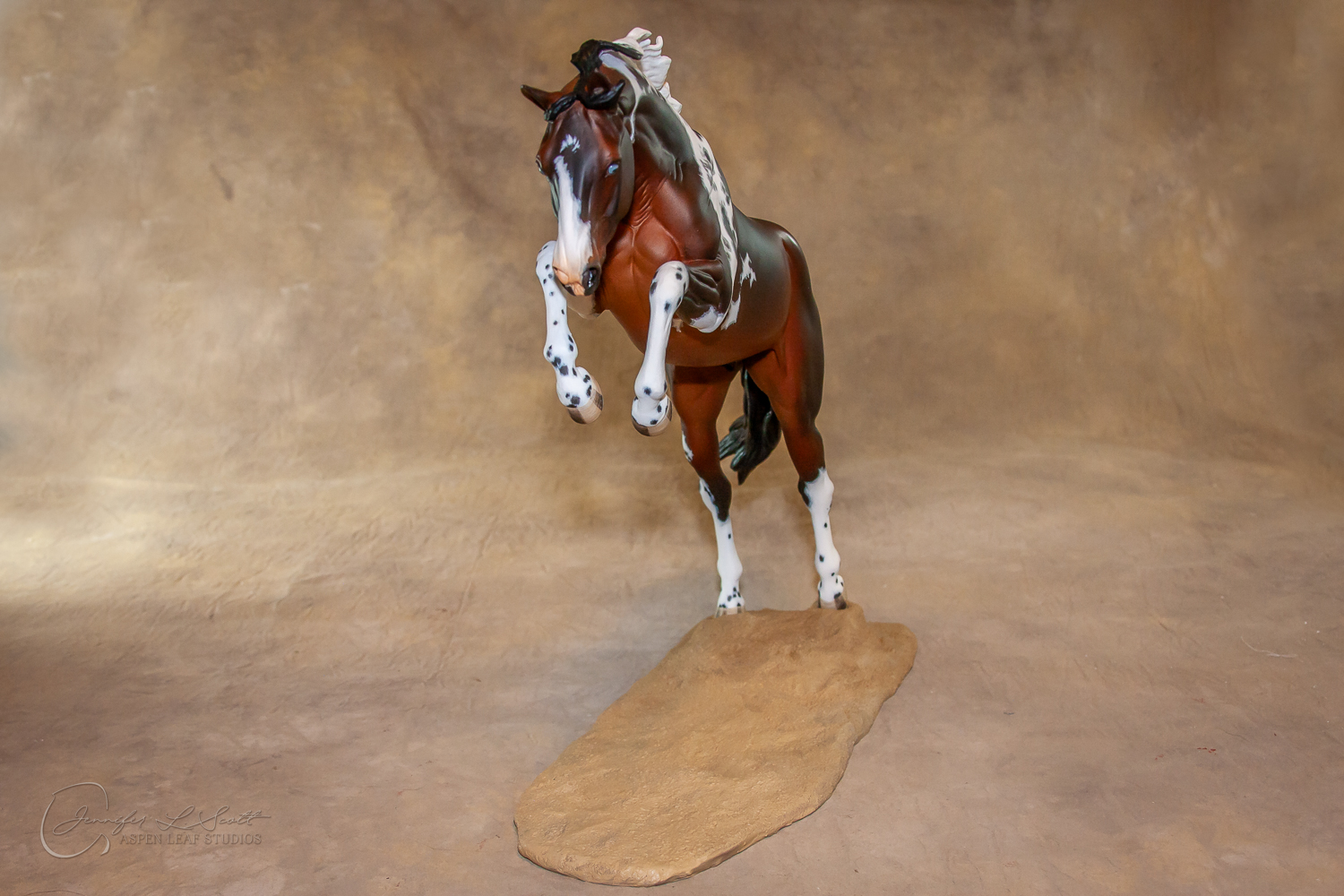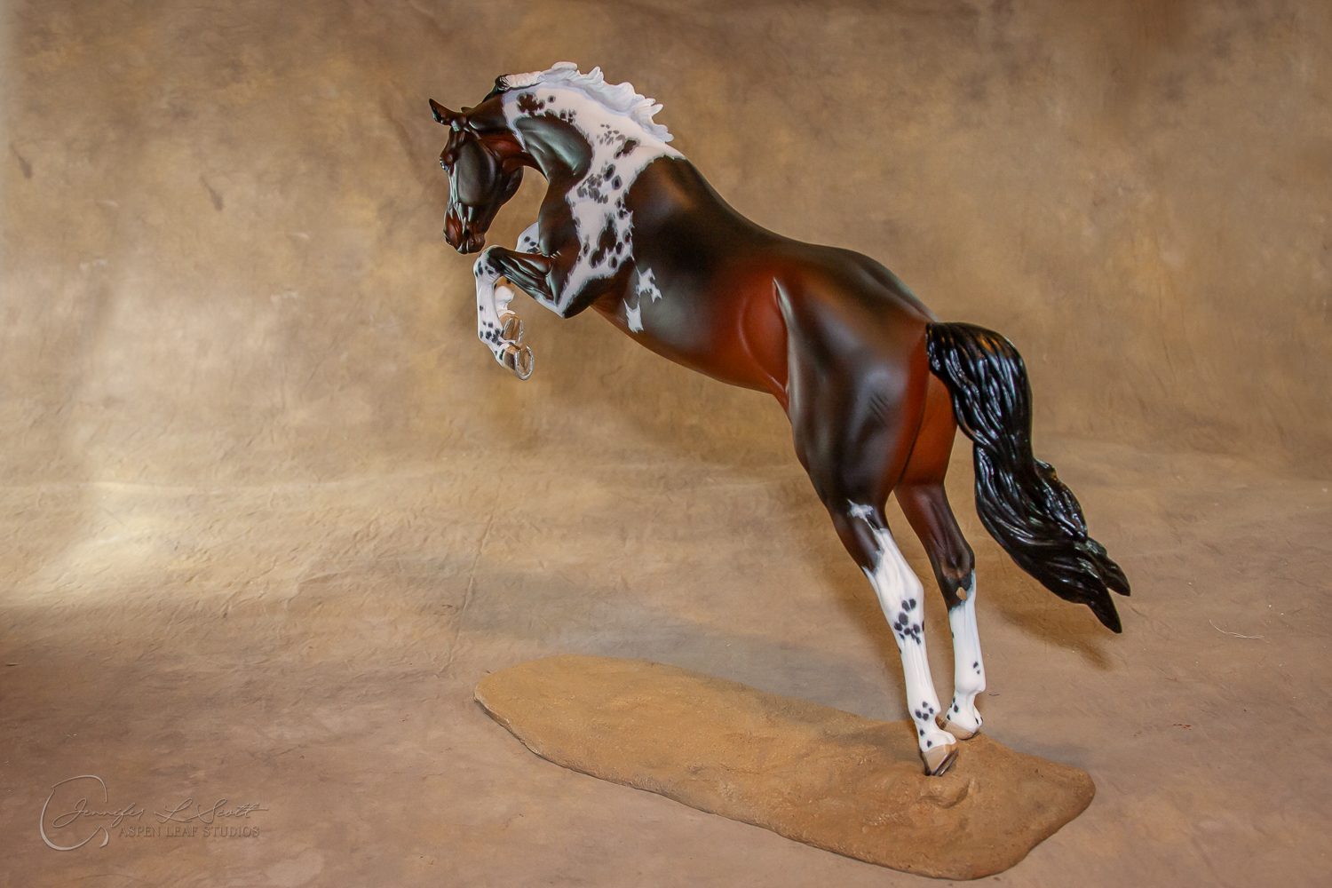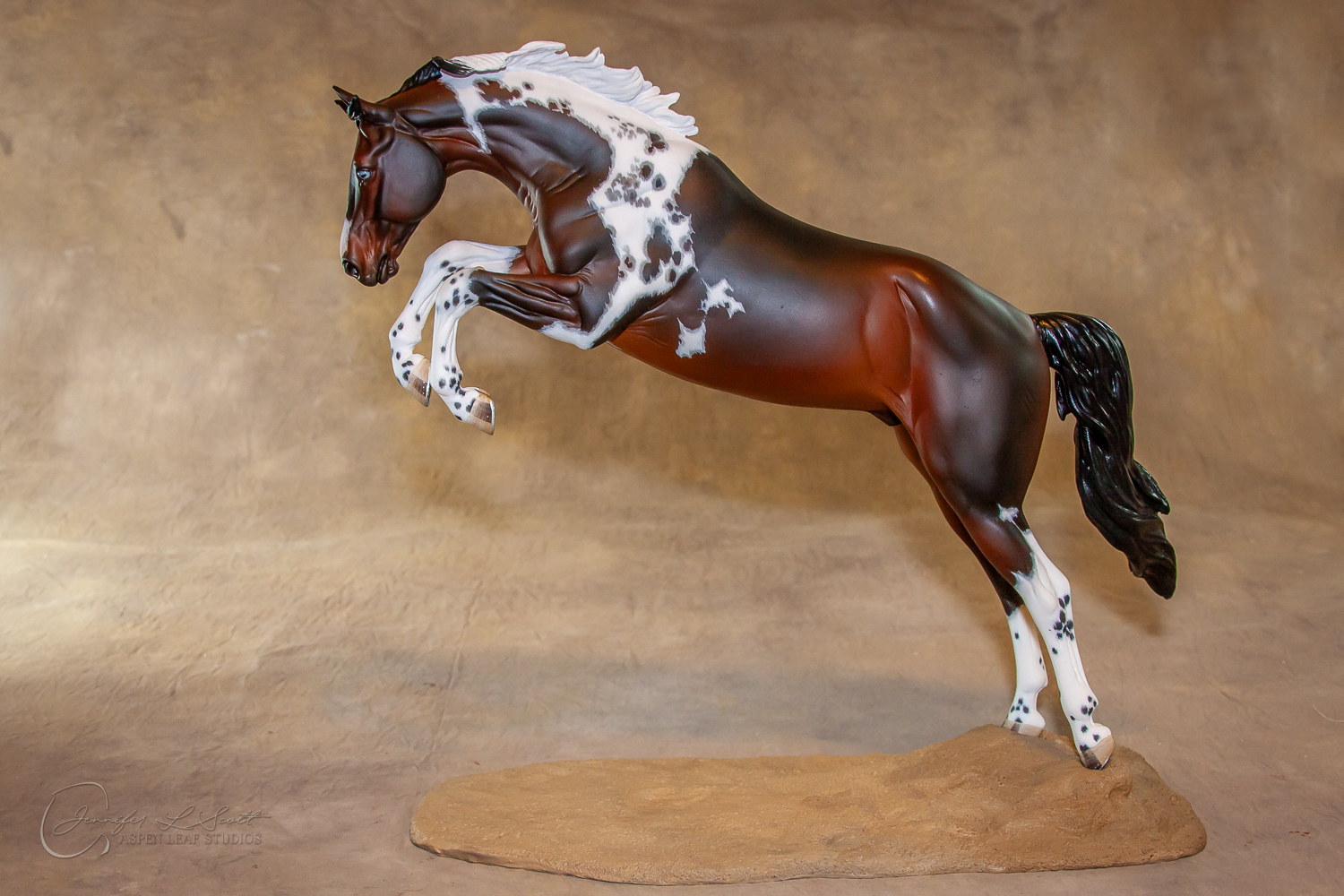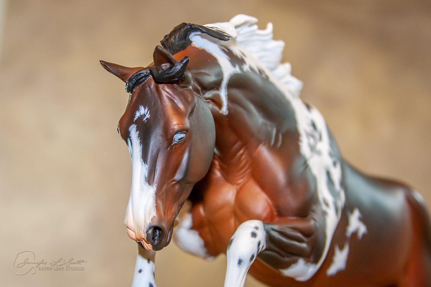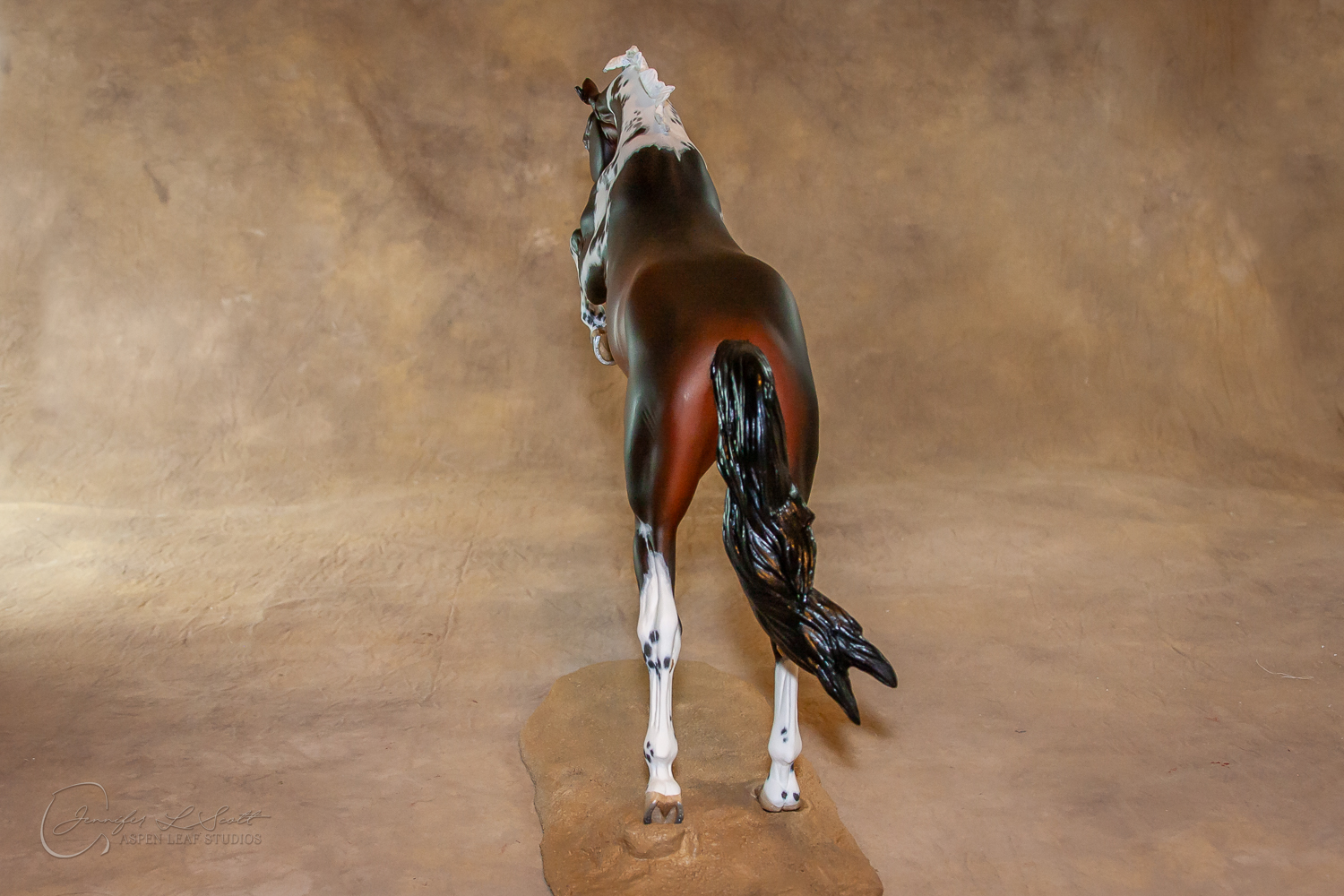 Traditional Scale "Justin Tyme" resin by Sommer Prosser and Rebecca Turner painted bay homozygous tobiano in 2014.