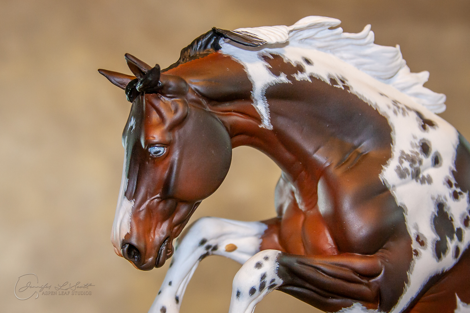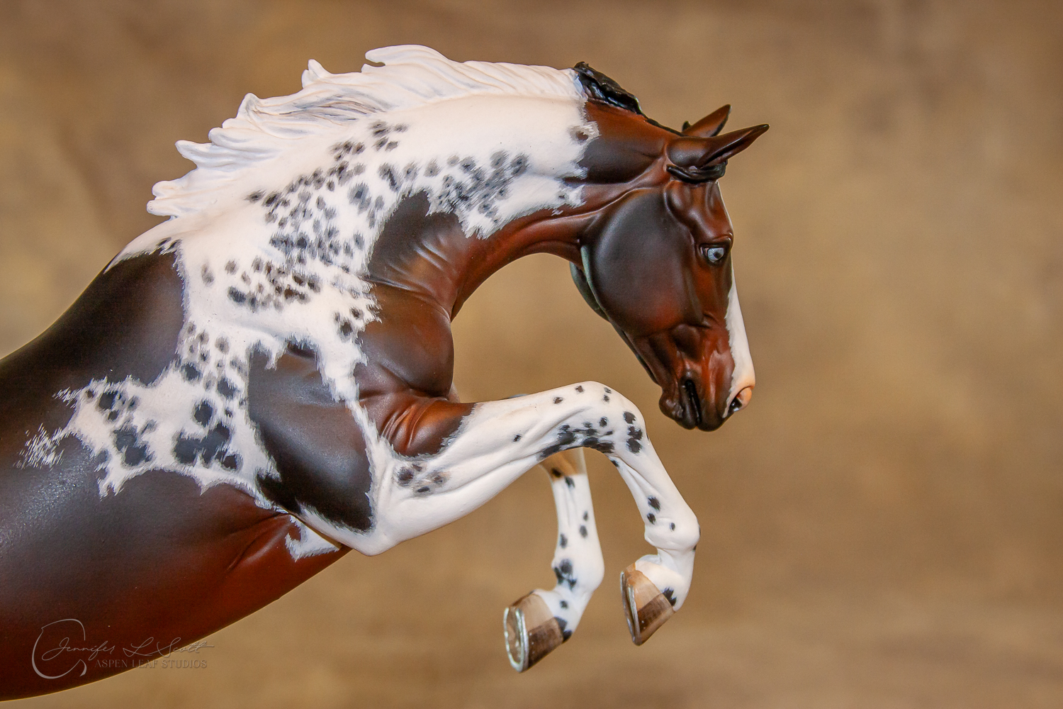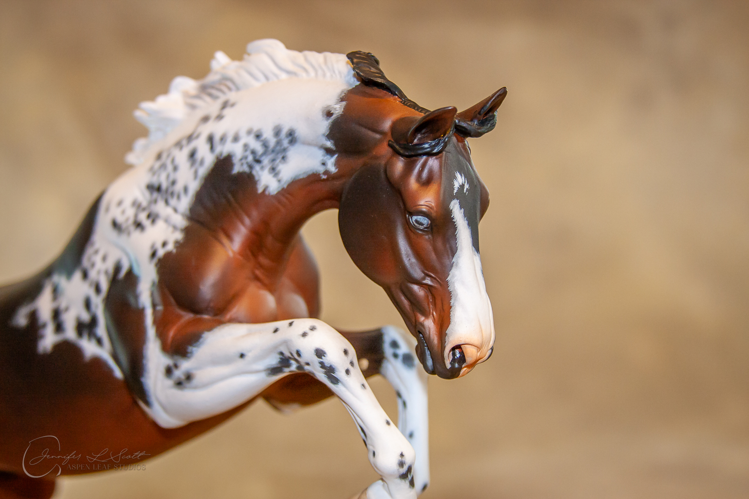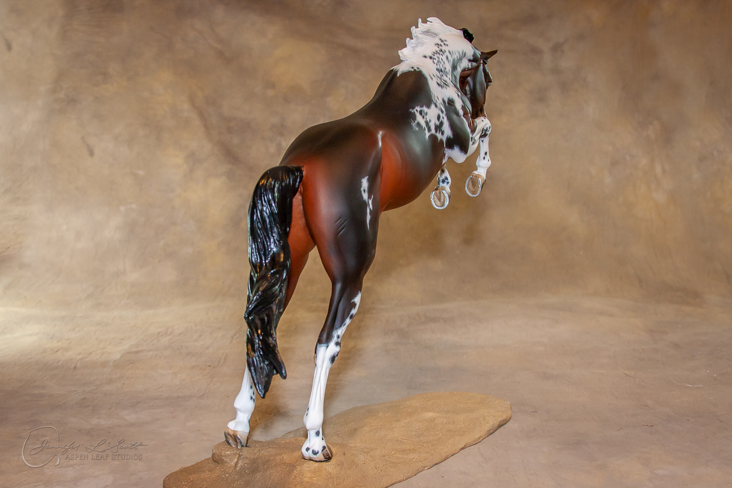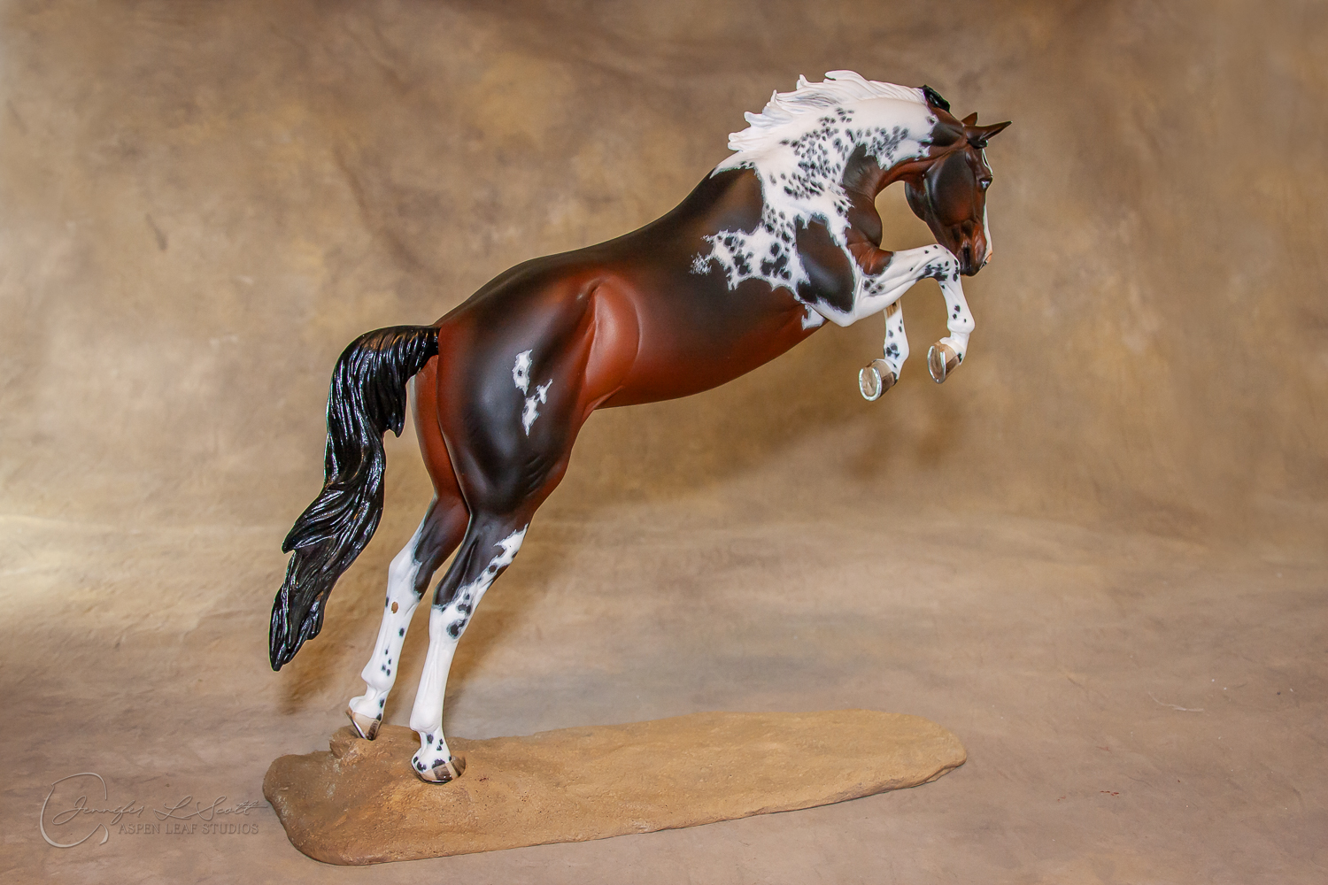 Traditional Scale "Justin Tyme" resin by Sommer Prosser and Rebecca Turner painted bay homozygous tobiano in 2014.