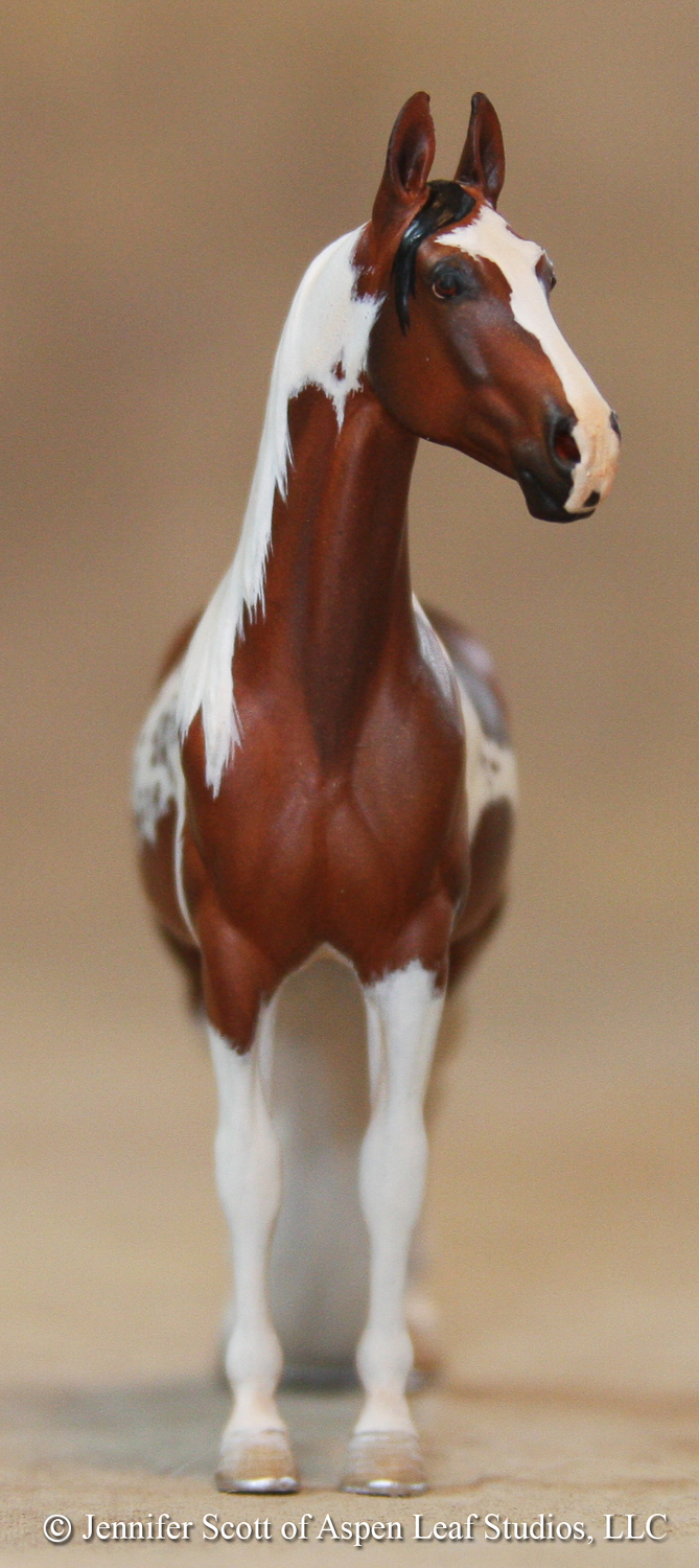 Stablemate Scale "Mindy" resin by Sarah Rose painted bay tobiano in 2010.