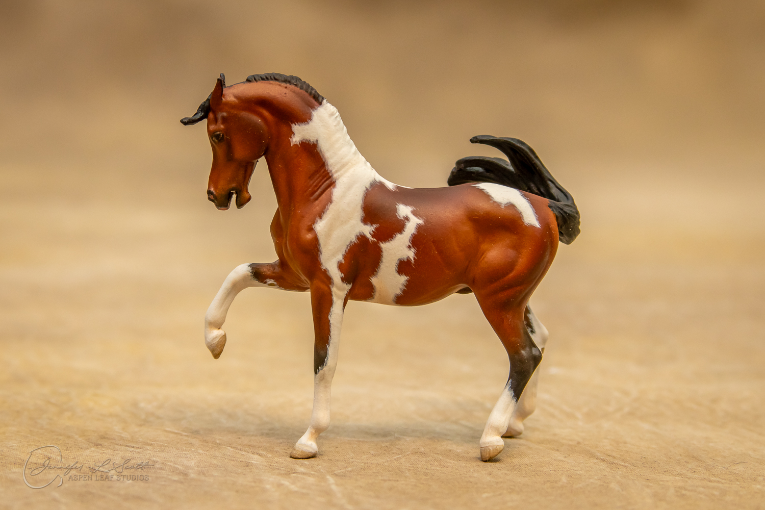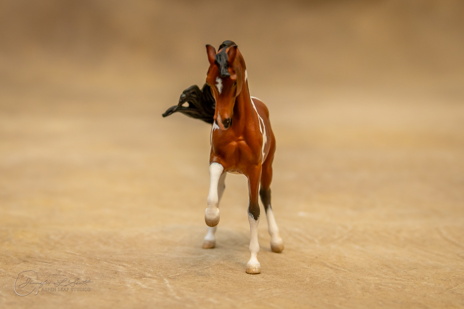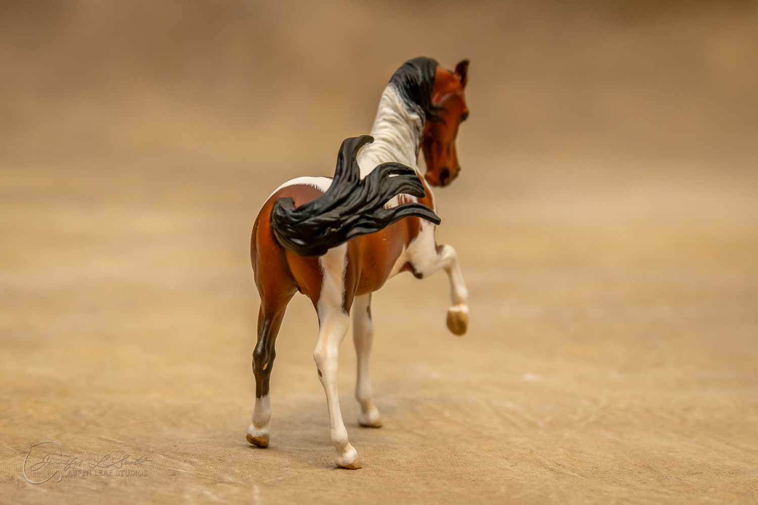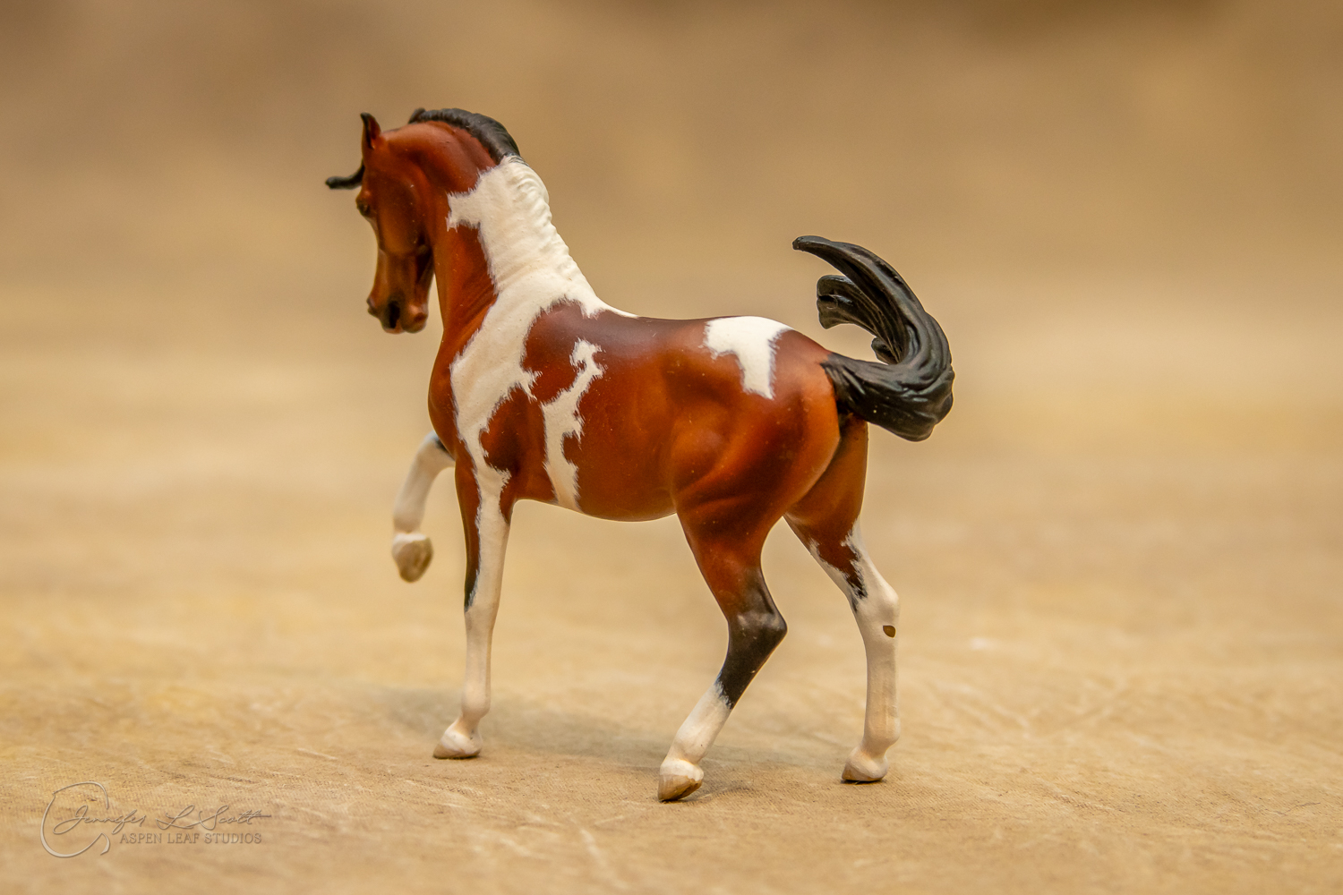 Stablemate Scale "Ophir" resin by Deborah McDermott painted bay tobiano in 2017.