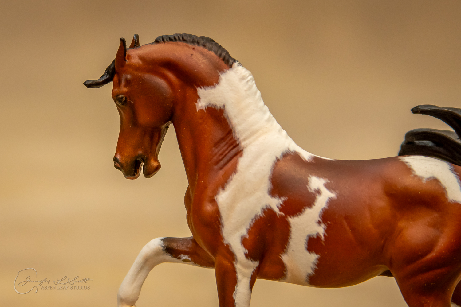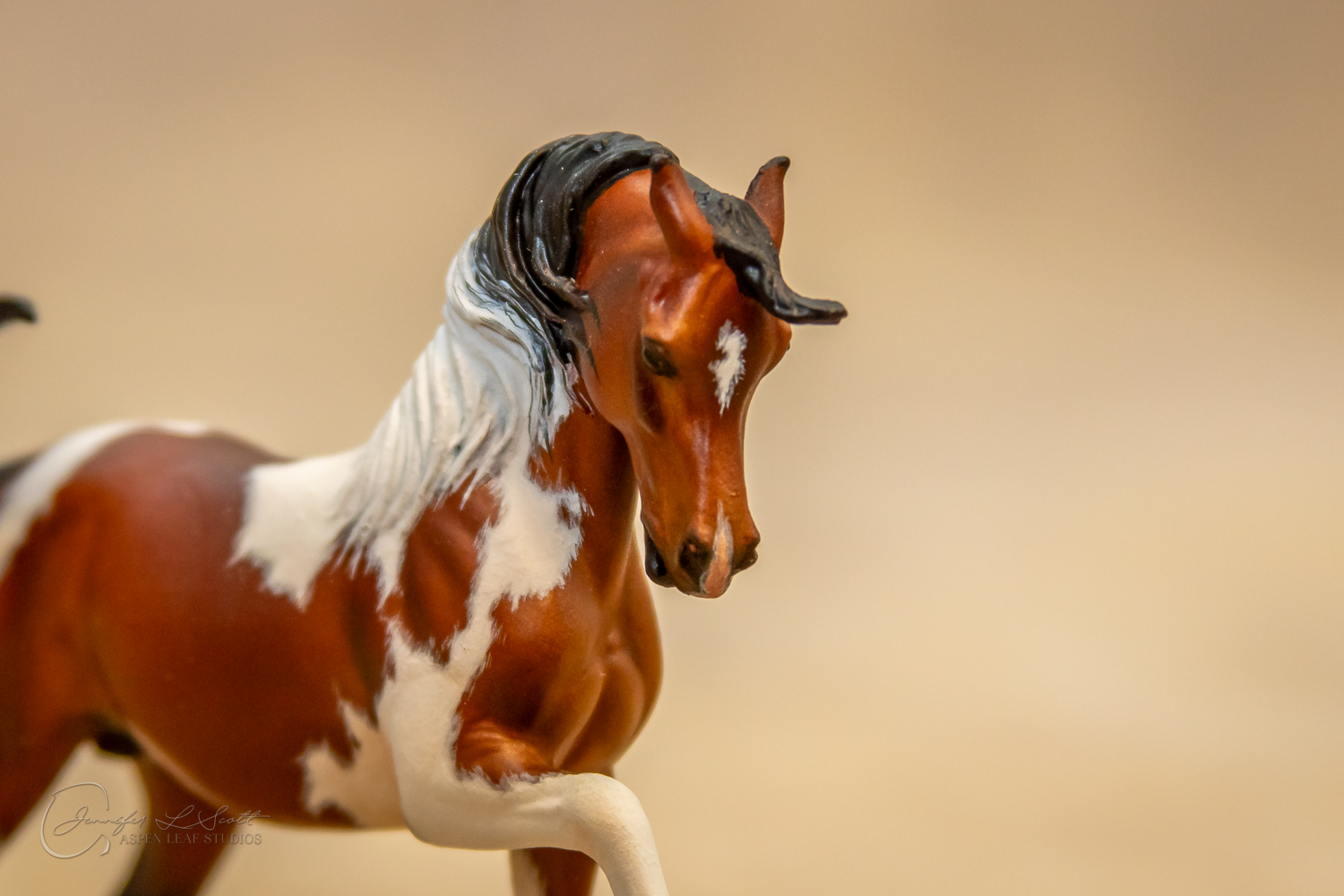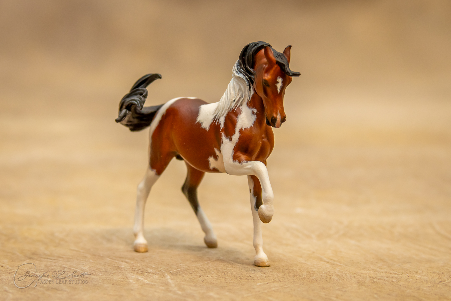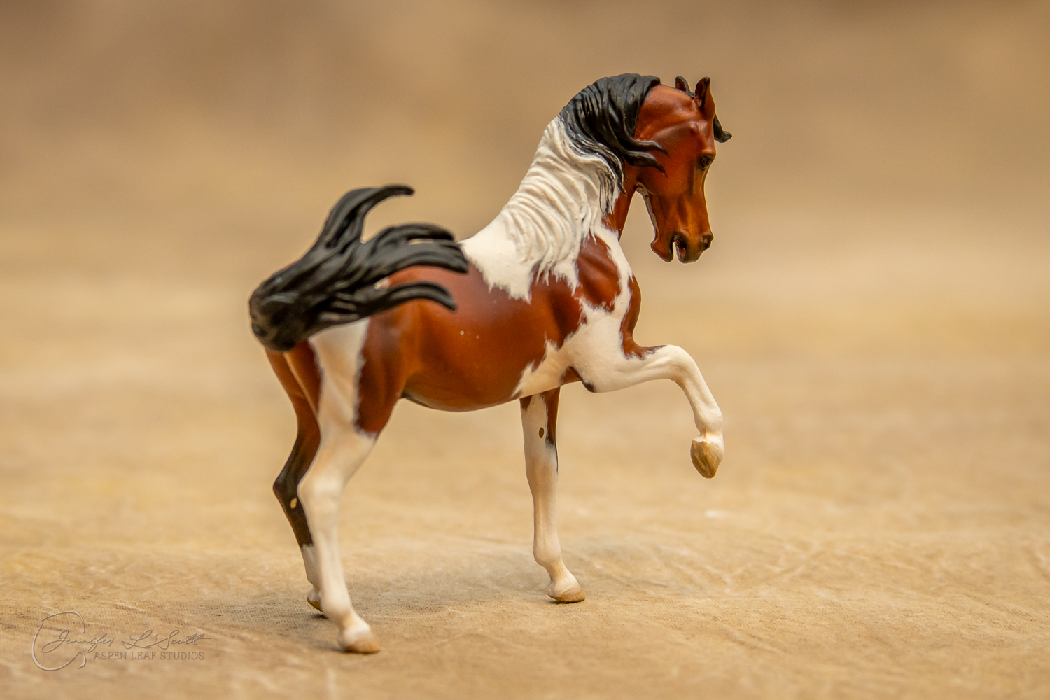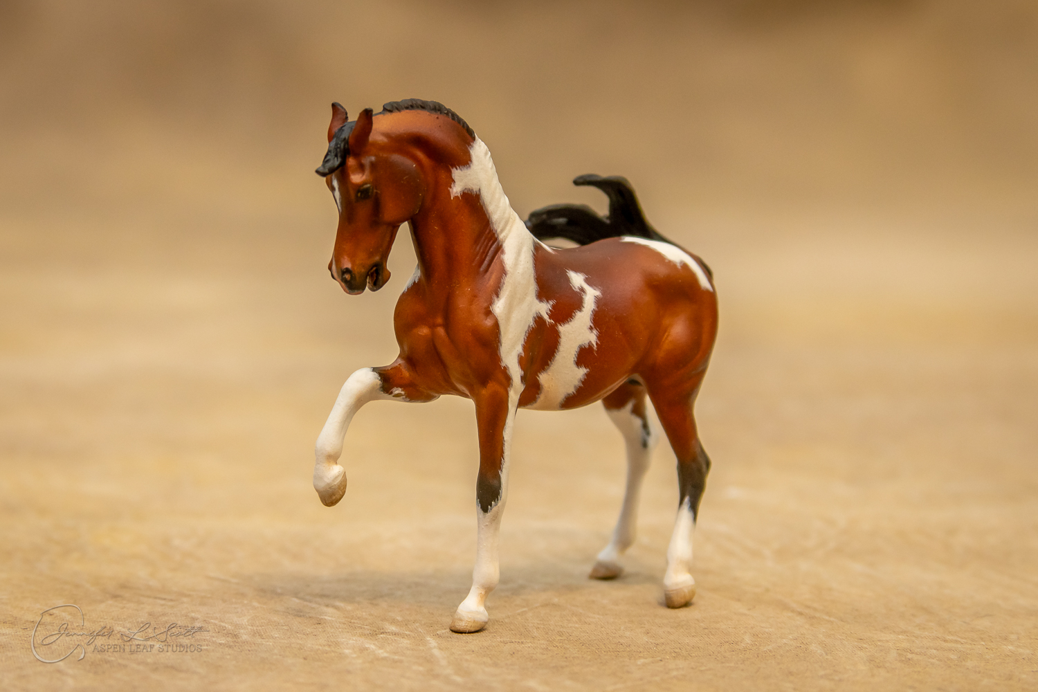 Stablemate Scale "Ophir" resin by Deborah McDermott painted bay tobiano in 2017.