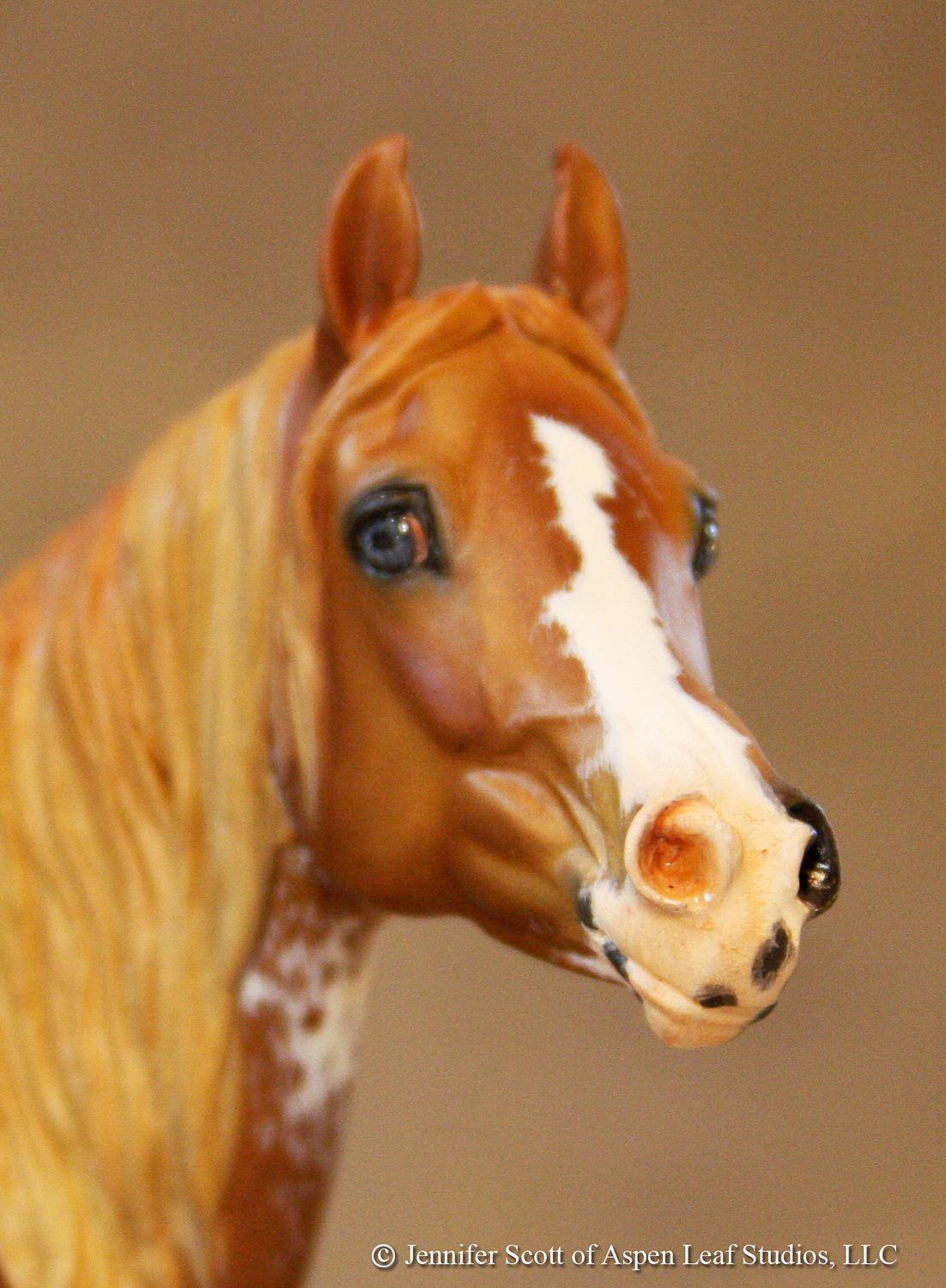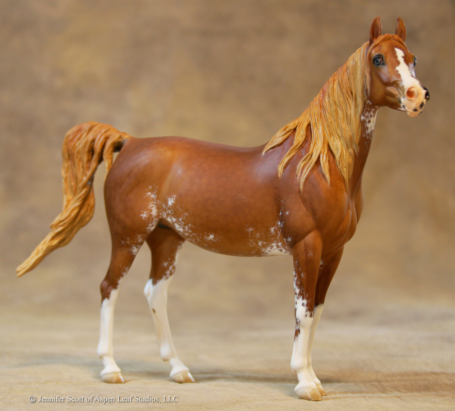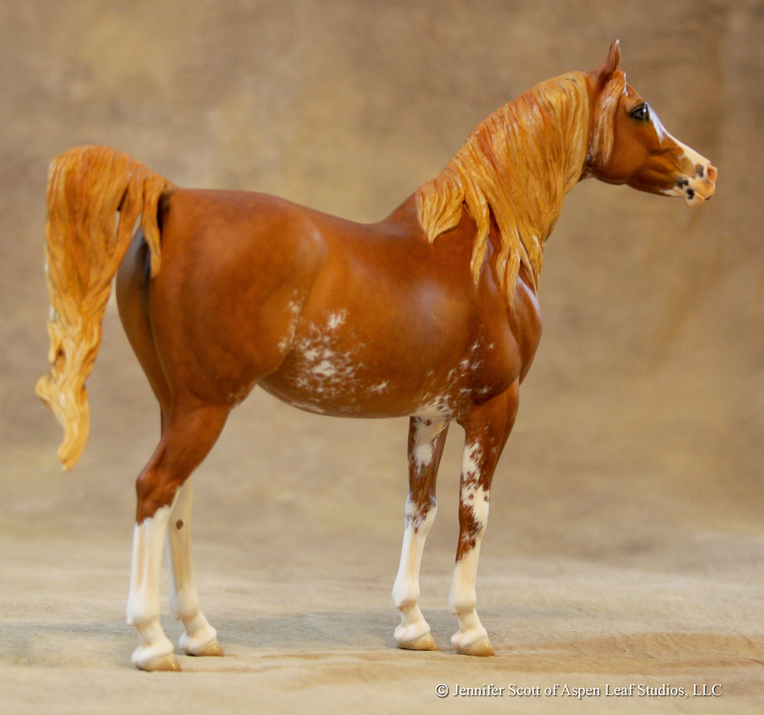 Small Traditional Scale "Piroschka" resin by Brigitte Eberl painted dappled chestnut sabino in 2010.