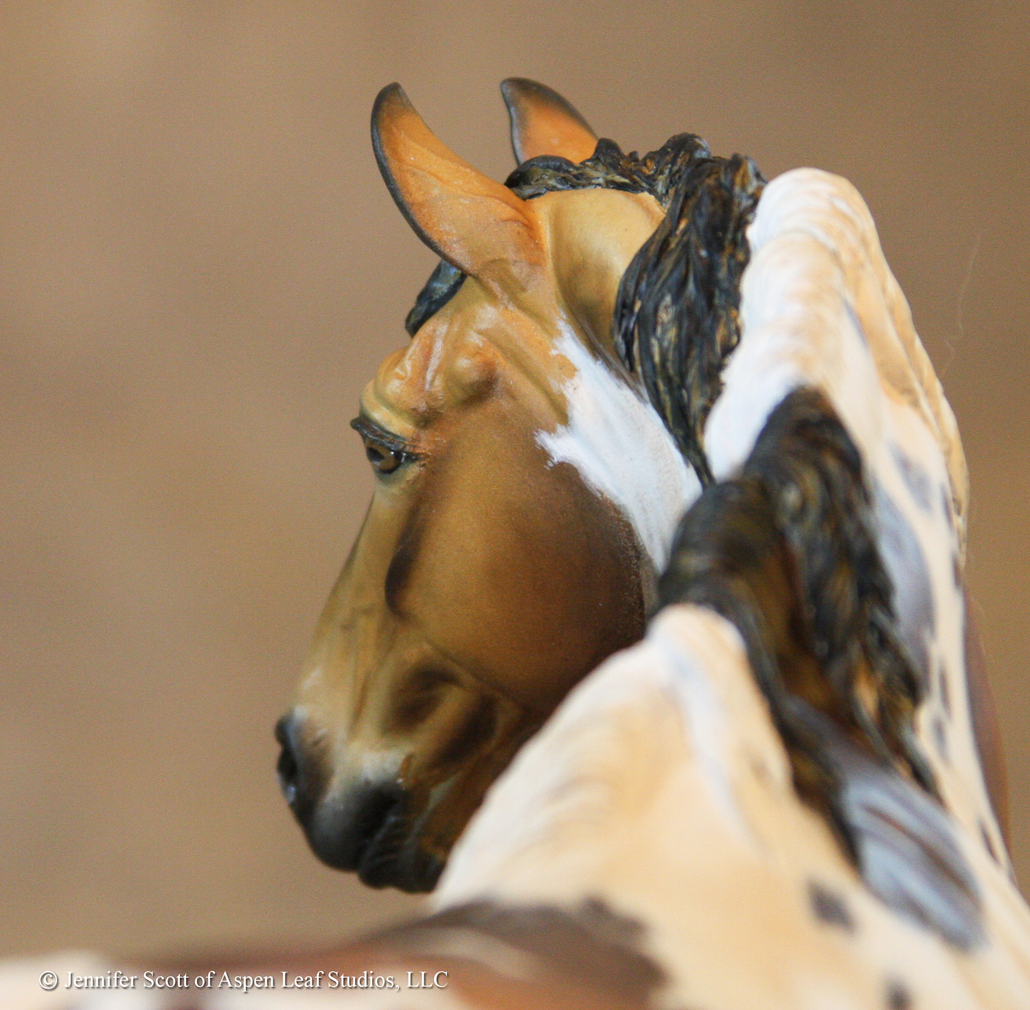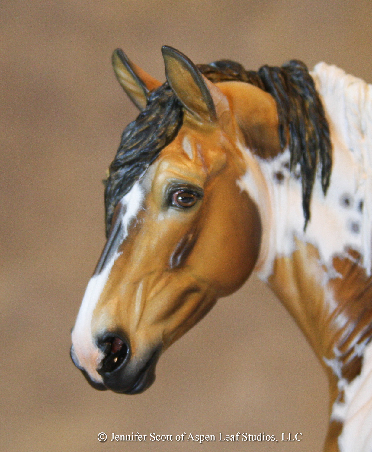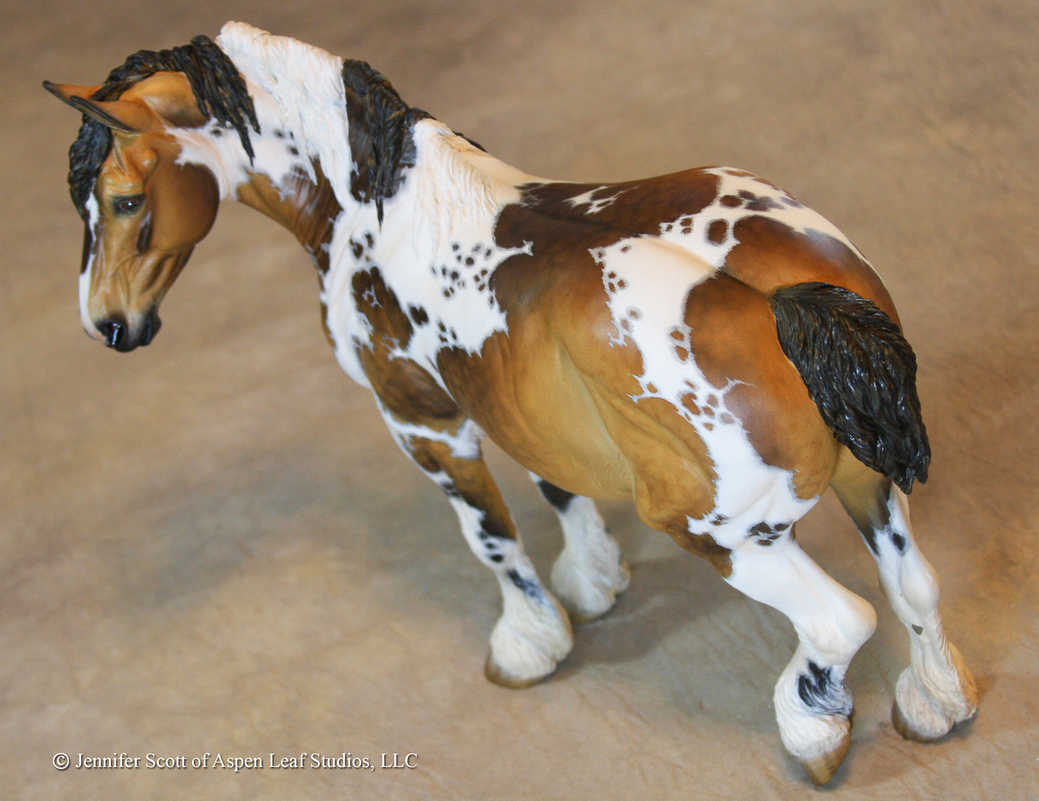 Traditional Scale "Scarlett" resin by Stacey Tumlinson painted dappled sooty buckskin homozygous tobiano in 2010.