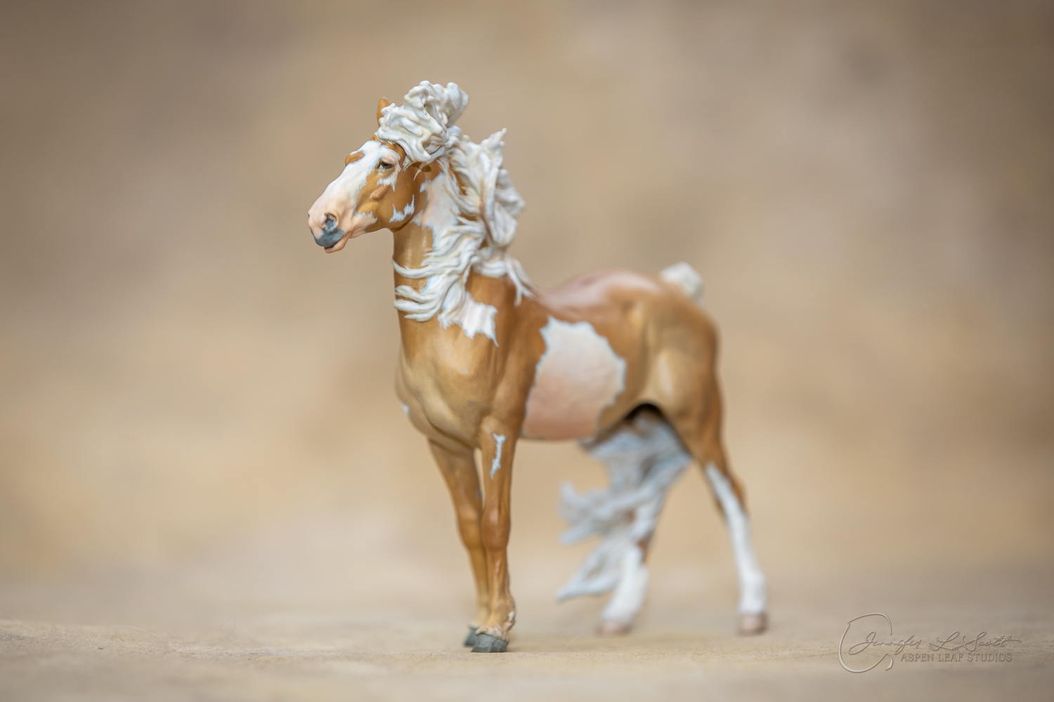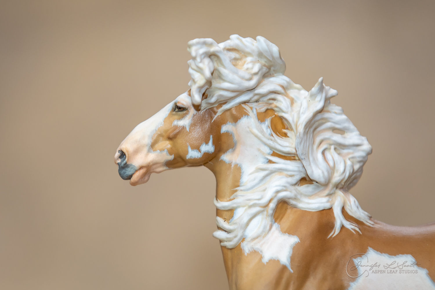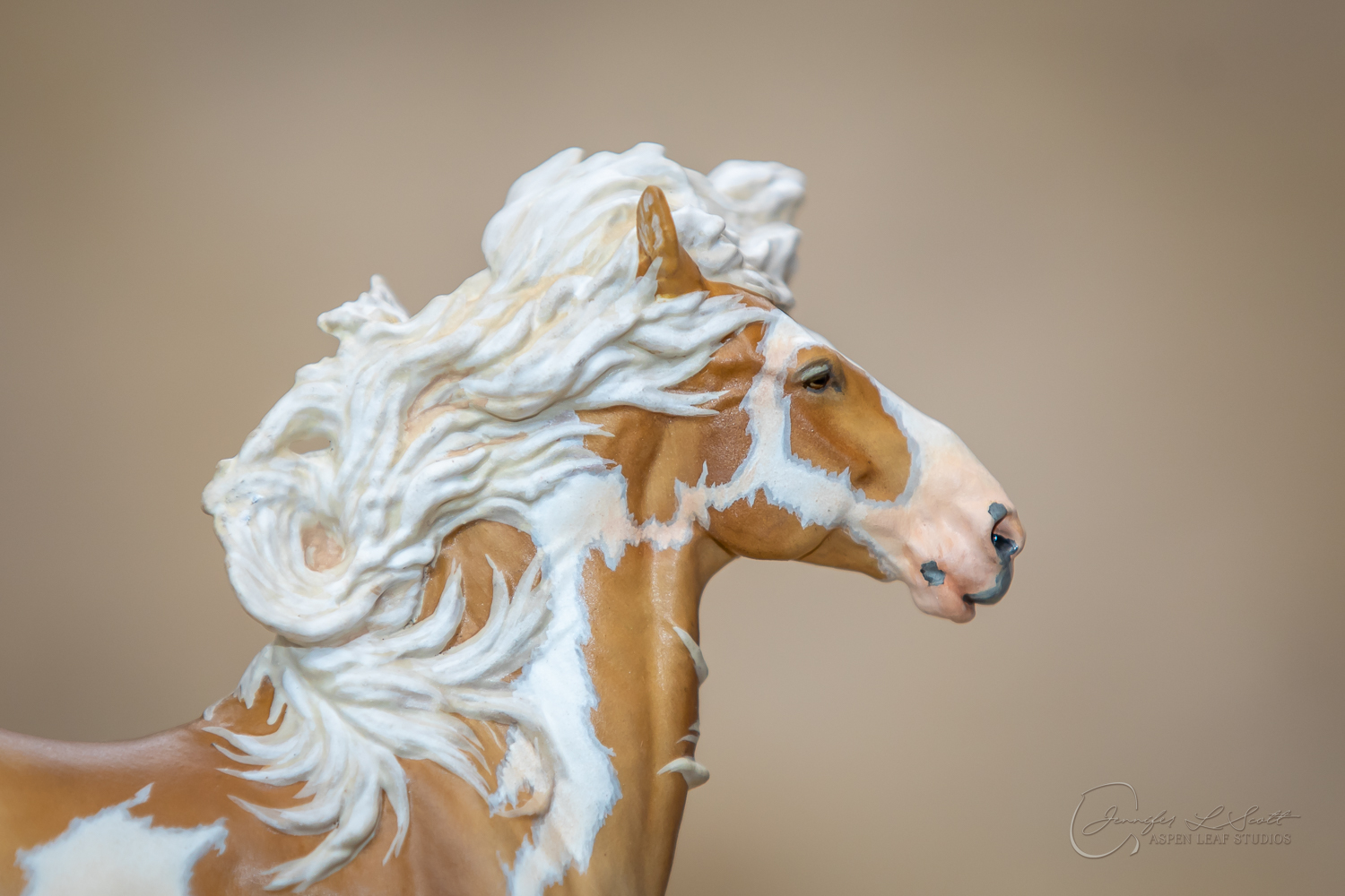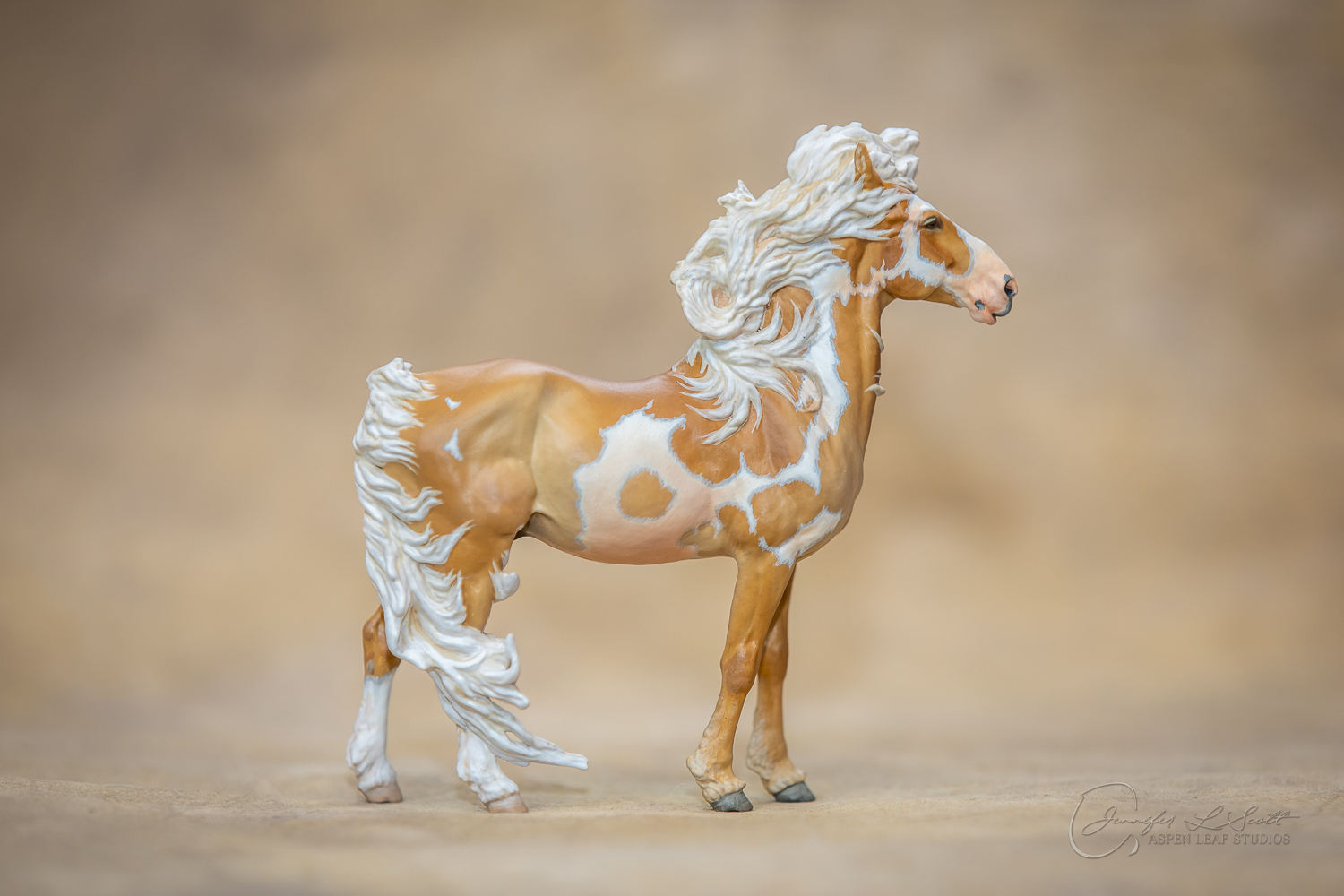 Venti Scale "Whirlwind" resin by Sarah Minkiewicz-Breunig painted palomino overo referencing Sand Wash Basin mustang stallion Meteor in 2025.
